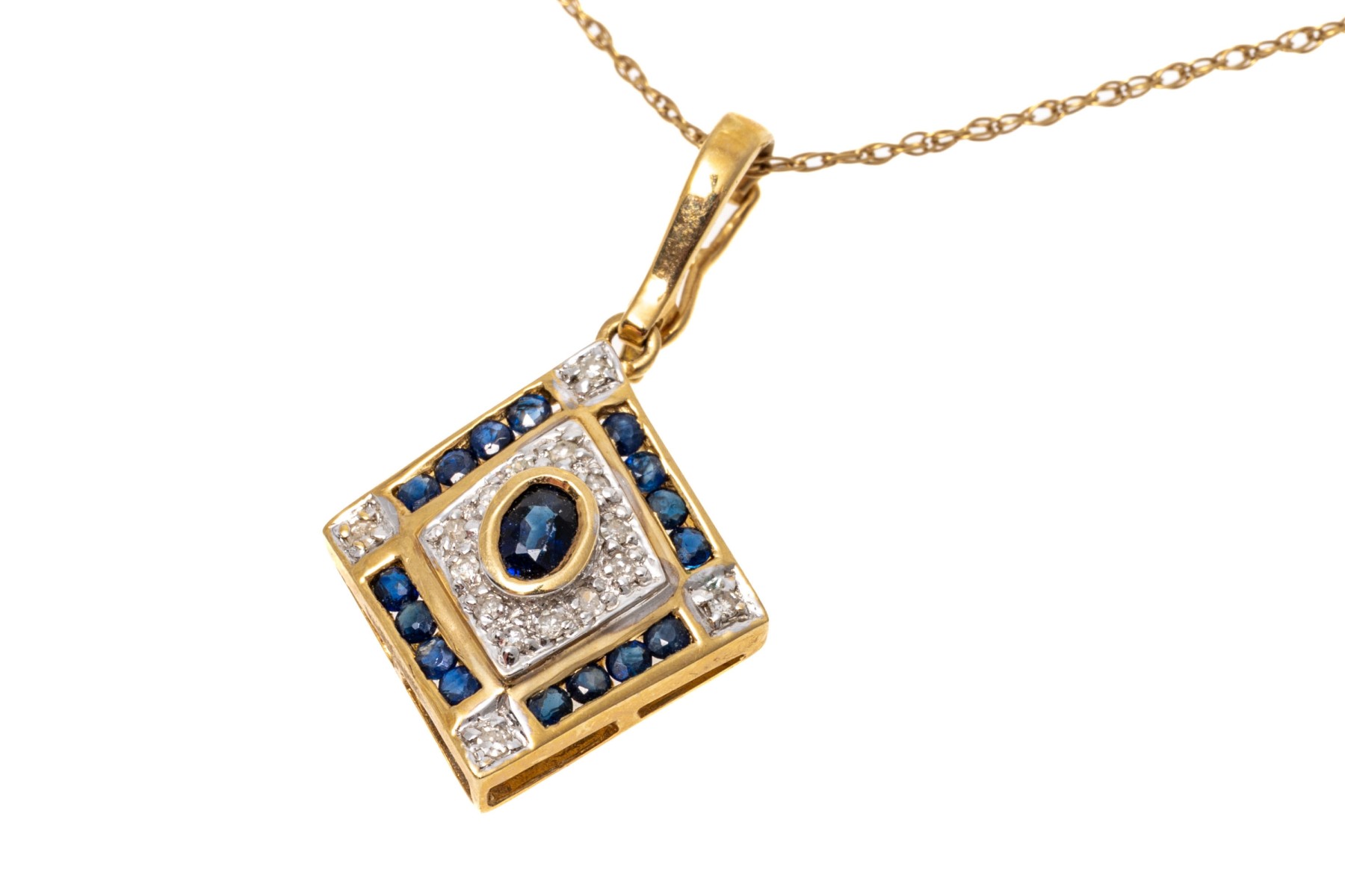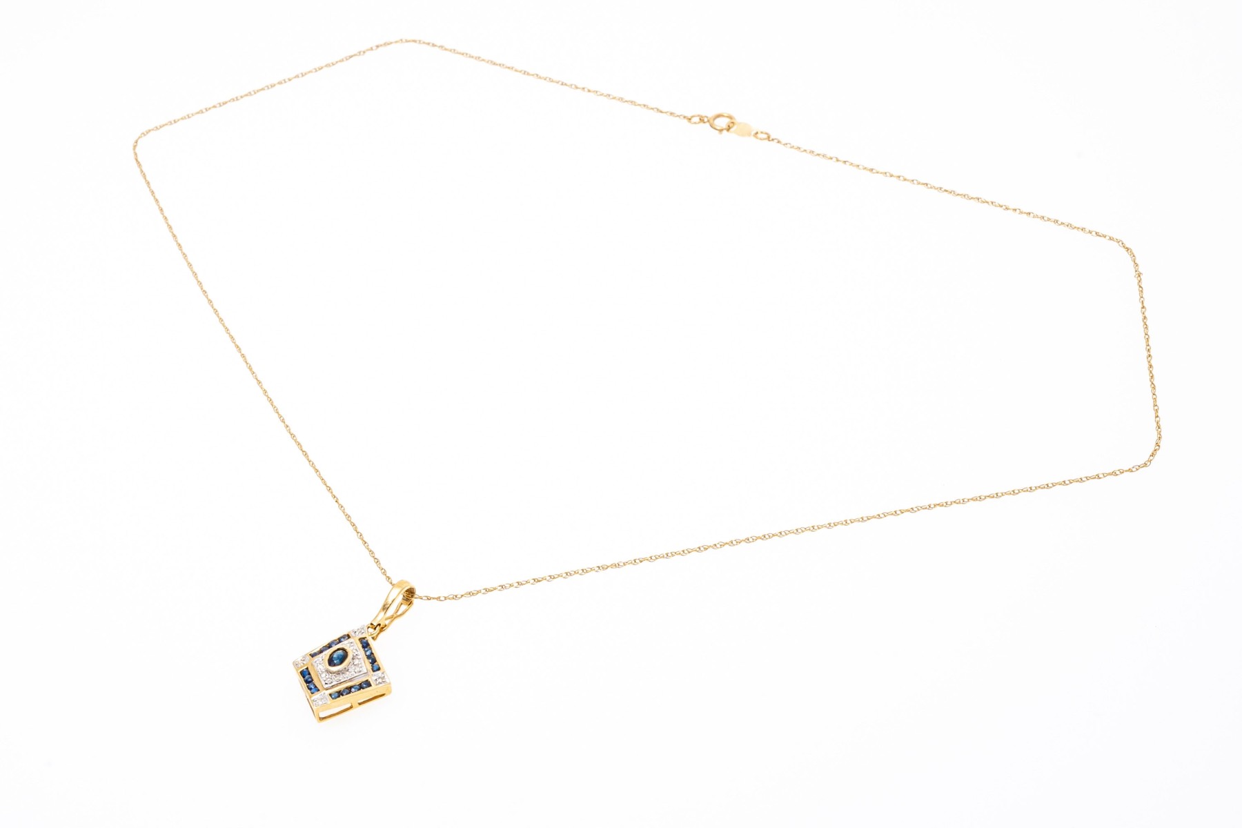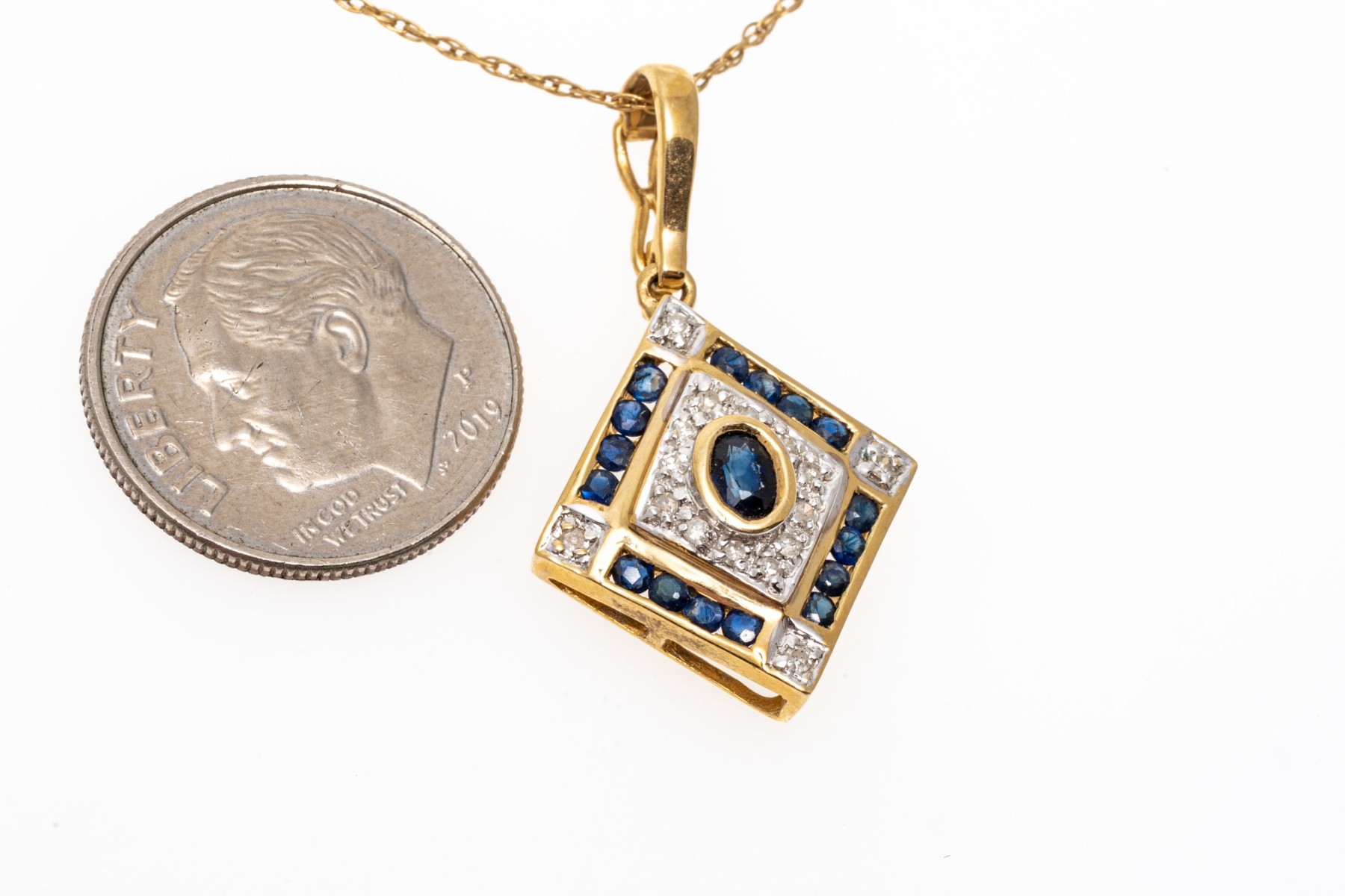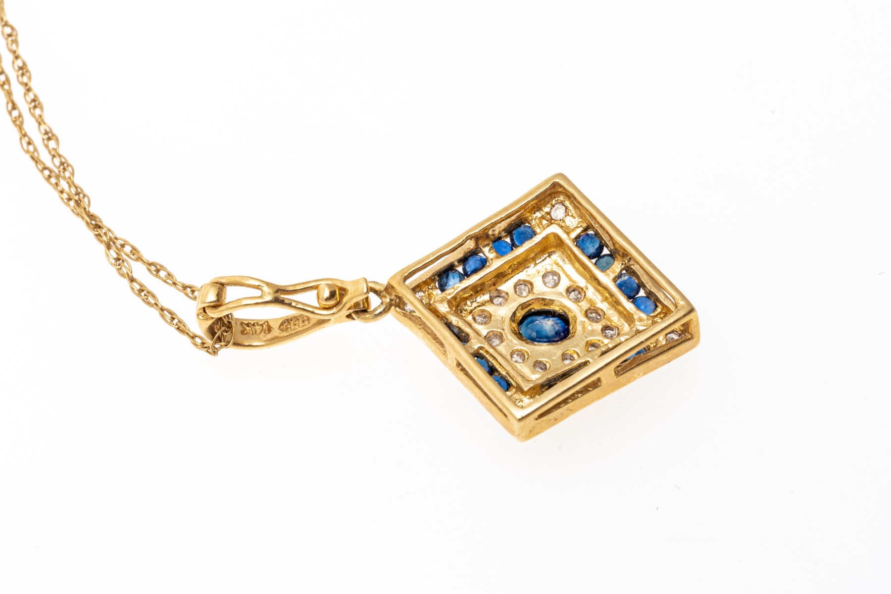 14k yellow gold retro sapphire and diamond set pendant, with chain, app. 0.10 TCW diamonds