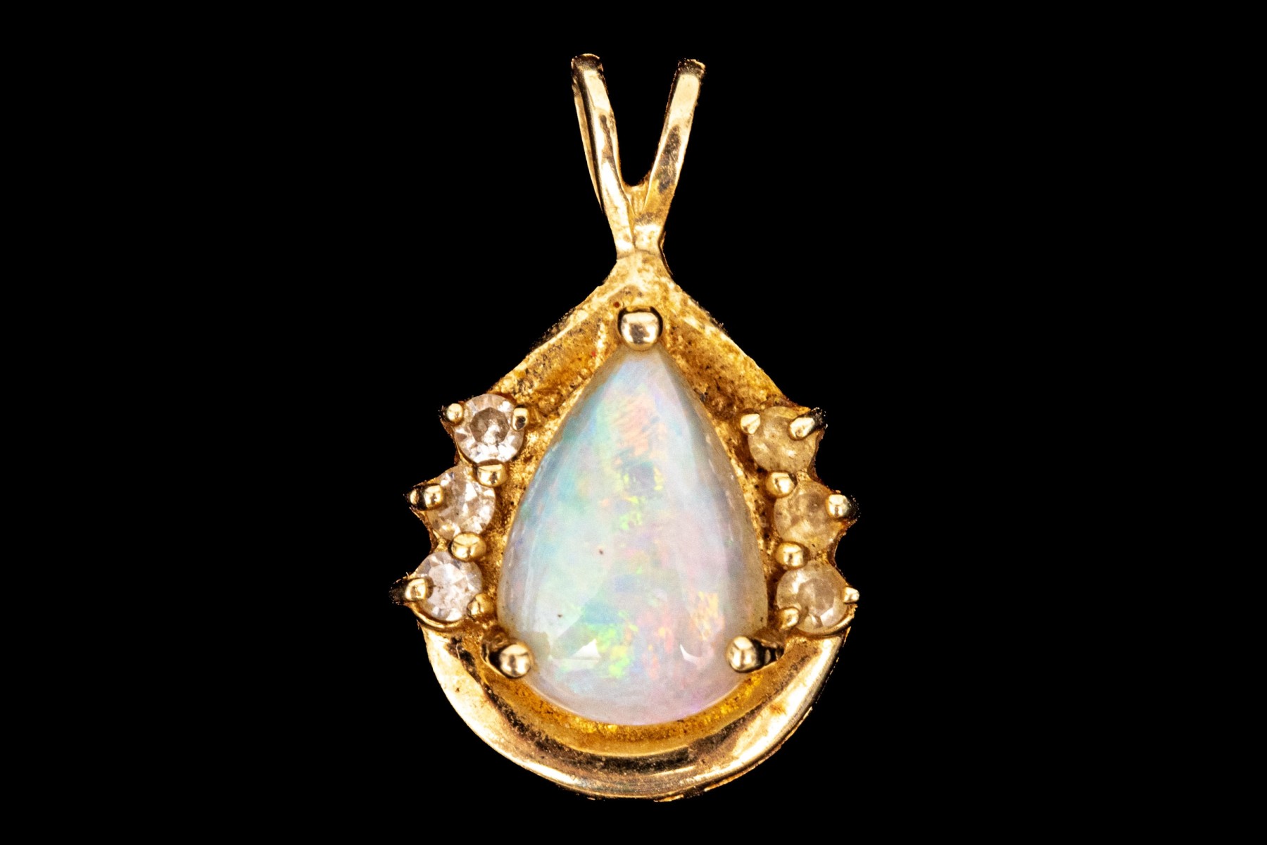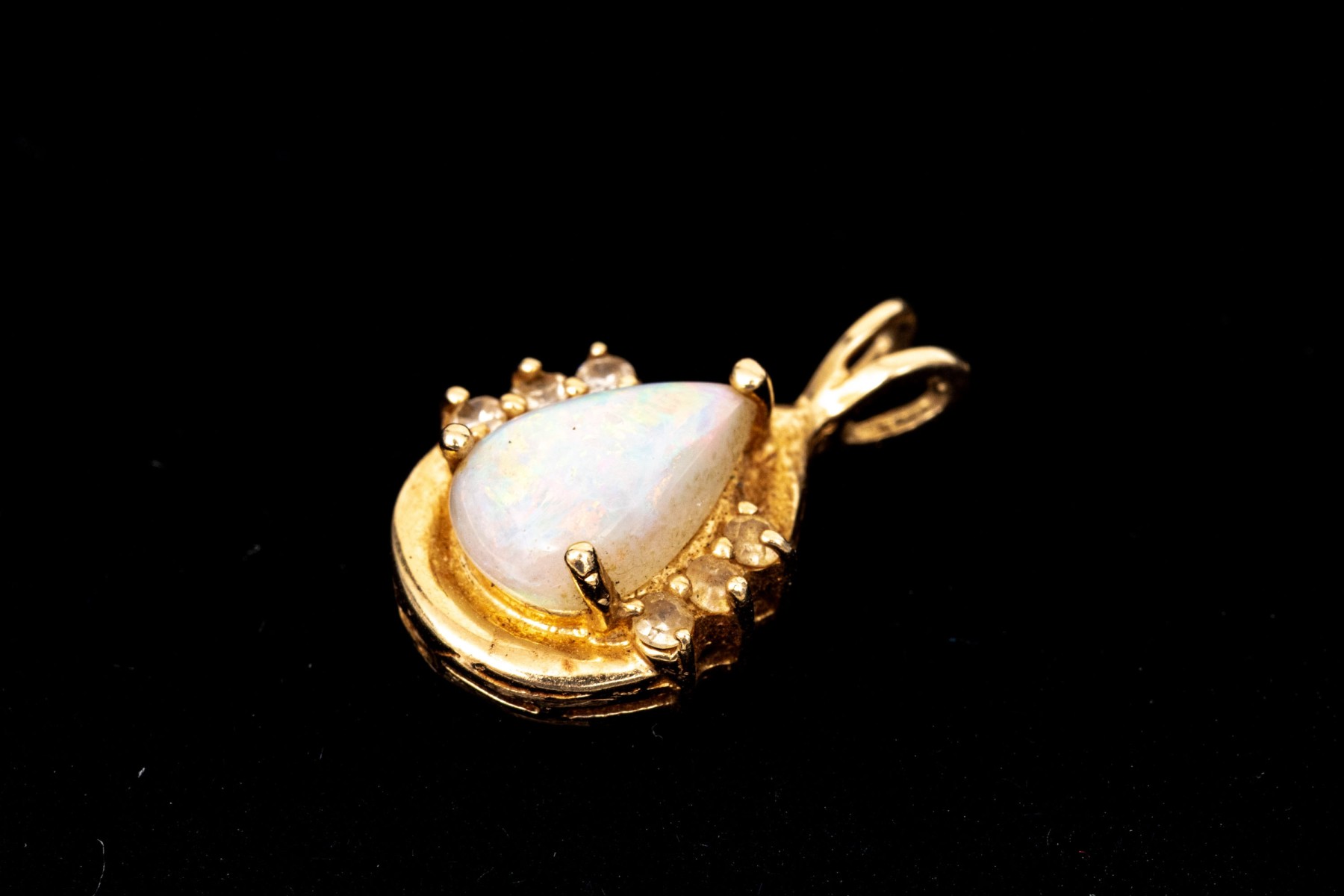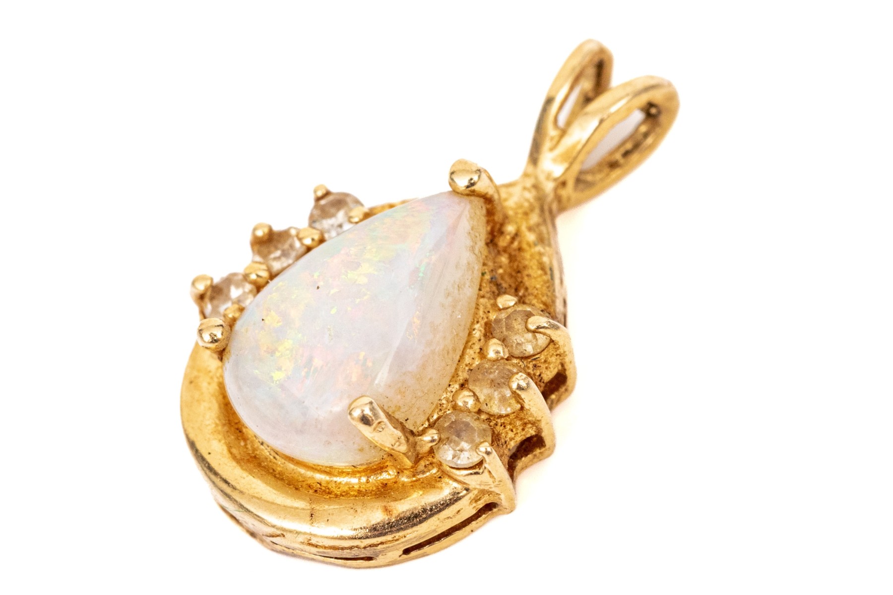 14k yellow gold retro style white sapphire and white opal set pendant