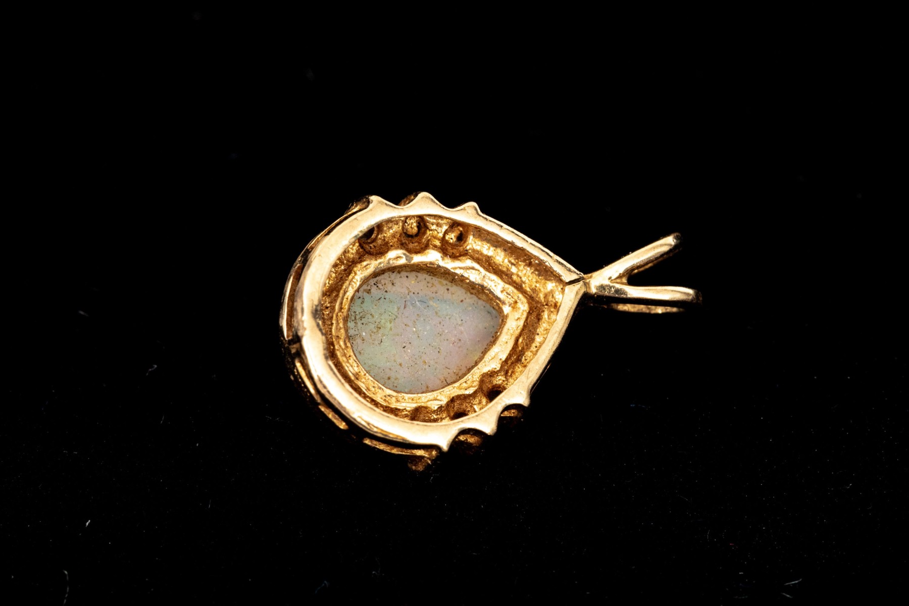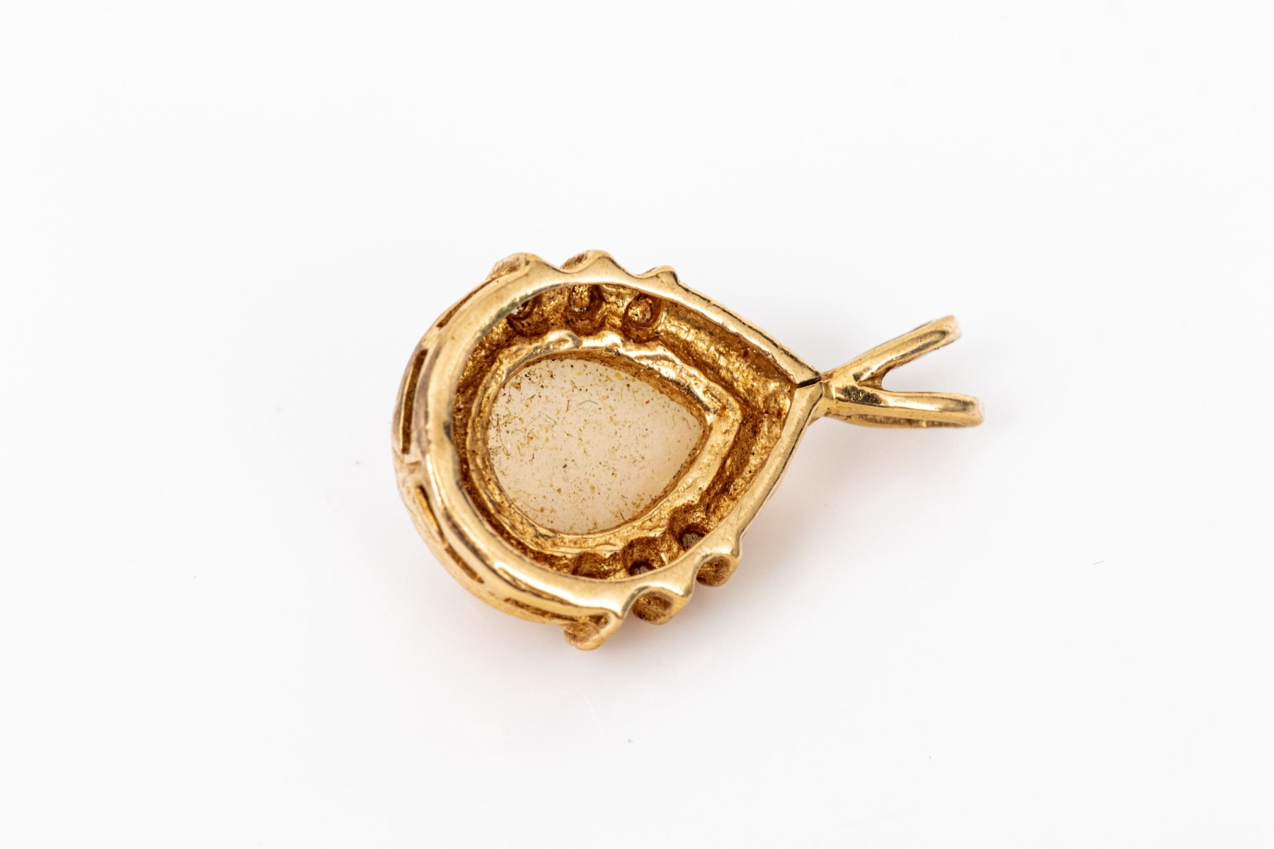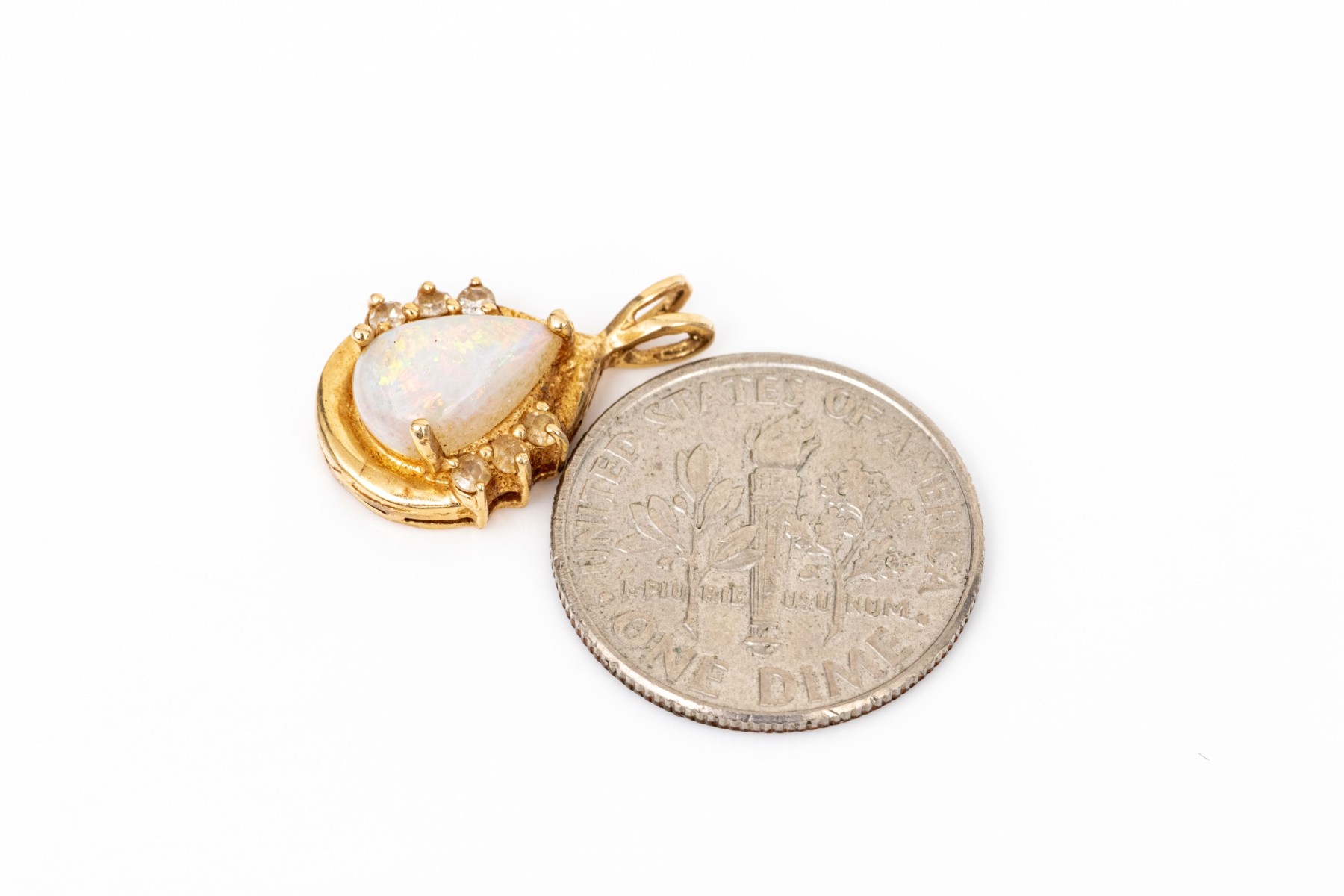 14k yellow gold retro style white sapphire and white opal set pendant