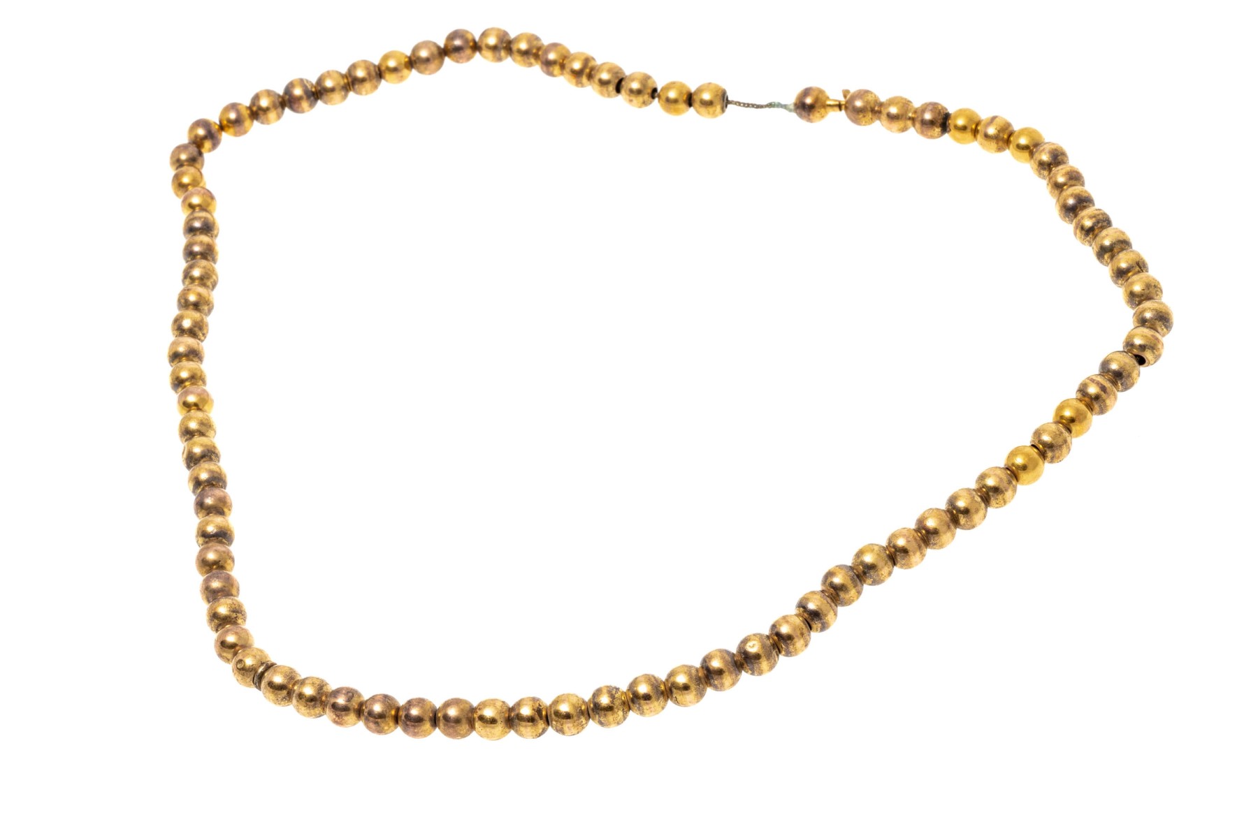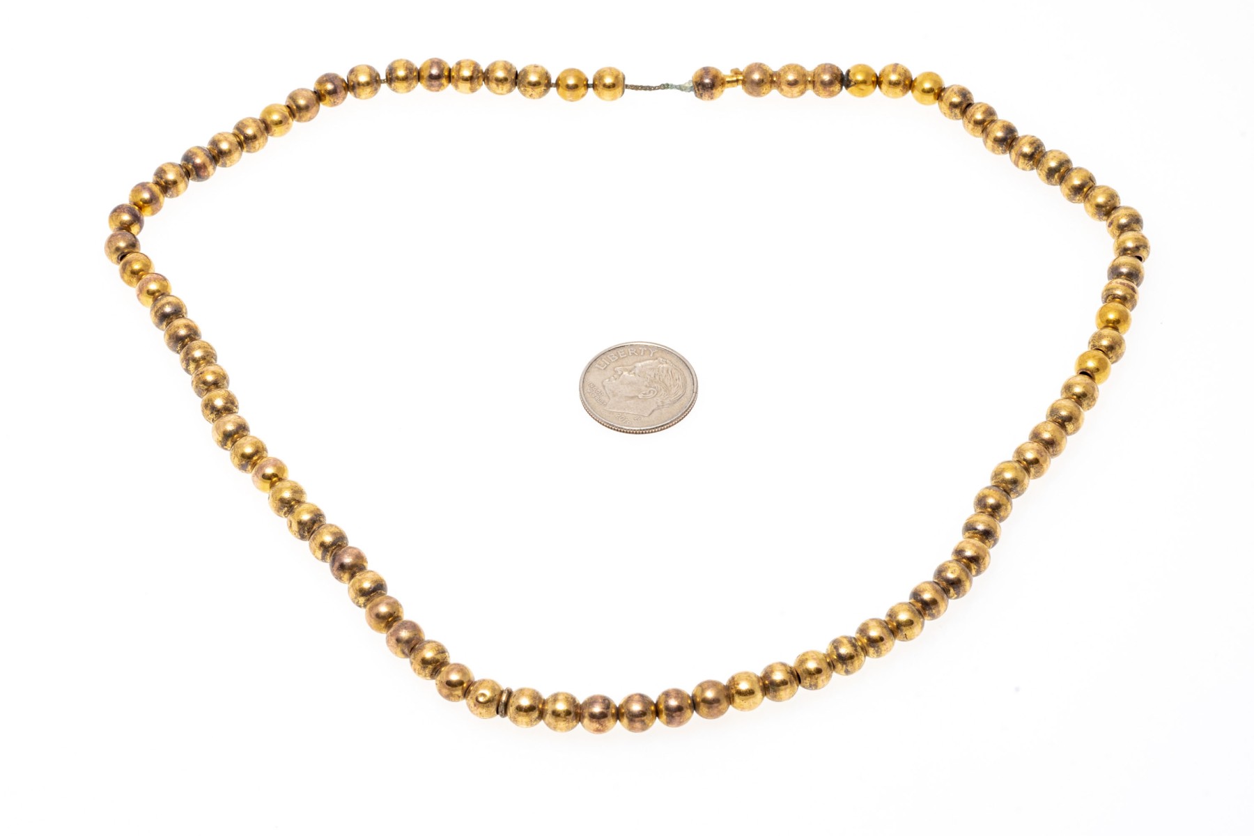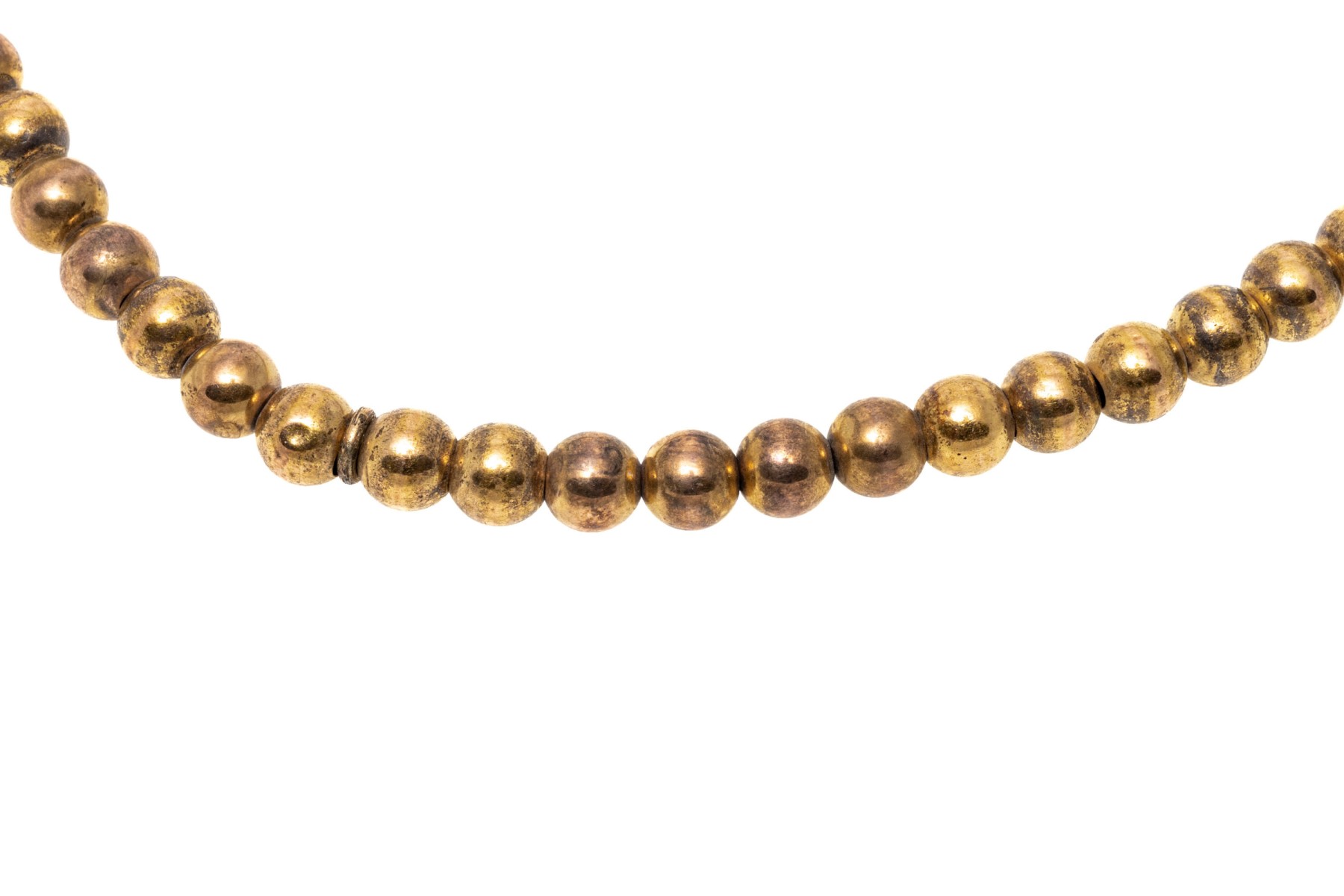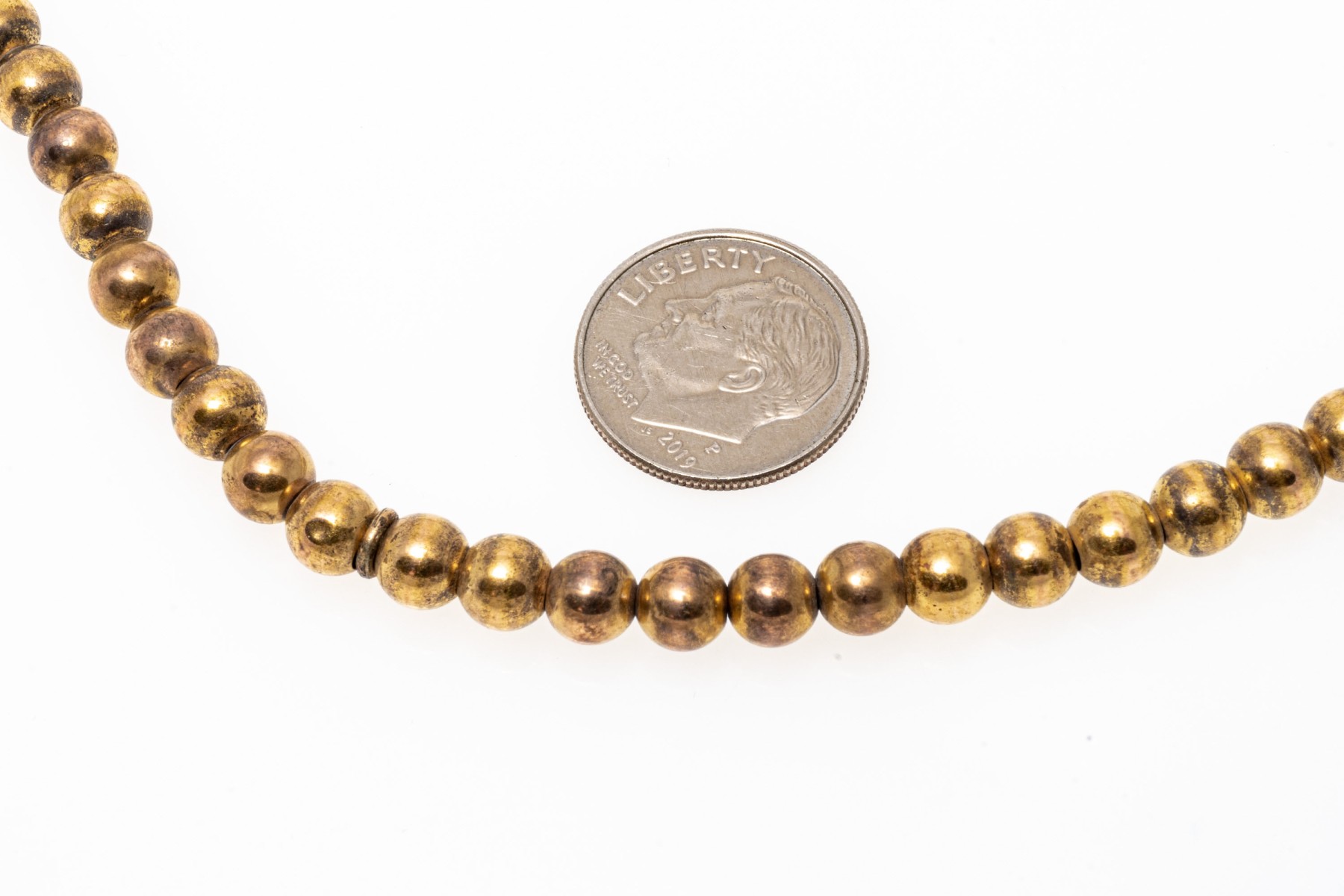 14k yellow gold simple 5.75 mm bead necklace, finished with a plunger style clasp