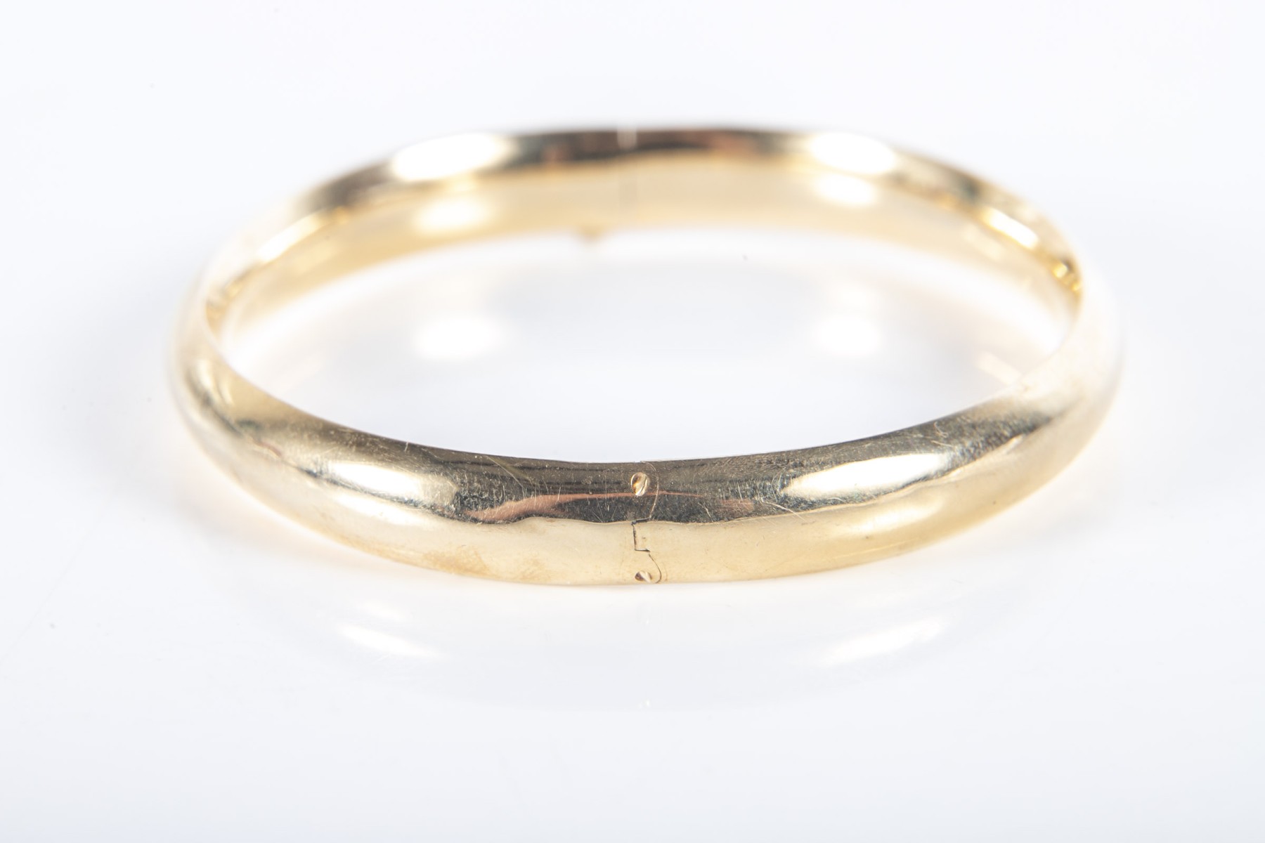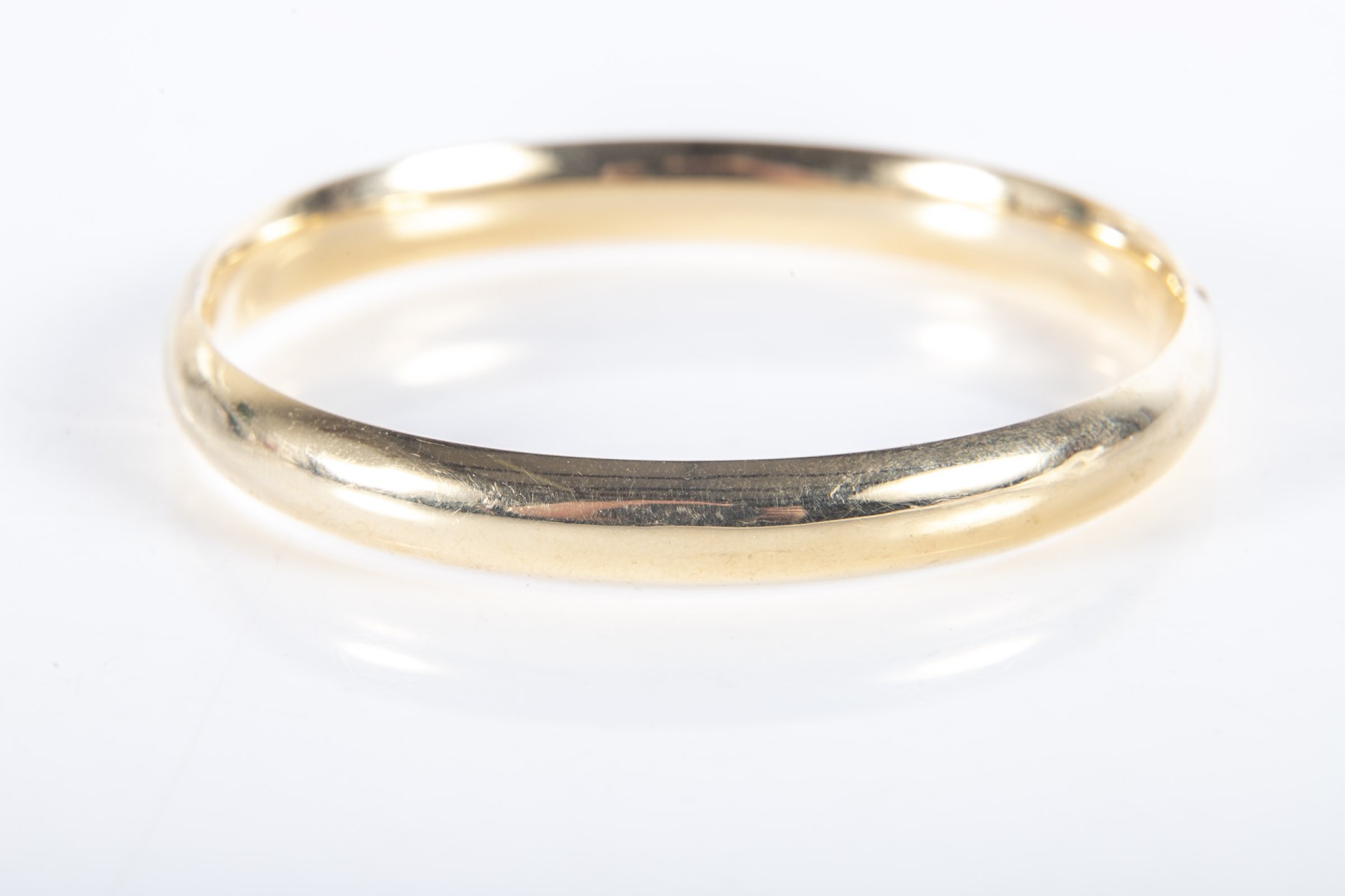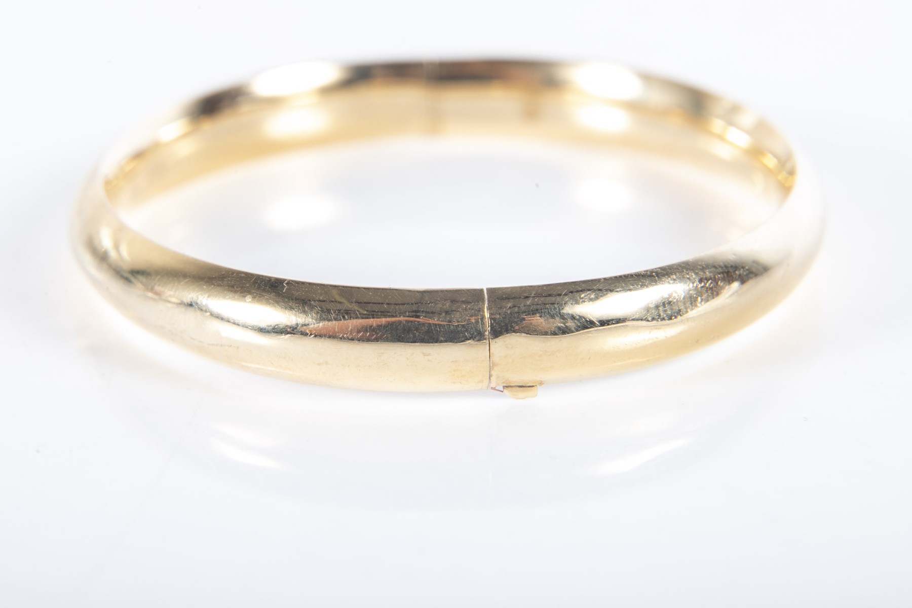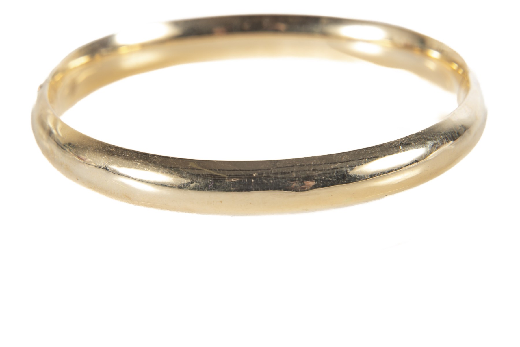A simple, classic yellow gold cuff bracelet with a hollow, gently domed form.