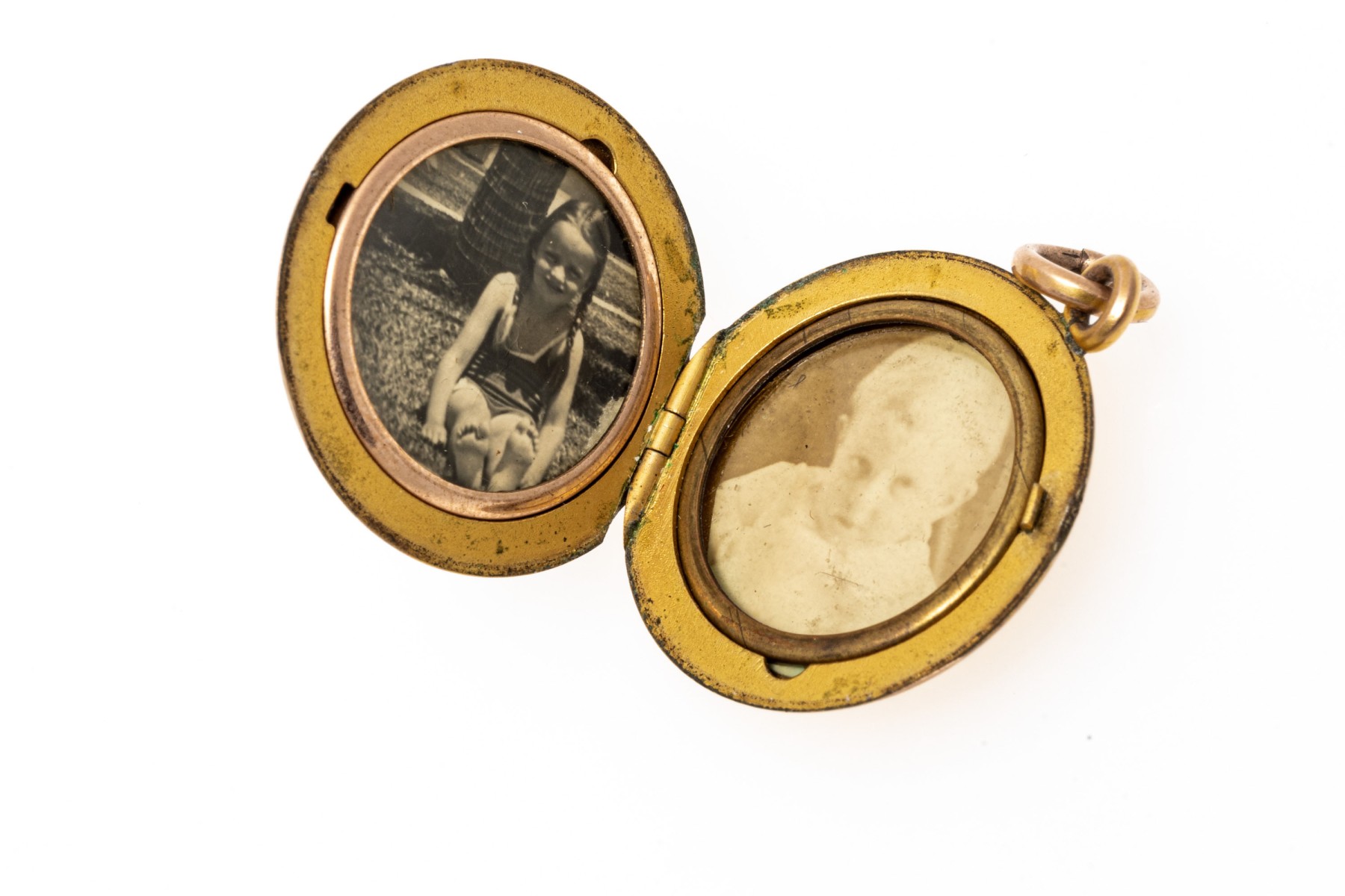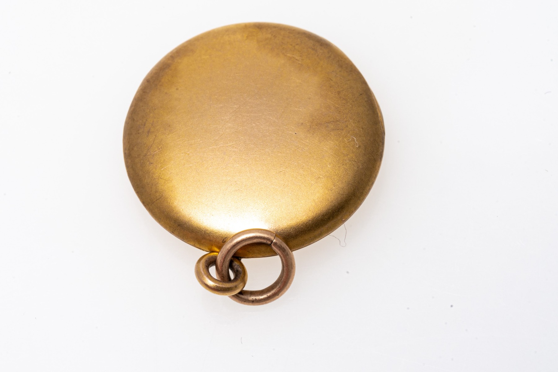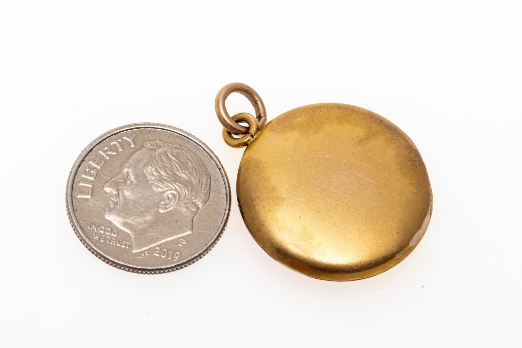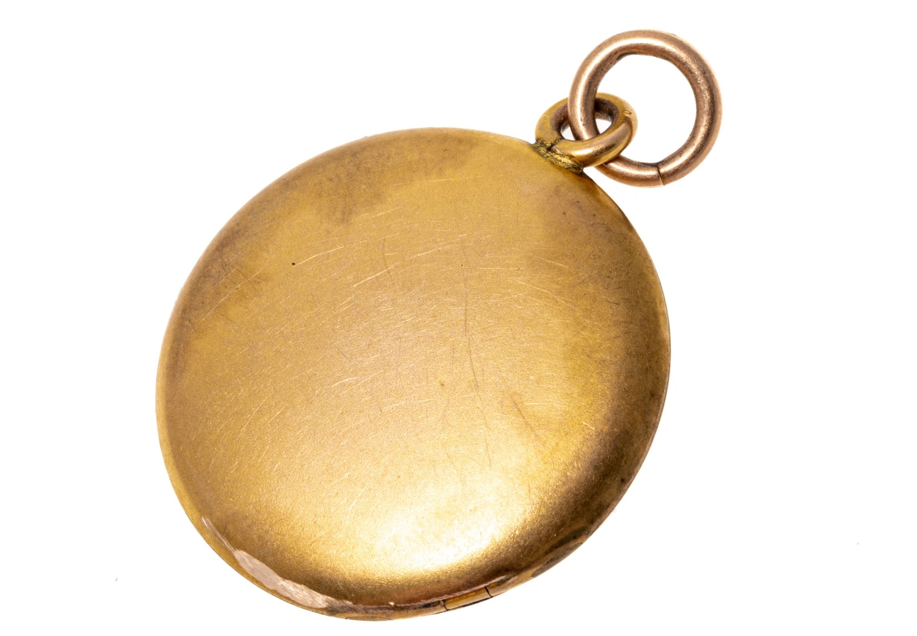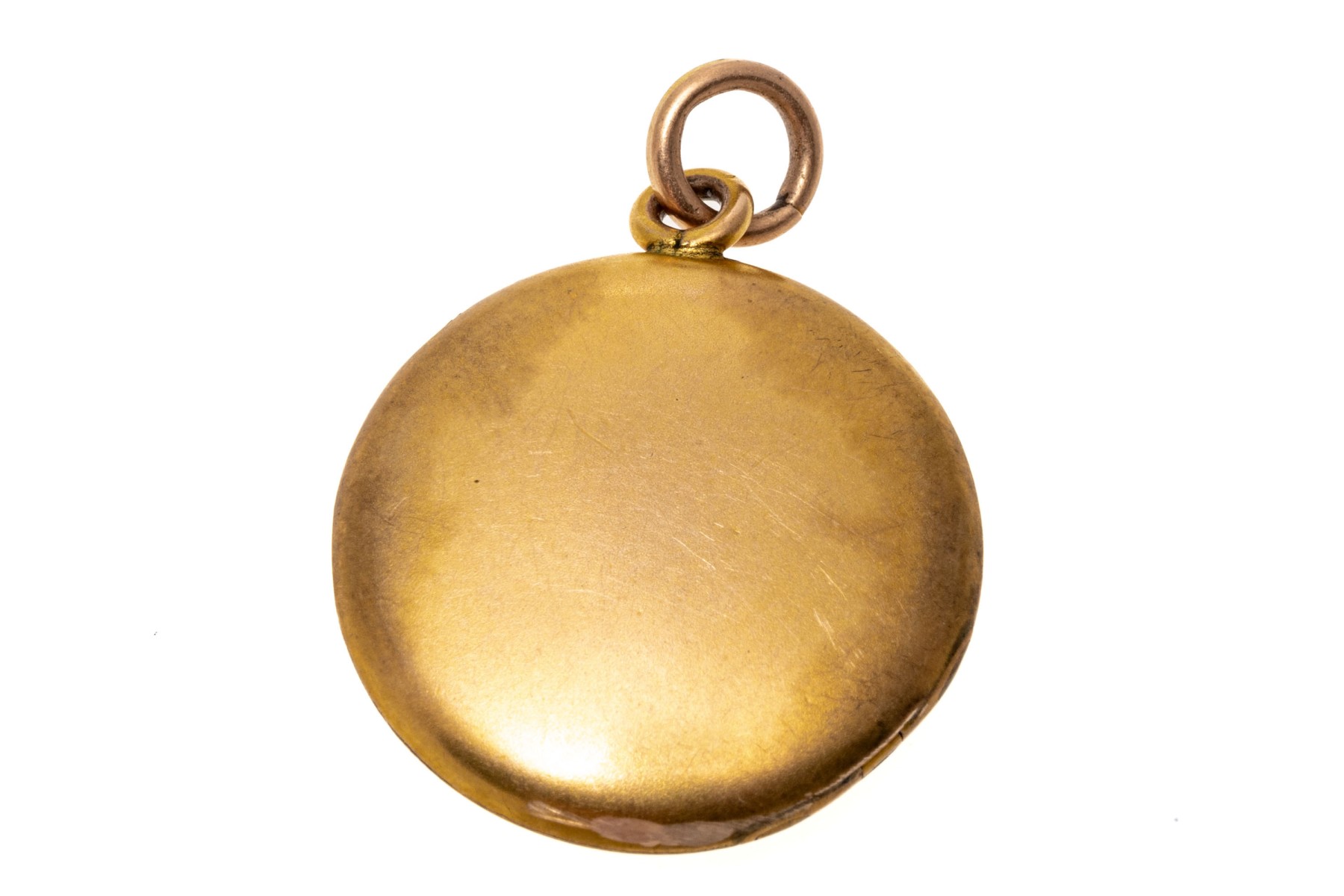 14k yellow gold simple antique round locket. The pendant is finished with a jump ring style bale