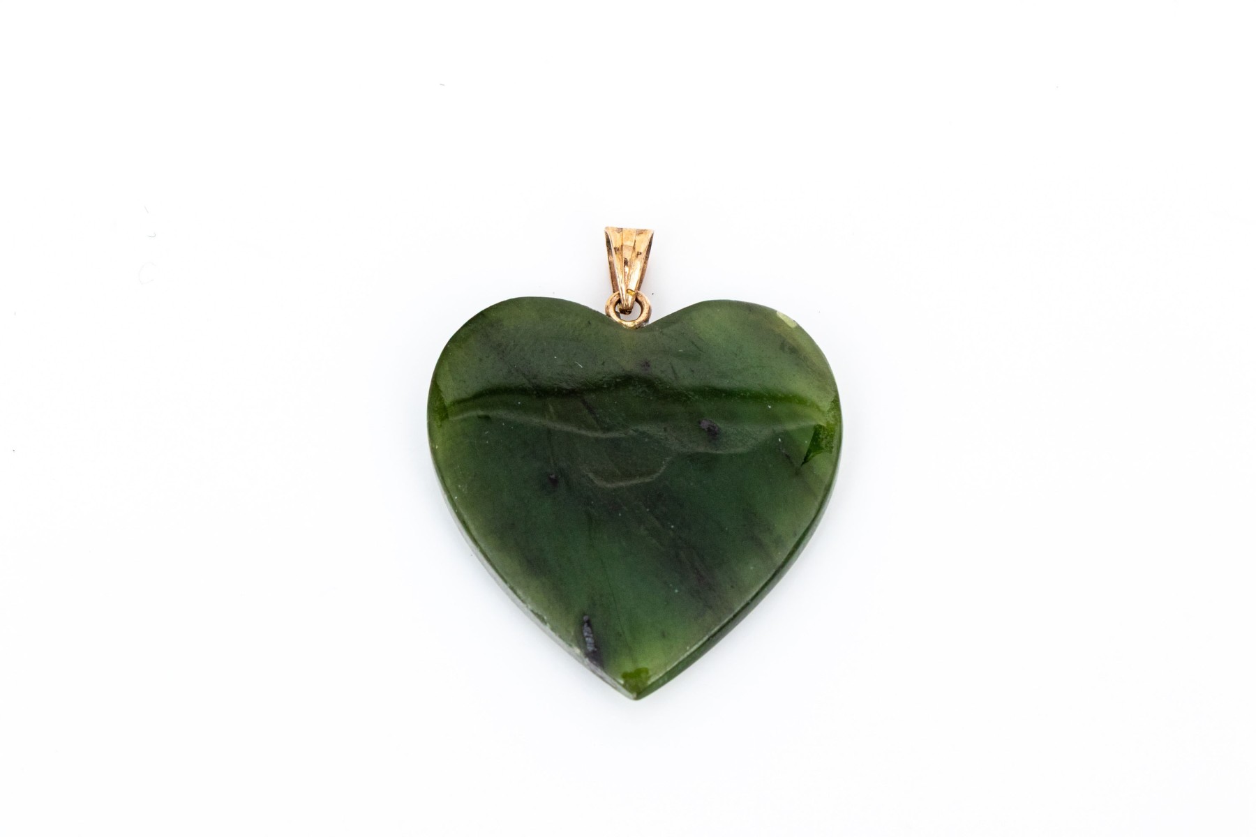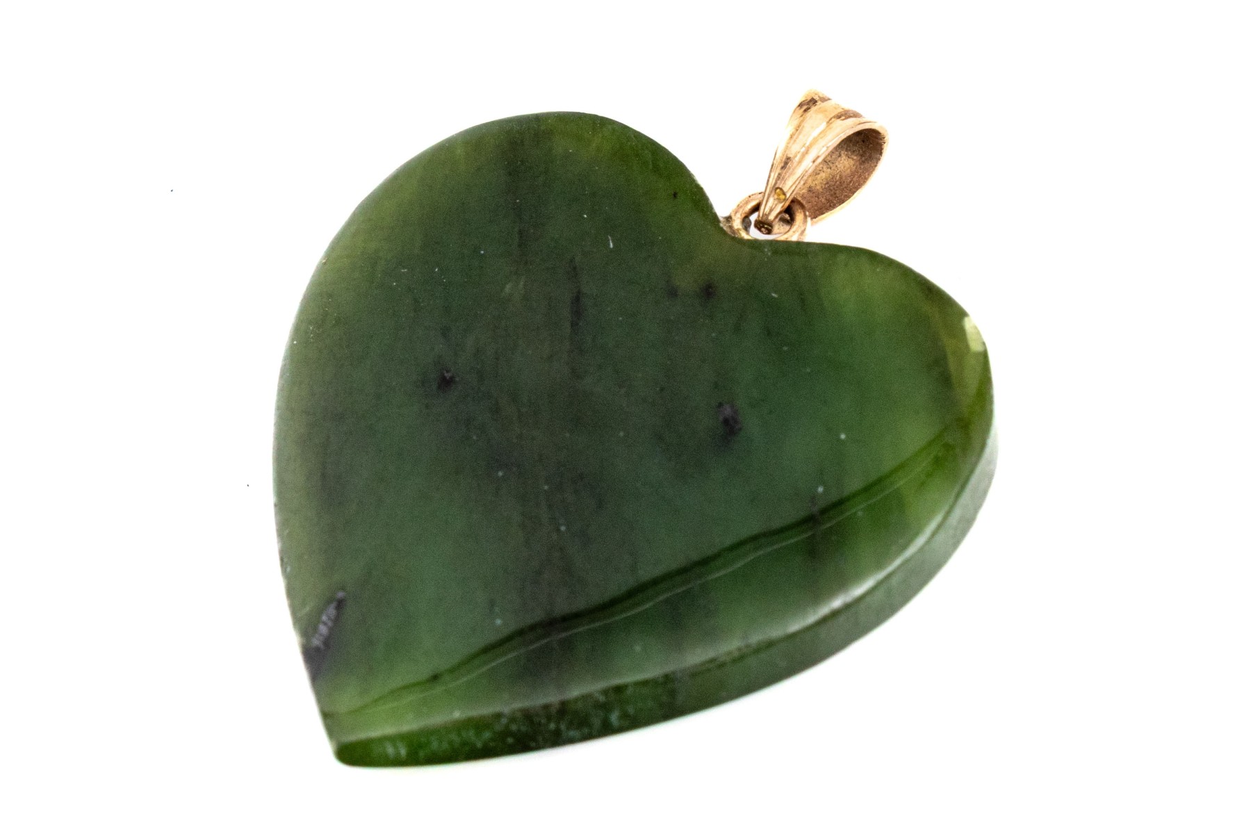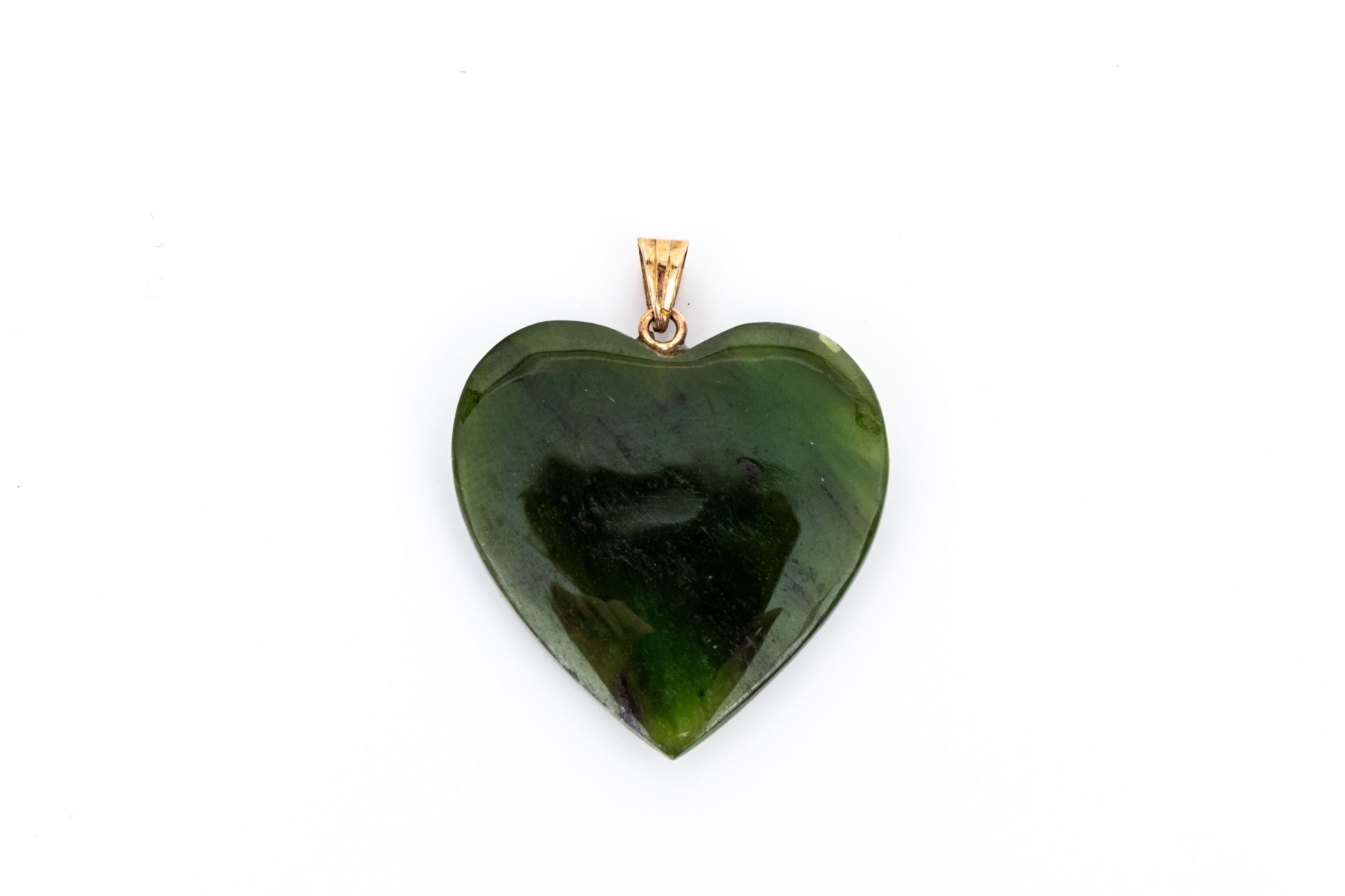 14k yellow gold simple chunky green nephrite jade heart pendant