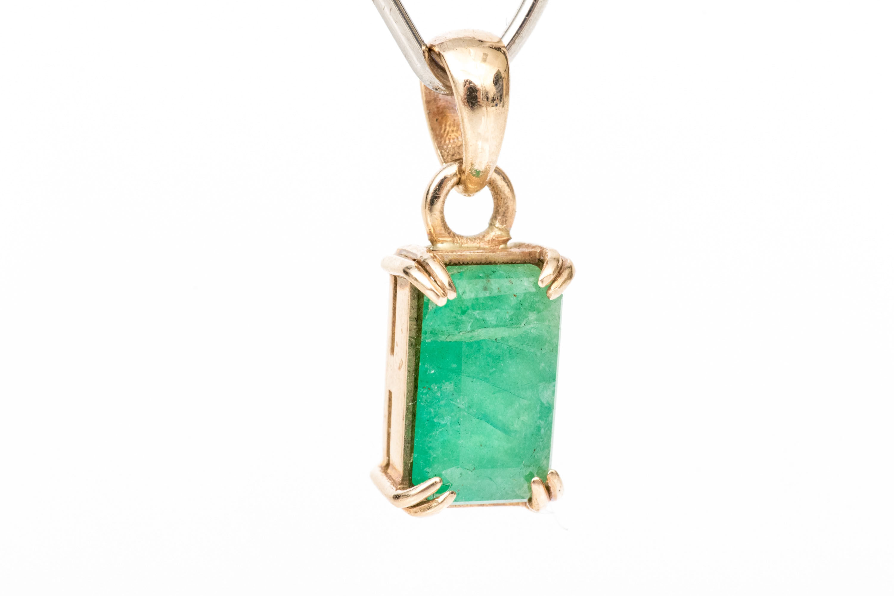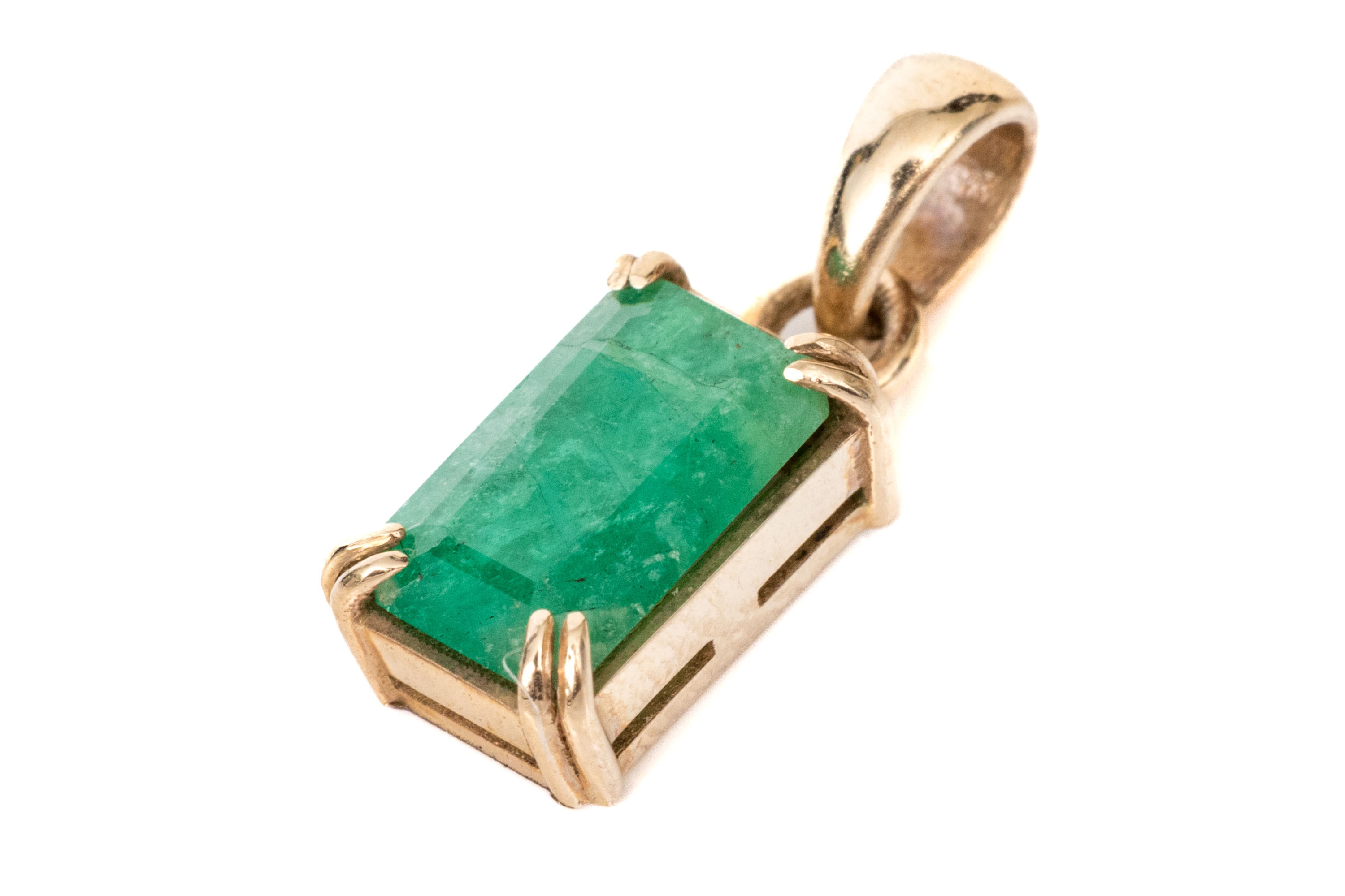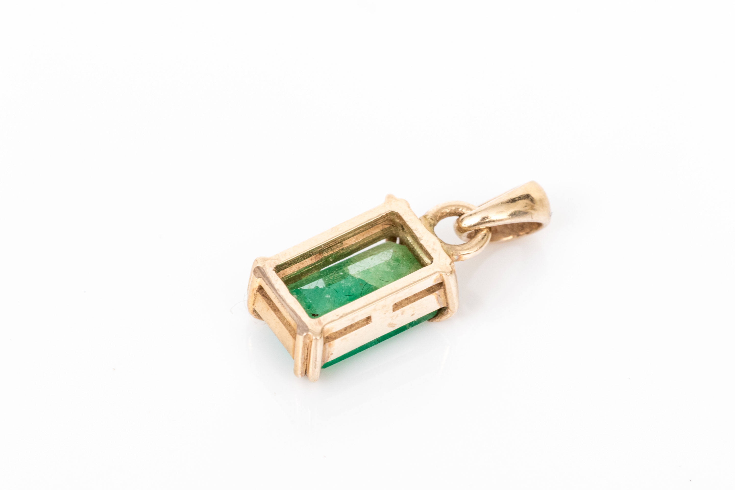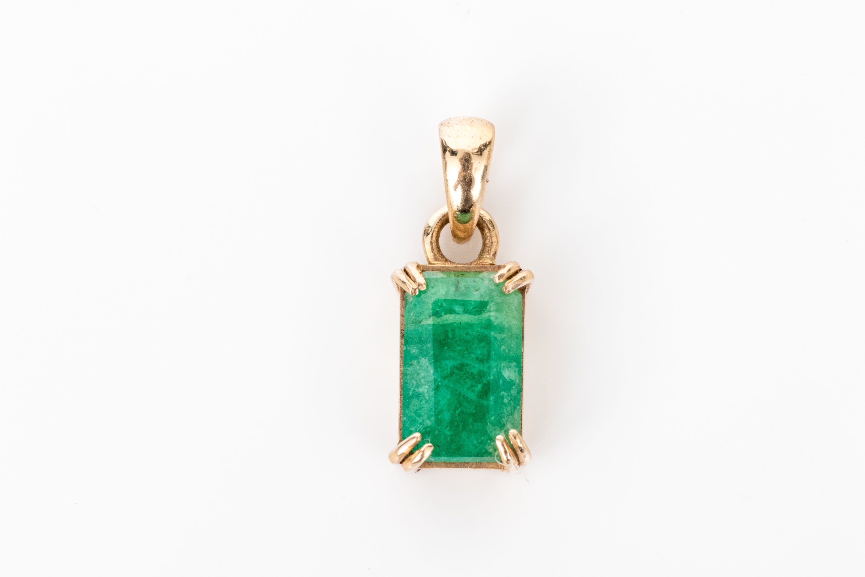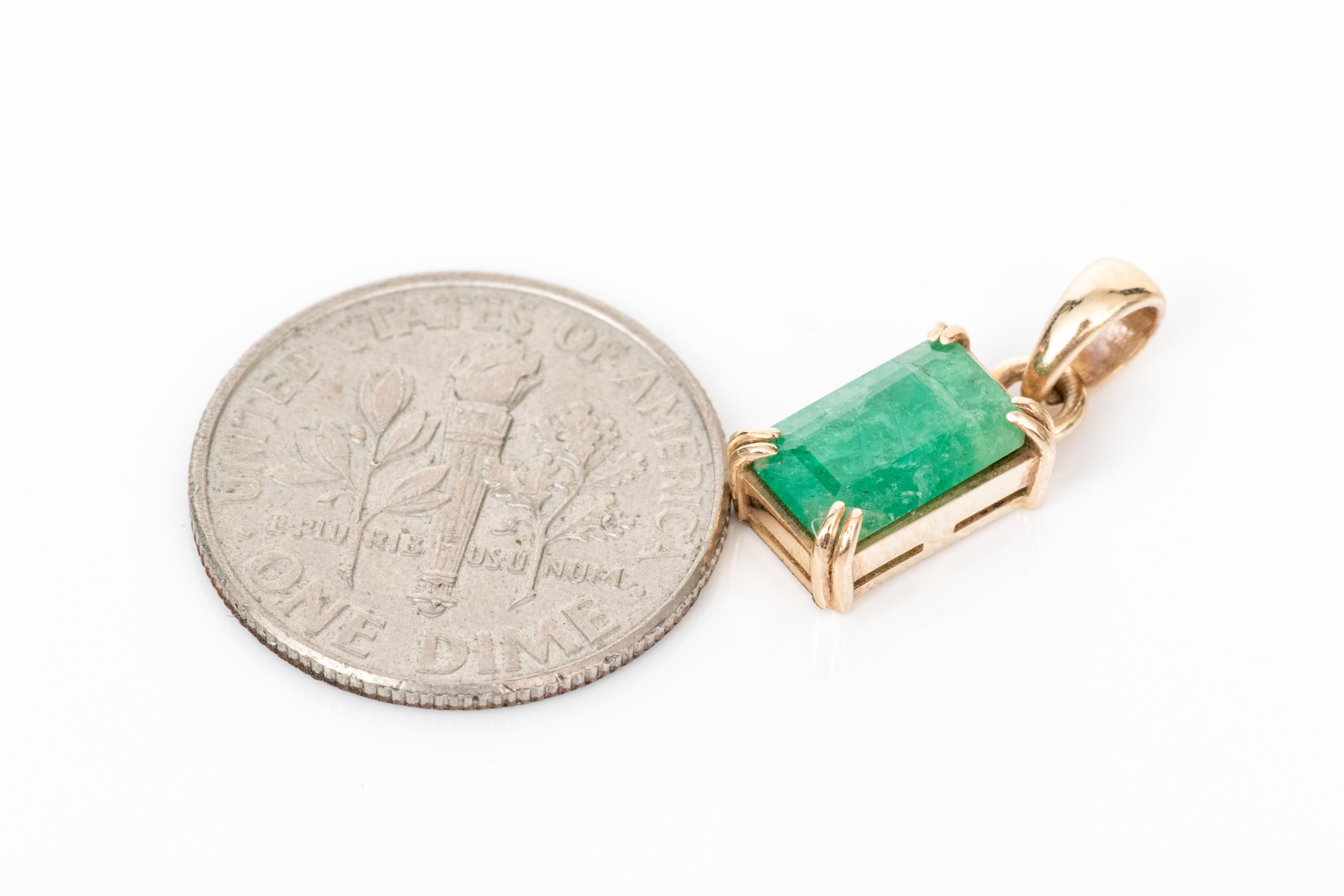 14k yellow gold simple emerald cut opaque emerald pendant, app. 1.09 CTS, prong set, finished with a solid bale
