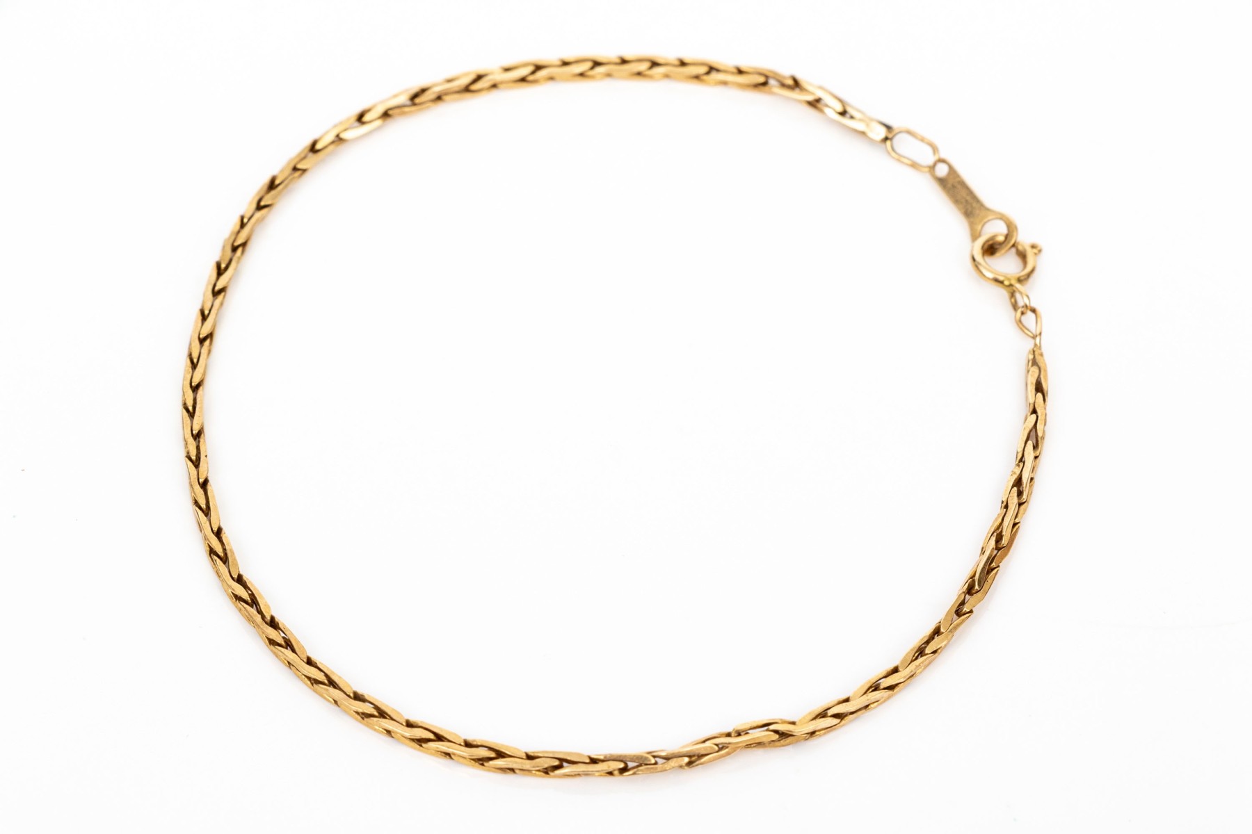 14k yellow gold simple link style bracelet, finished with a spring ring style clasp