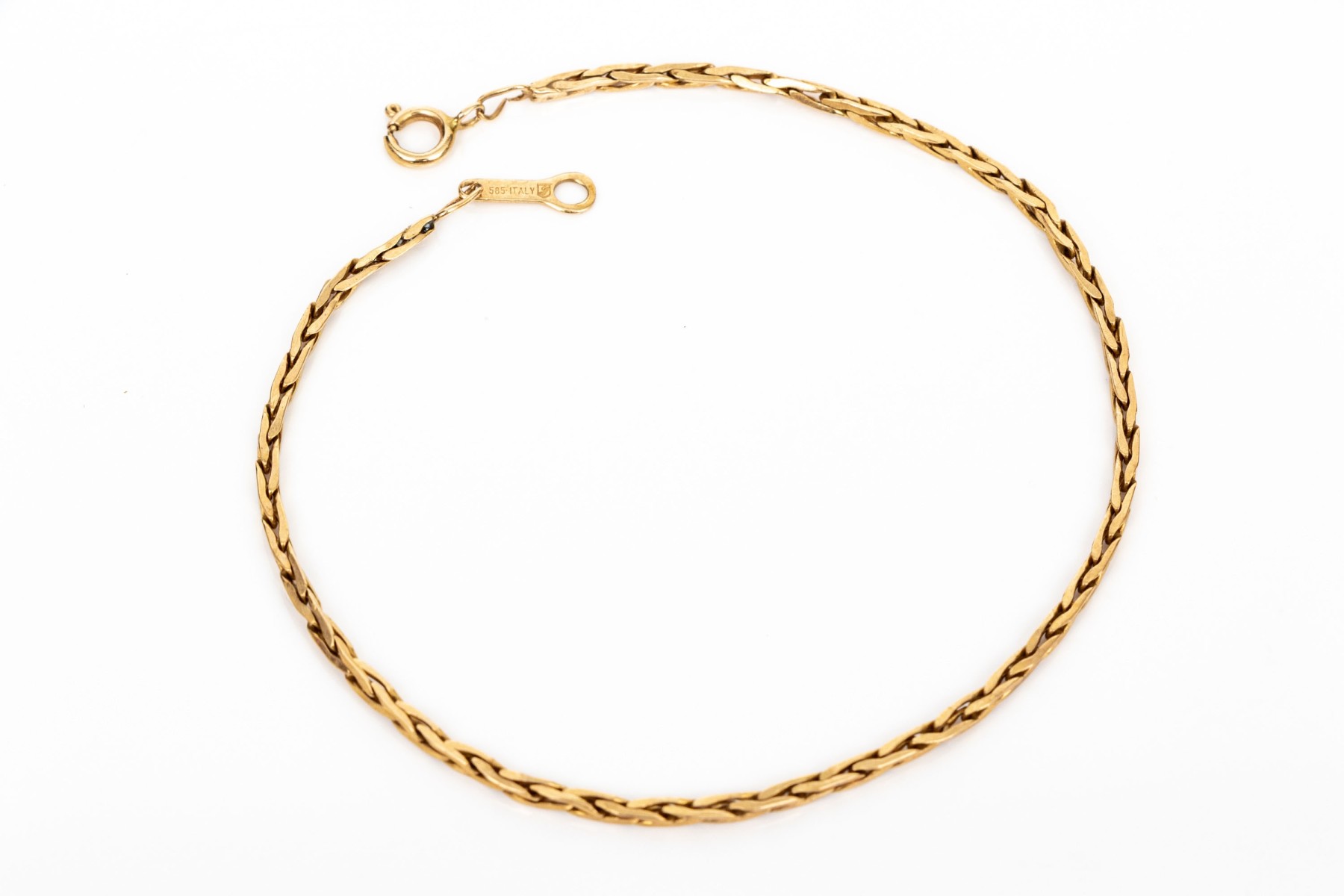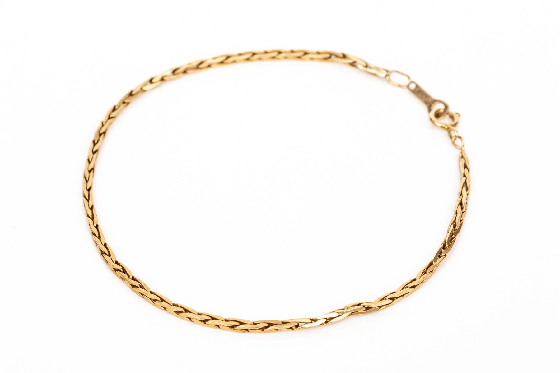 14k yellow gold simple link style bracelet, finished with a spring ring style clasp