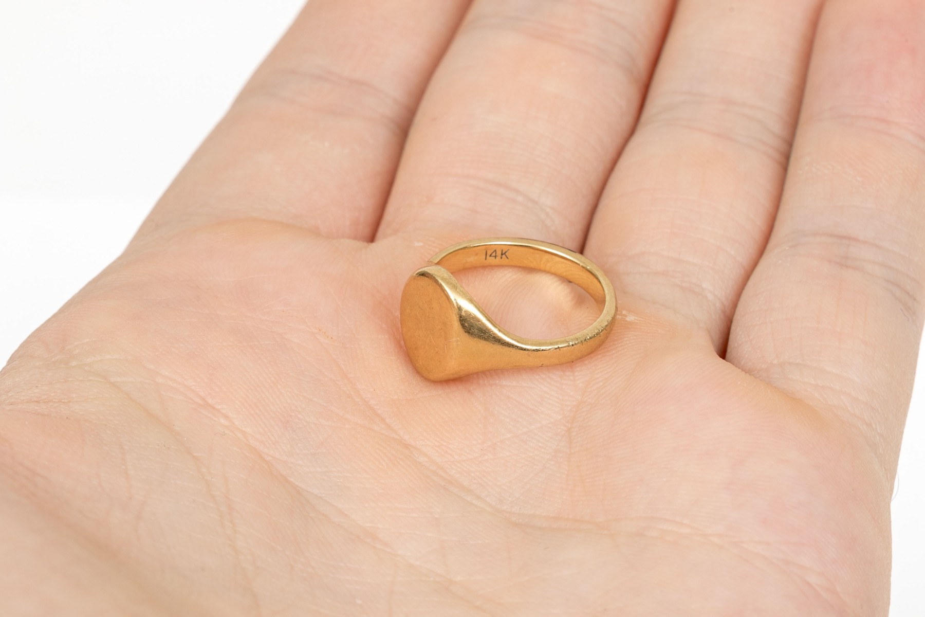 14k yellow gold simple vintage oval signet ring, size 3.5
