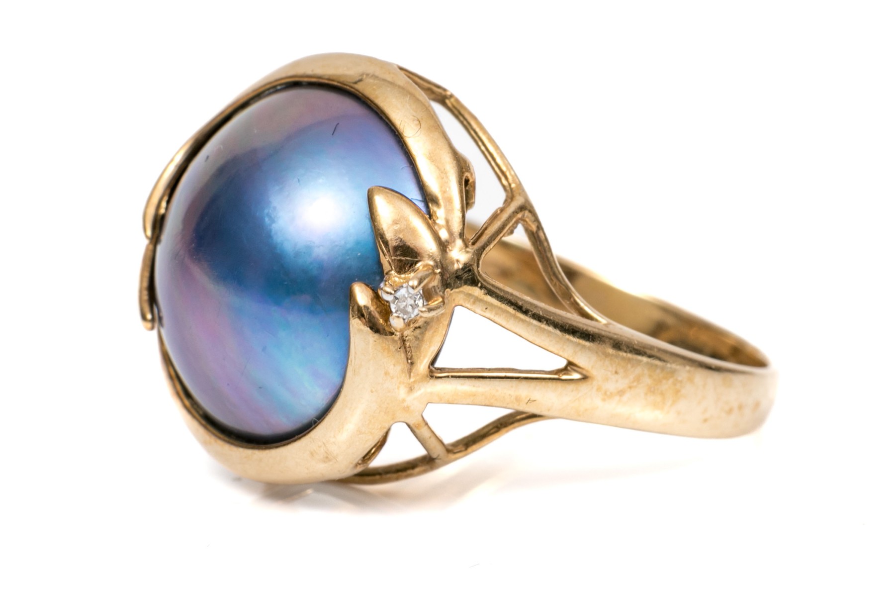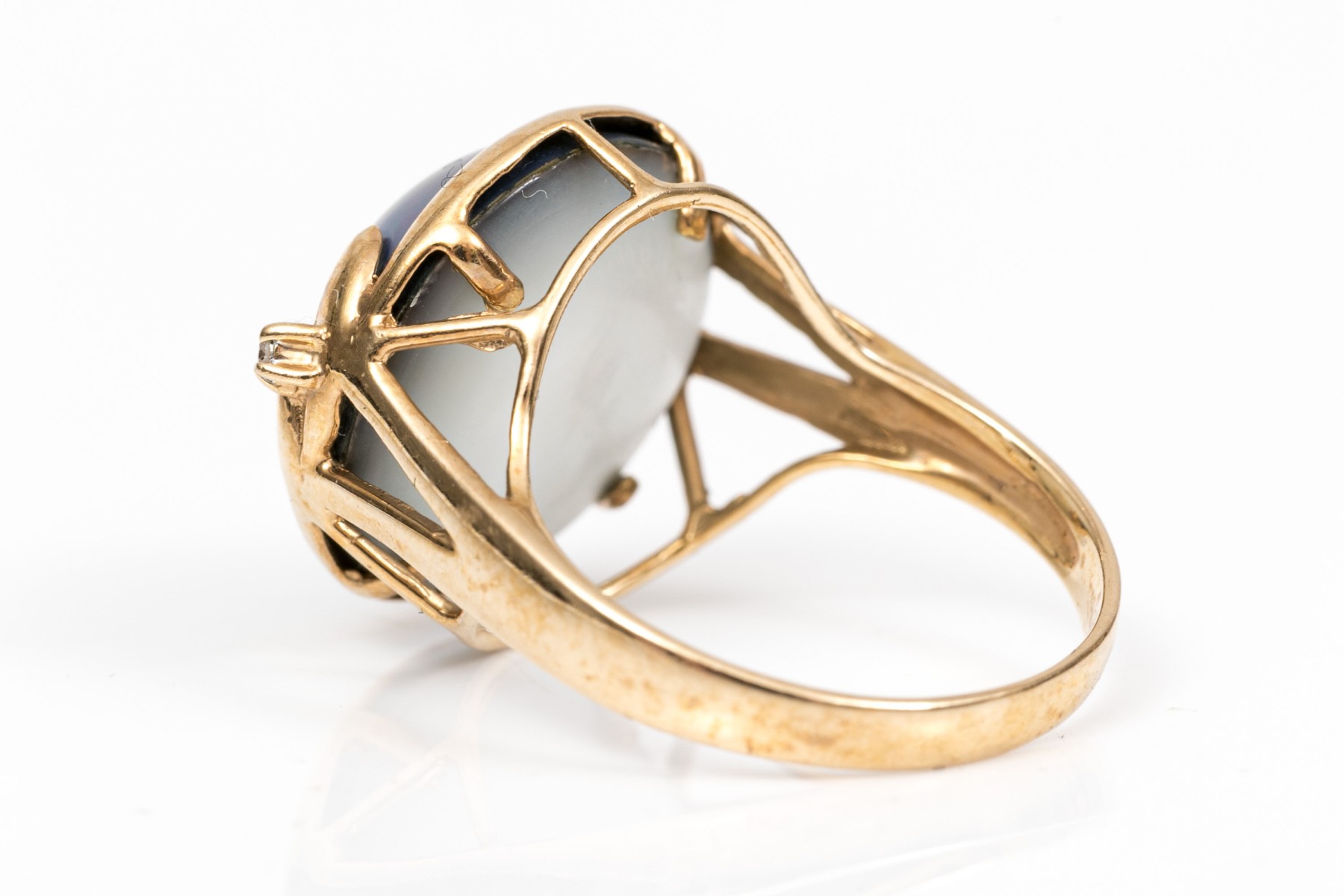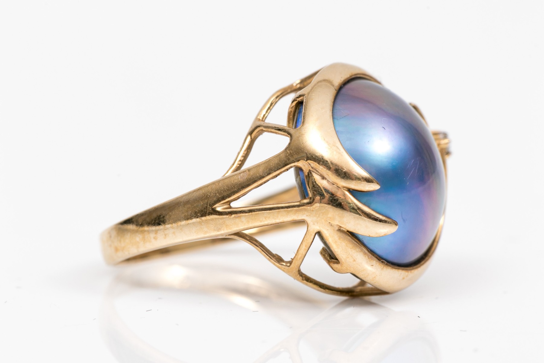 14k yellow gold striking black cultured mabe pearl ring, size 5