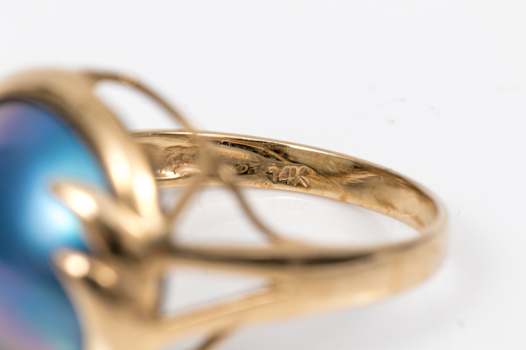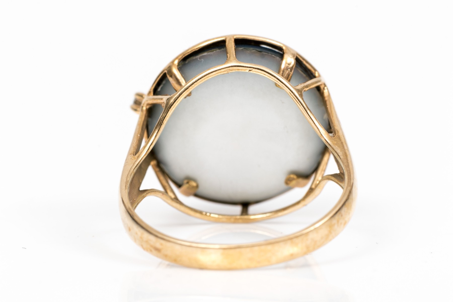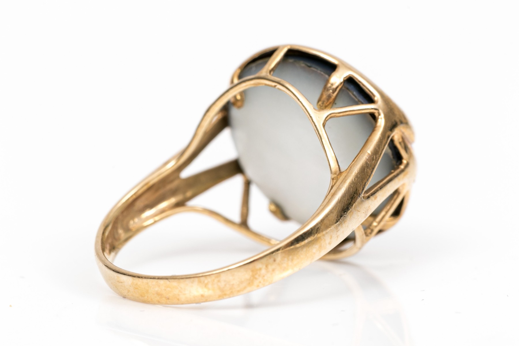 14k yellow gold striking black cultured mabe pearl ring, size 5