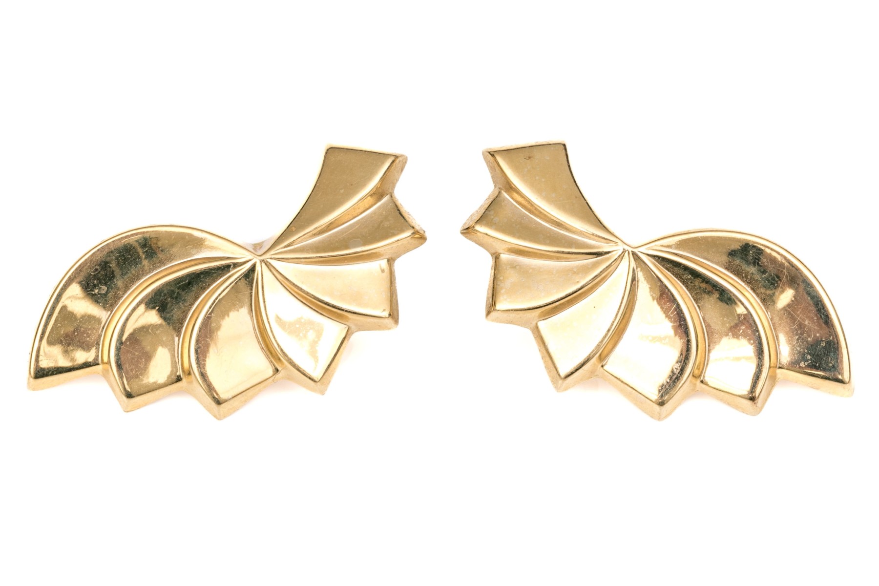 14k Yellow Gold Striking Stepped Wing Motif Style Earrings #344917. Black Rock Galleries provides high end estate liquidation services through online estate auctions and a 50,000 sq ft designer showroom. estate liquidator, estate sale, online auction, antiques, fine art, liquidation, clean outs, auction, consignment, interior design, fine jewelry, collectibles, appraisals, estate appraisals, estate services, decor, furniture, furniture consignment, antique center, consignment shop. We offer appraisal services and specialize in fine art, jewelry, antiques and decorative arts. Sell with us. Black Rock Galleries is the tri-state's largest estate liquidator serving New England and the greater New York City area. We are the trusted source for expert appraisals, auction services, estate sales, and consignments. Black Rock Galleries is the east coast's largest and most trusted estate liquidator, with locations in Connecticut, greater Boston, MA and Raleigh, NC, Fairfield, Southport, Apex, TX. We are the best source for expert appraisals, auction services, estate sales and consignments. We have served thousands of families and estates with compassion, professionalism and expertise. BRG works with attorneys, executors, realtors and families to bring the greatest return on personal and estate property in the current market. Our unique combination of services make us the easy choice to get the job done in a timely and stress-free manner. We are with you from the initial consultation to the final clean out. Our house-built online auction software platform offers clients a dynamic approach to liquidating their personal property. This venue is most successful in bringing the best return with the least amount of disruption for our clients. See our services page for a complete description of this offering. 14k Yellow Gold Striking Stepped Wing Motif Style Earrings #344917
