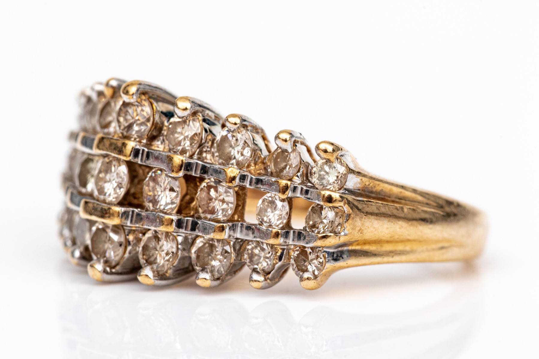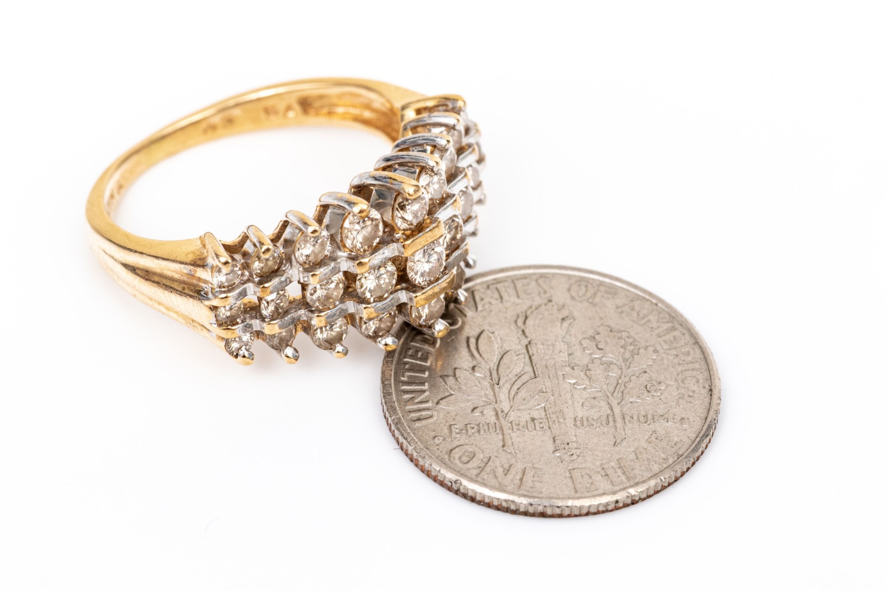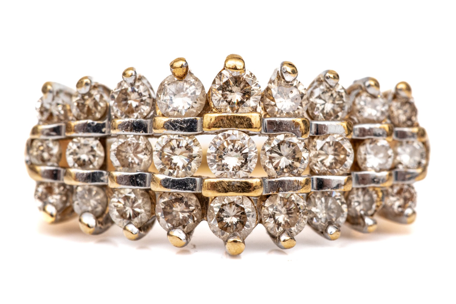 14k Yellow Gold Striking Three Row Diamond Dome Ring, App. 0.69 TCW, Size 5 #258719. Black Rock Galleries provides high end estate liquidation services through online estate auctions and a 50,000 sq ft designer showroom. estate liquidator, estate sale, online auction, antiques, fine art, liquidation, clean outs, auction, consignment, interior design, fine jewelry, collectibles, appraisals, estate appraisals, estate services, decor, furniture, furniture consignment, antique center, consignment shop. We offer appraisal services and specialize in fine art, jewelry, antiques and decorative arts. Sell with us. Black Rock Galleries is the tri-state's largest estate liquidator serving New England and the greater New York City area. We are the trusted source for expert appraisals, auction services, estate sales, and consignments. Black Rock Galleries is the east coast's largest and most trusted estate liquidator, with locations in Connecticut, greater Boston, MA and Raleigh, NC, Fairfield, Southport, Apex, TX. We are the best source for expert appraisals, auction services, estate sales and consignments. We have served thousands of families and estates with compassion, professionalism and expertise. BRG works with attorneys, executors, realtors and families to bring the greatest return on personal and estate property in the current market. Our unique combination of services make us the easy choice to get the job done in a timely and stress-free manner. We are with you from the initial consultation to the final clean out. Our house-built online auction software platform offers clients a dynamic approach to liquidating their personal property. This venue is most successful in bringing the best return with the least amount of disruption for our clients. See our services page for a complete description of this offering. 14k Yellow Gold Striking Three Row Diamond Dome Ring, App. 0.69 TCW, Size 5 #258719