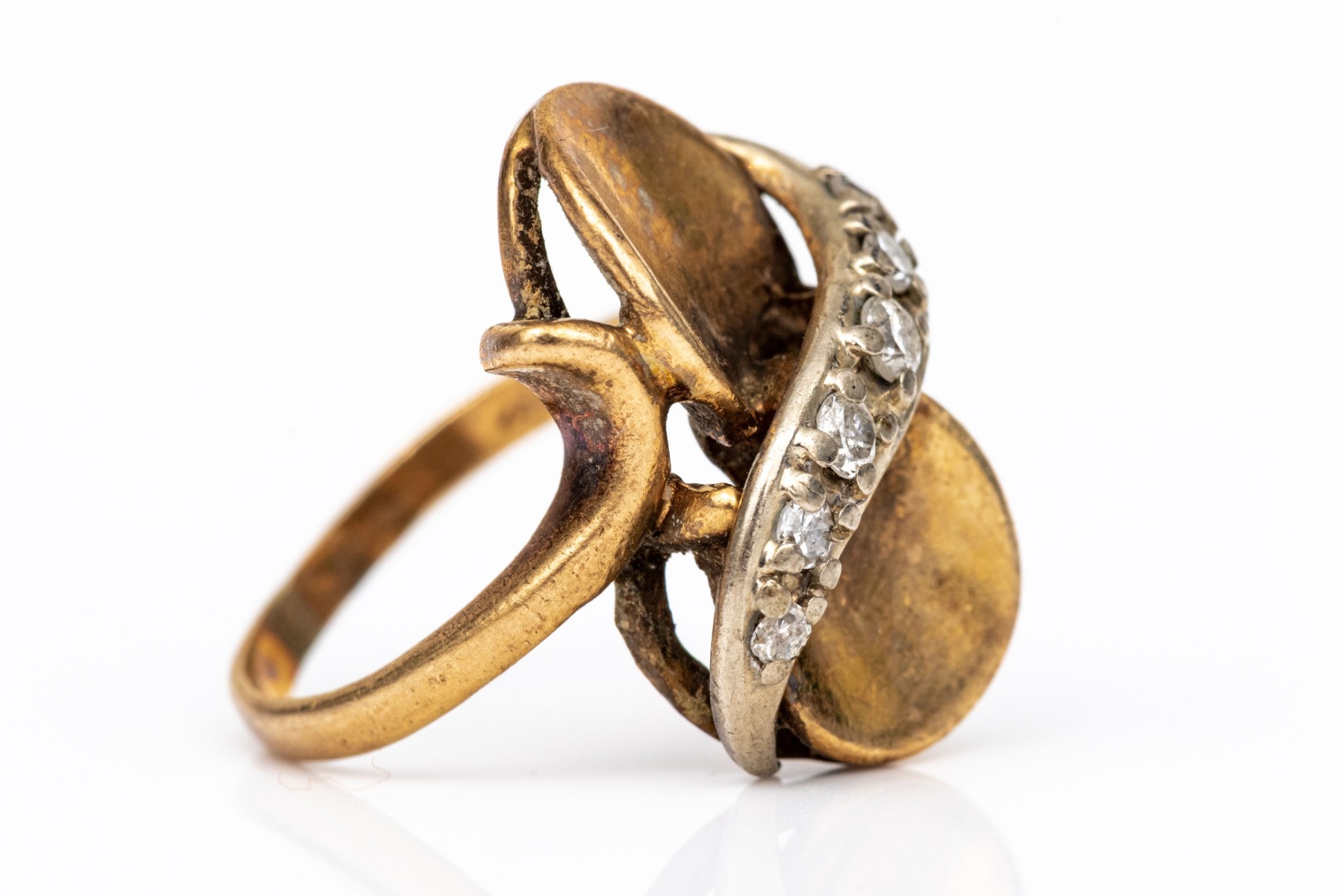 14k yellow gold striking vertical profile diamond set ring, app. 0.08 TCW, size 2.75