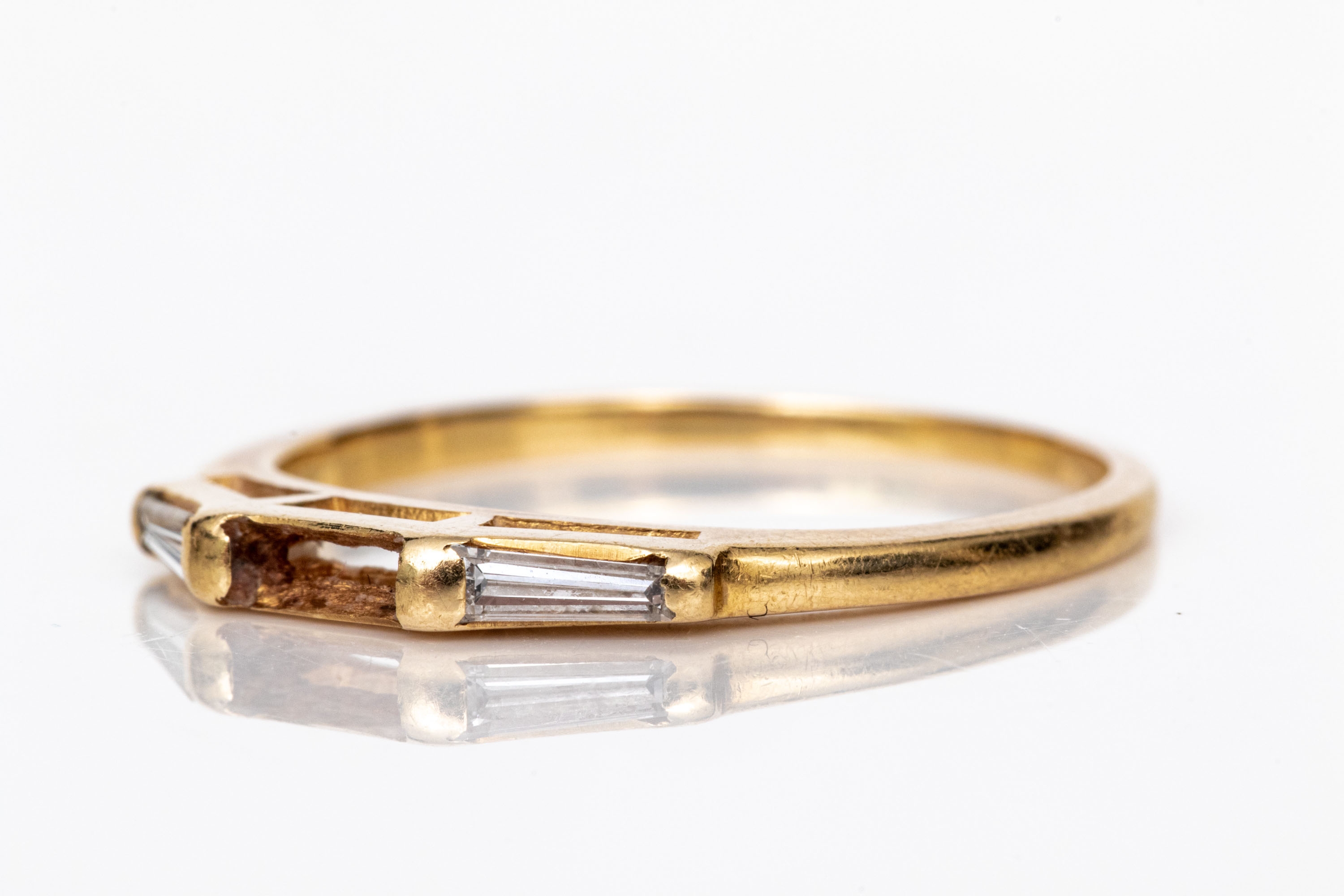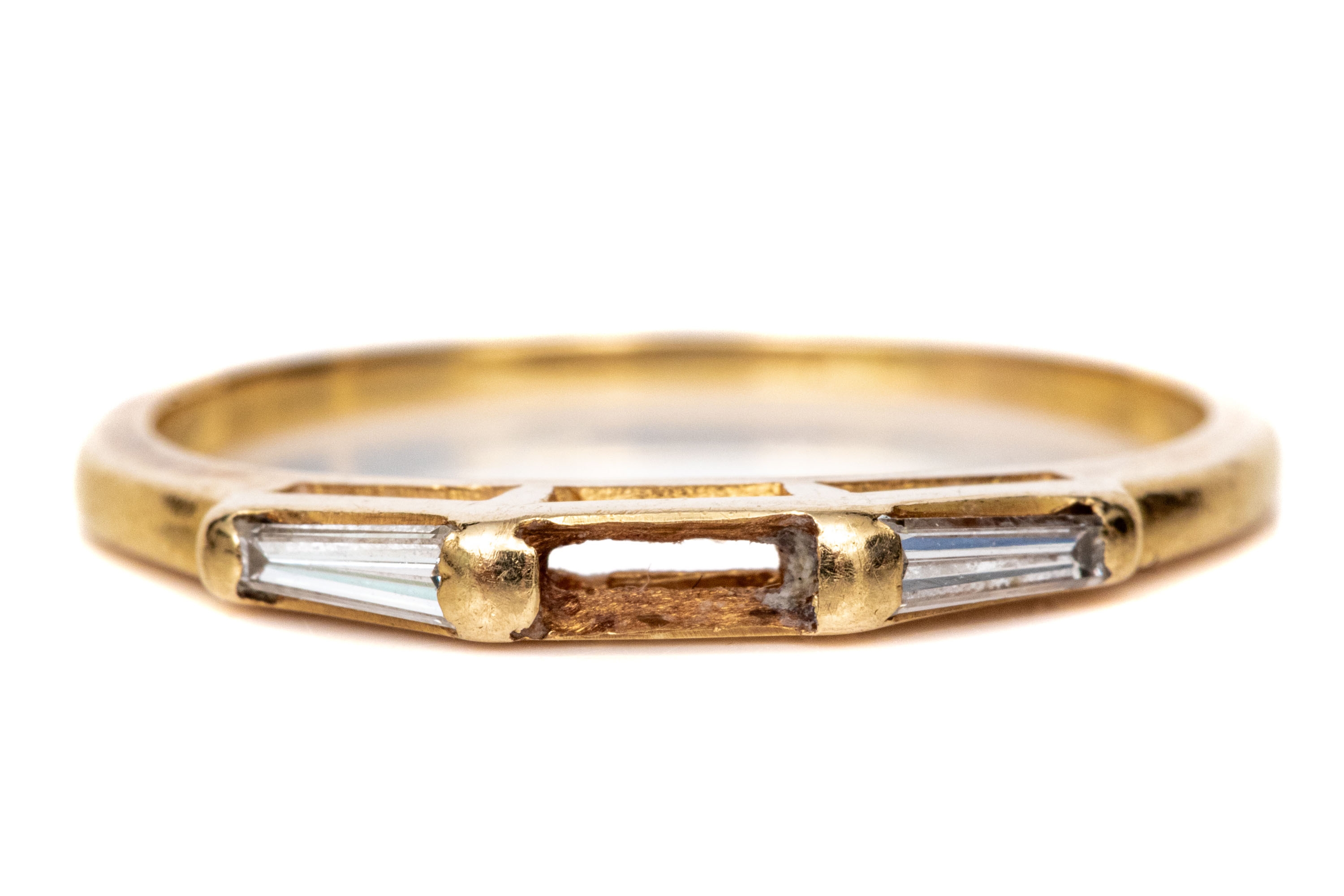 14k Yellow Gold Three Stone Baguette Diamond Band Ring, App. 0.20 TCW, Size 7.25, As-is #459994. Black Rock Galleries provides high end estate liquidation services through online estate auctions and a 50,000 sq ft designer showroom. estate liquidator, estate sale, online auction, antiques, fine art, liquidation, clean outs, auction, consignment, interior design, fine jewelry, collectibles, appraisals, estate appraisals, estate services, decor, furniture, furniture consignment, antique center, consignment shop. We offer appraisal services and specialize in fine art, jewelry, antiques and decorative arts. Sell with us. Black Rock Galleries is the tri-state's largest estate liquidator serving New England and the greater New York City area. We are the trusted source for expert appraisals, auction services, estate sales, and consignments. Black Rock Galleries is the east coast's largest and most trusted estate liquidator, with locations in Connecticut, greater Boston, MA and Raleigh, NC, Fairfield, Southport, Apex, TX. We are the best source for expert appraisals, auction services, estate sales and consignments. We have served thousands of families and estates with compassion, professionalism and expertise. BRG works with attorneys, executors, realtors and families to bring the greatest return on personal and estate property in the current market. Our unique combination of services make us the easy choice to get the job done in a timely and stress-free manner. We are with you from the initial consultation to the final clean out. Our house-built online auction software platform offers clients a dynamic approach to liquidating their personal property. This venue is most successful in bringing the best return with the least amount of disruption for our clients. See our services page for a complete description of this offering. 14k Yellow Gold Three Stone Baguette Diamond Band Ring, App. 0.20 TCW, Size 7.25, As-is #459994