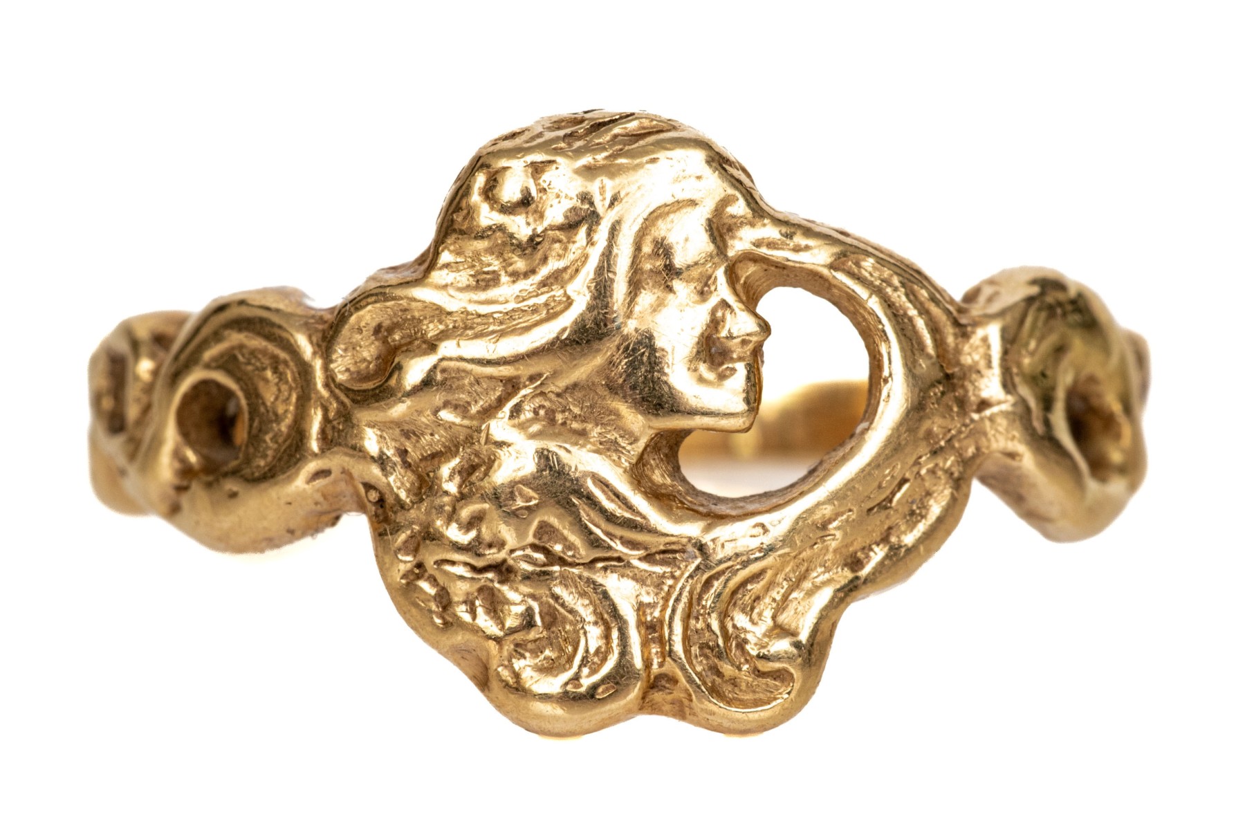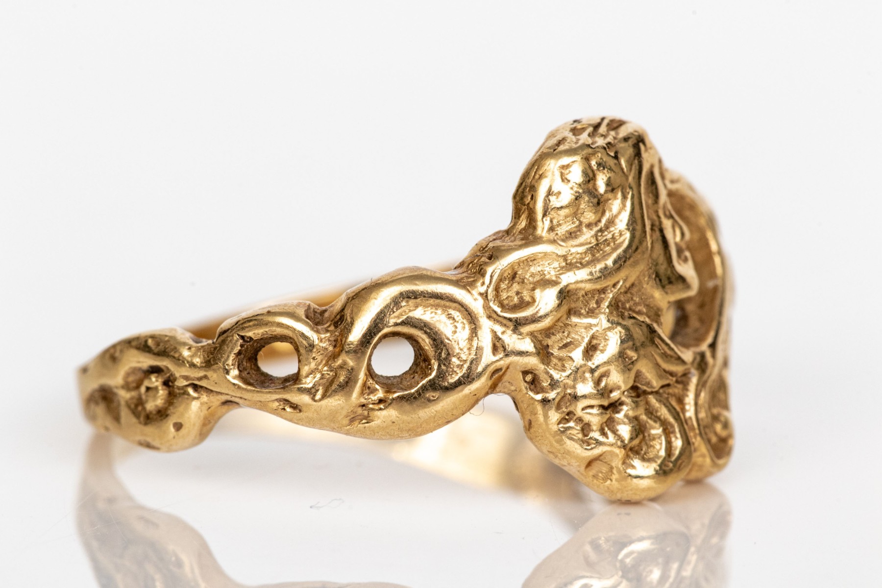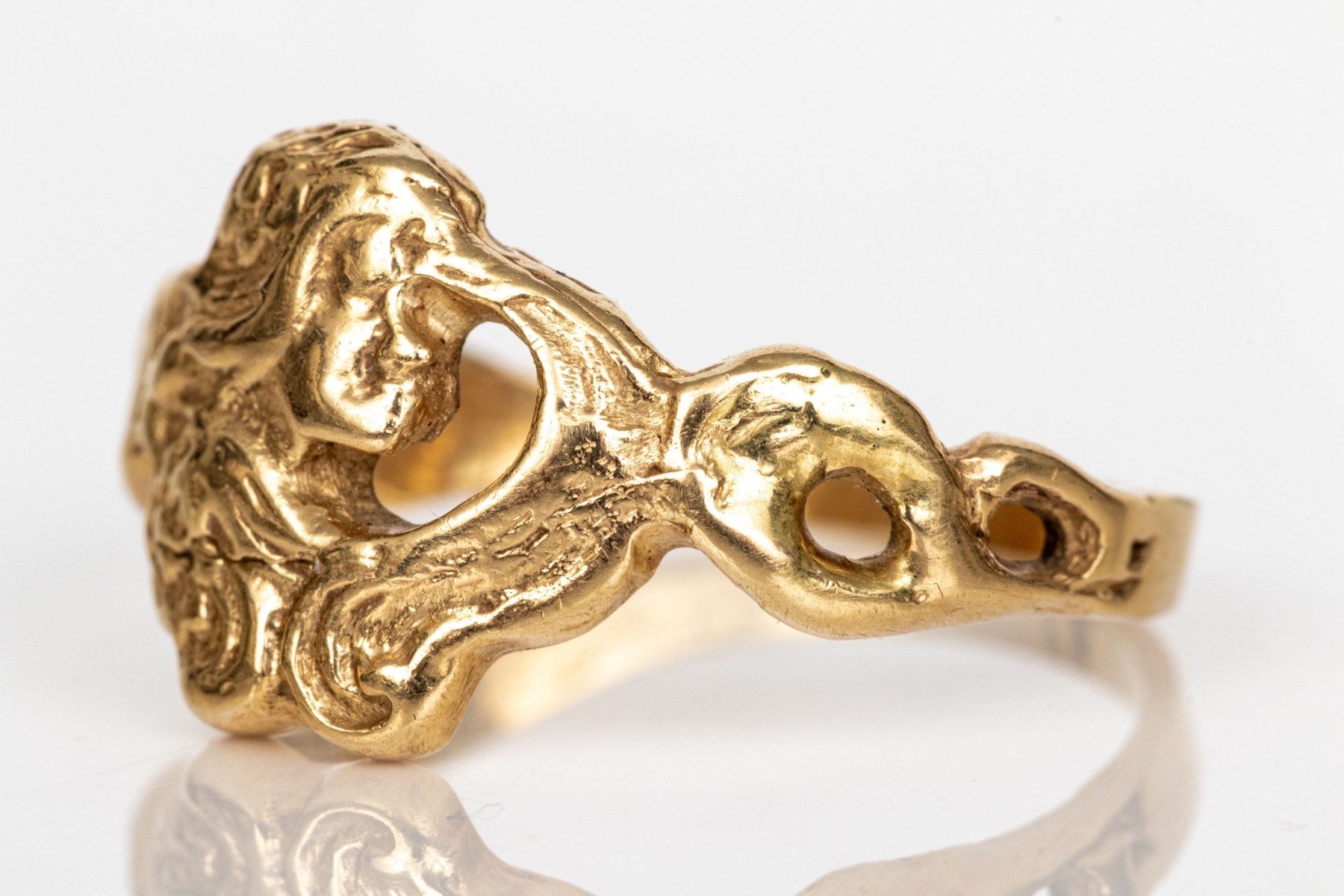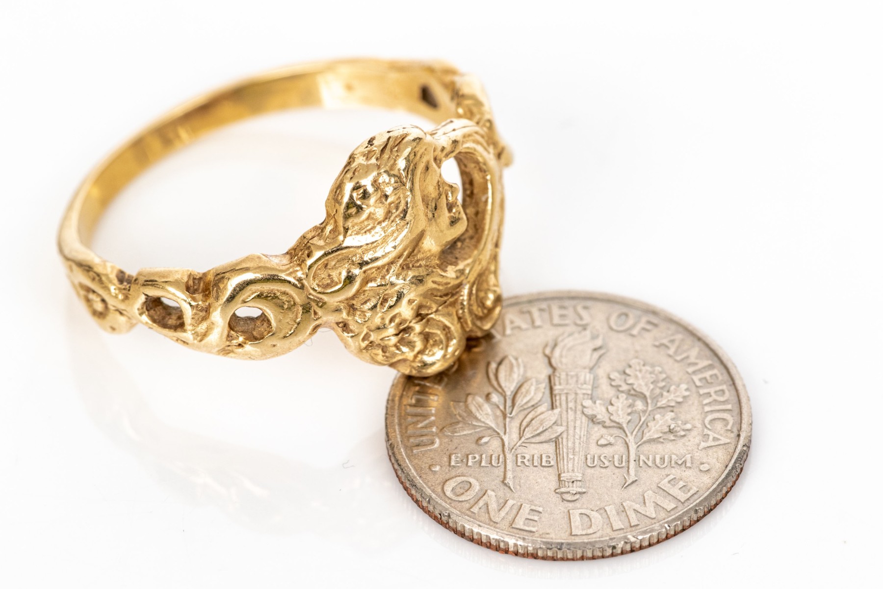 14k yellow gold vintage Art Nouveau motif ring, size 10.25