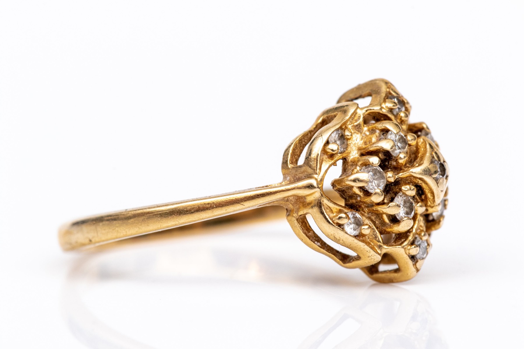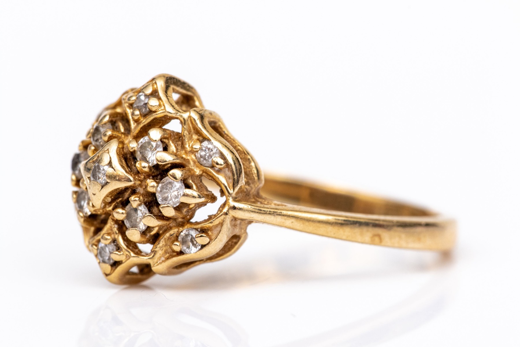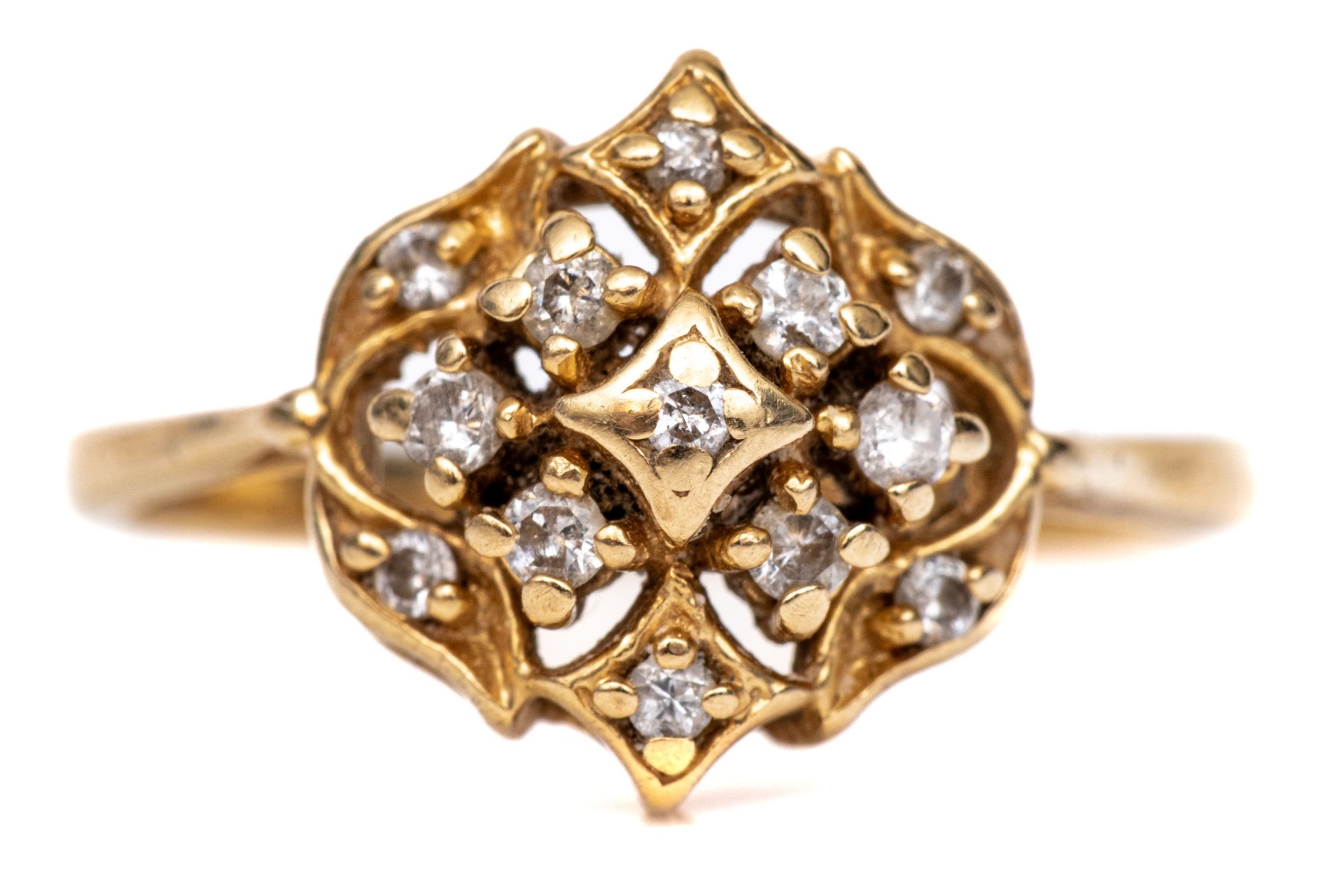 14k Yellow Gold Vintage Diamond Cluster Ring, App. 0.11 TCW, Size 6 #259815. Black Rock Galleries provides high end estate liquidation services through online estate auctions and a 50,000 sq ft designer showroom. estate liquidator, estate sale, online auction, antiques, fine art, liquidation, clean outs, auction, consignment, interior design, fine jewelry, collectibles, appraisals, estate appraisals, estate services, decor, furniture, furniture consignment, antique center, consignment shop. We offer appraisal services and specialize in fine art, jewelry, antiques and decorative arts. Sell with us. Black Rock Galleries is the tri-state's largest estate liquidator serving New England and the greater New York City area. We are the trusted source for expert appraisals, auction services, estate sales, and consignments. Black Rock Galleries is the east coast's largest and most trusted estate liquidator, with locations in Connecticut, greater Boston, MA and Raleigh, NC, Fairfield, Southport, Apex, TX. We are the best source for expert appraisals, auction services, estate sales and consignments. We have served thousands of families and estates with compassion, professionalism and expertise. BRG works with attorneys, executors, realtors and families to bring the greatest return on personal and estate property in the current market. Our unique combination of services make us the easy choice to get the job done in a timely and stress-free manner. We are with you from the initial consultation to the final clean out. Our house-built online auction software platform offers clients a dynamic approach to liquidating their personal property. This venue is most successful in bringing the best return with the least amount of disruption for our clients. See our services page for a complete description of this offering. 14k Yellow Gold Vintage Diamond Cluster Ring, App. 0.11 TCW, Size 6 #259815