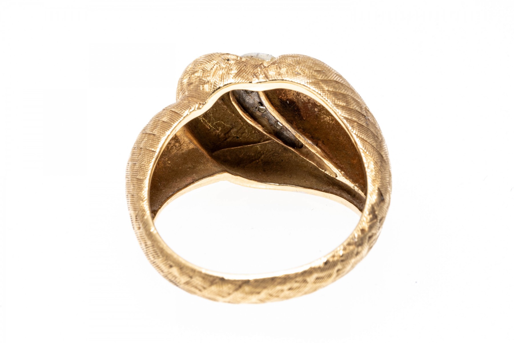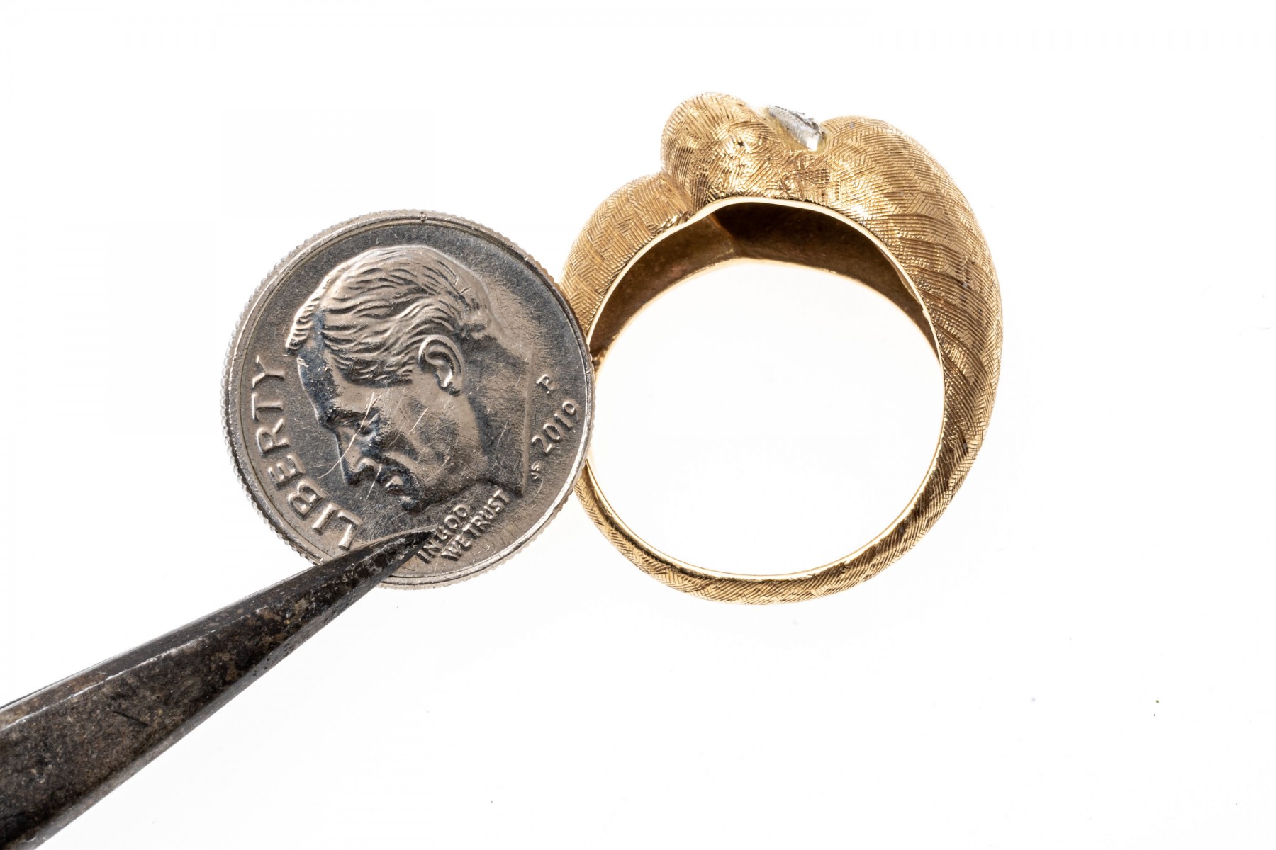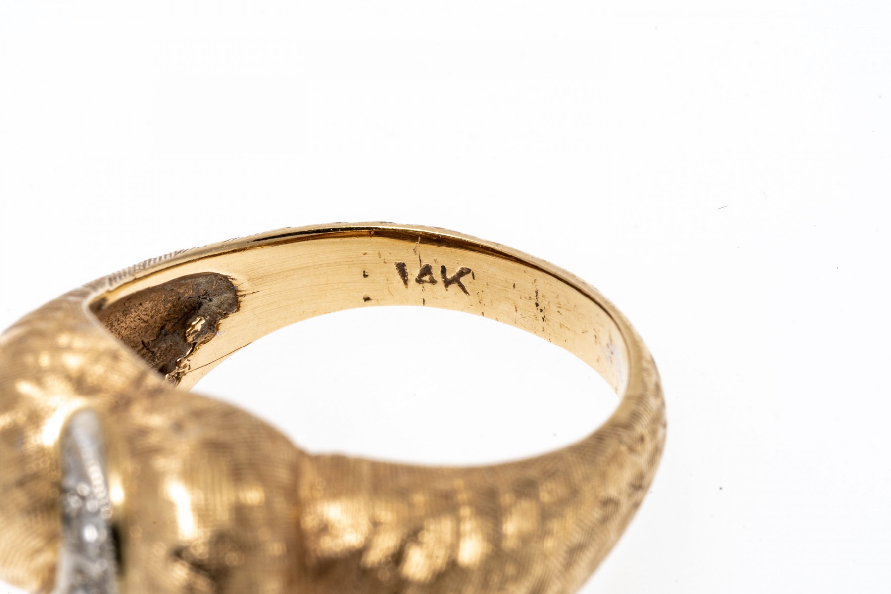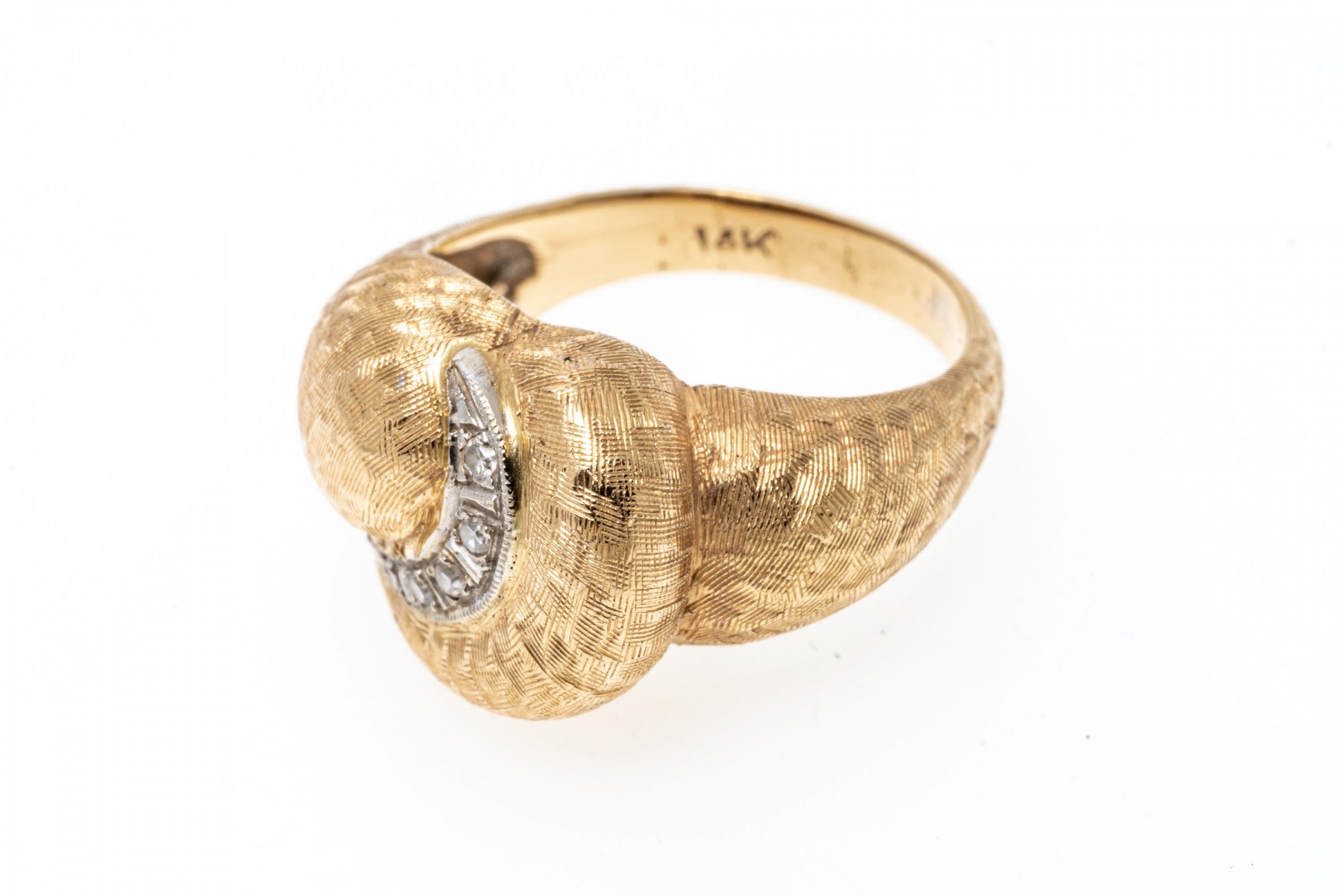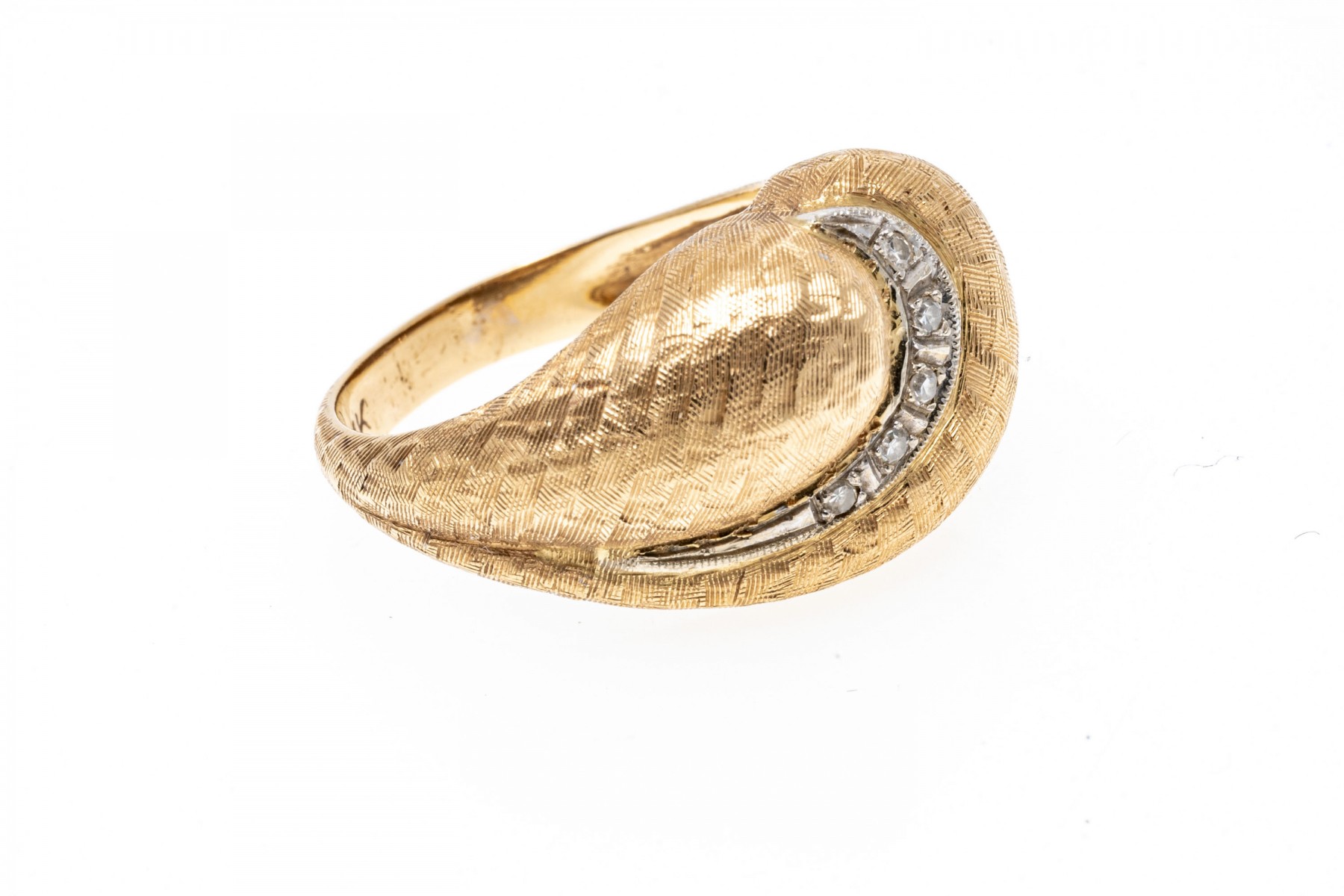 14k yellow gold vintage diamond swirl dome ring, Florentine finished, app. .03 TCW