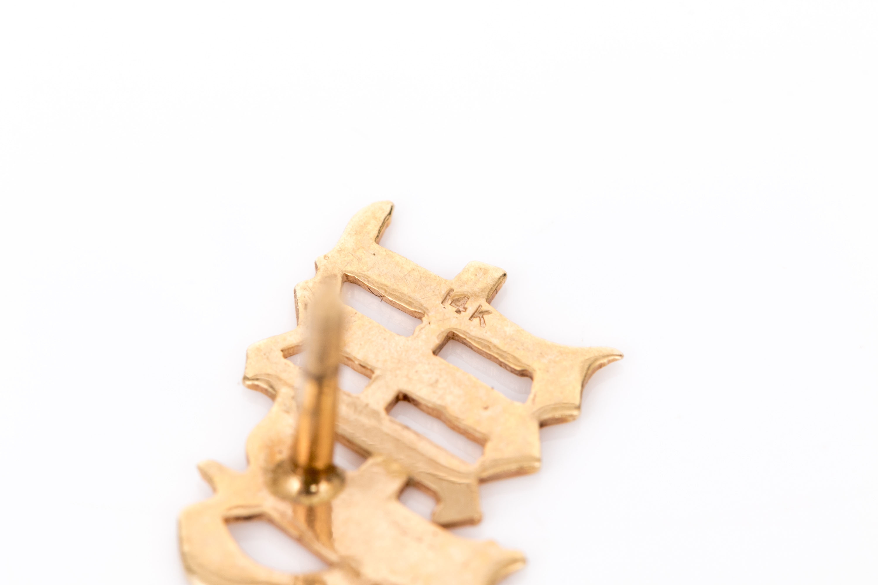 14k yellow gold vintage initialled "MAR" scatter pin, old English font