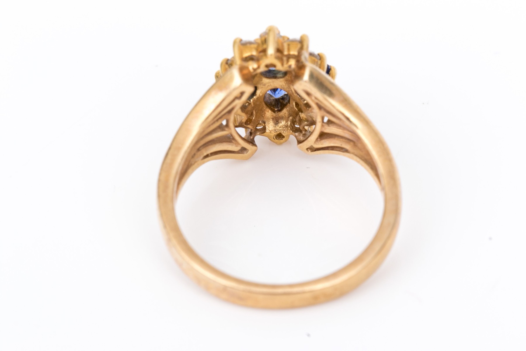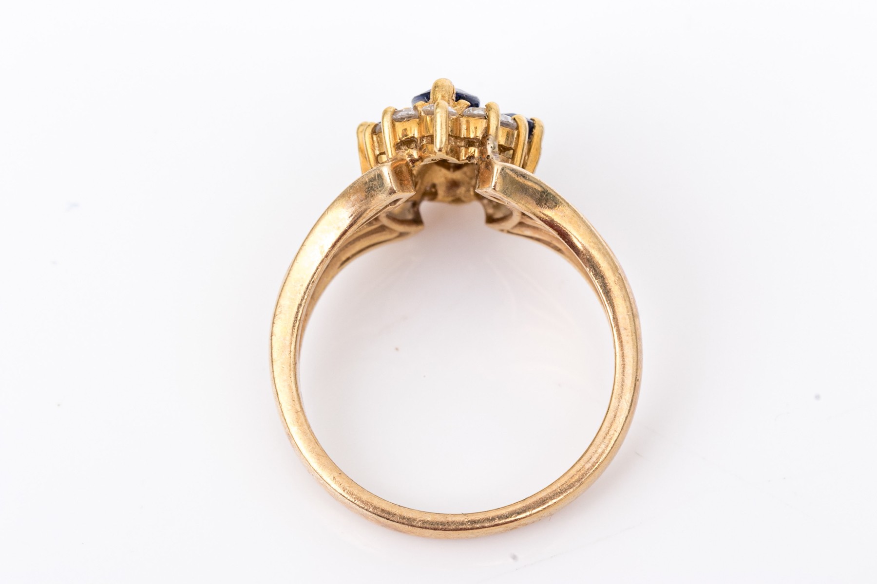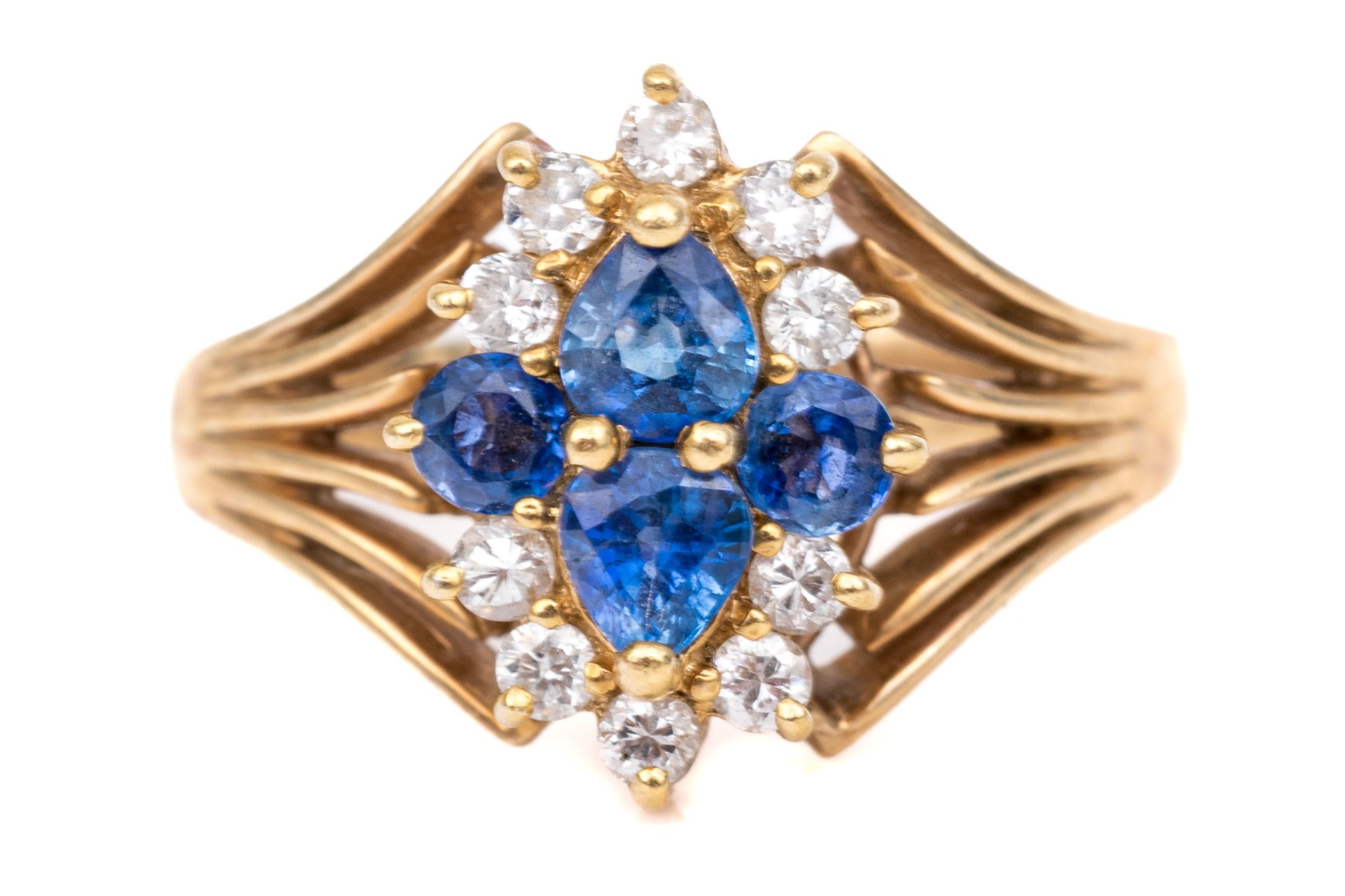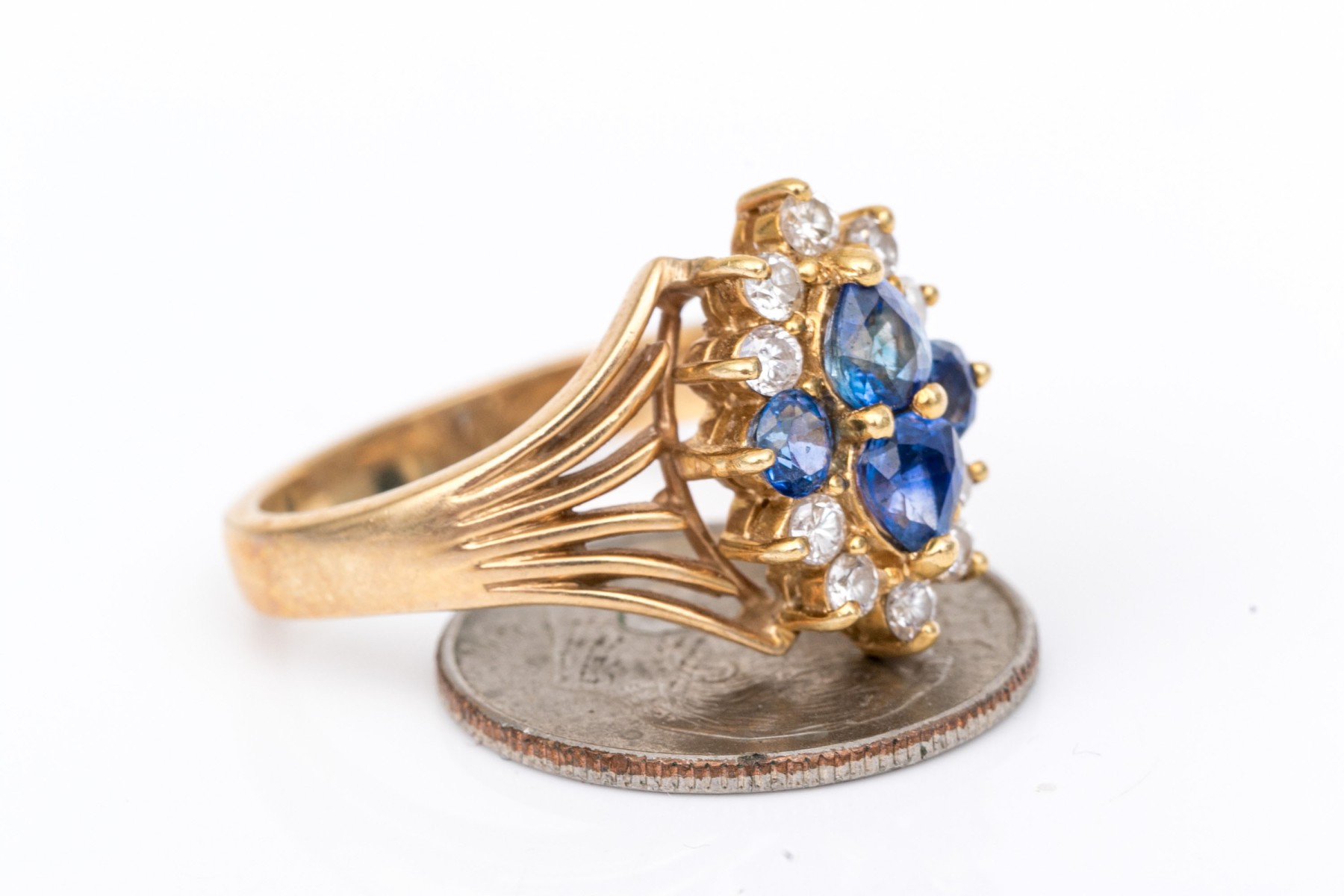 14k yellow gold vintage sapphire and diamond cluster ring, app. 0.20 TCW, size 7