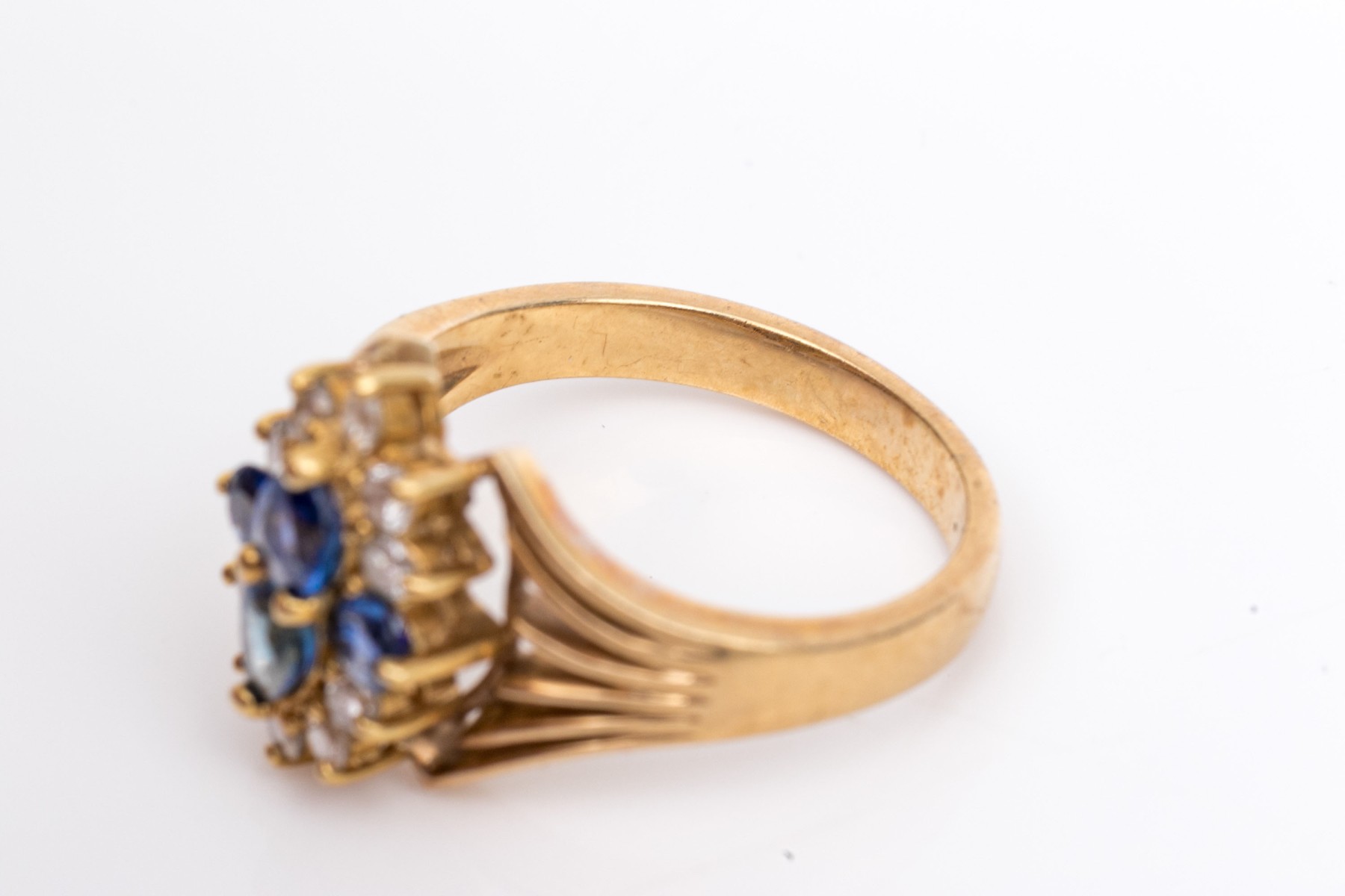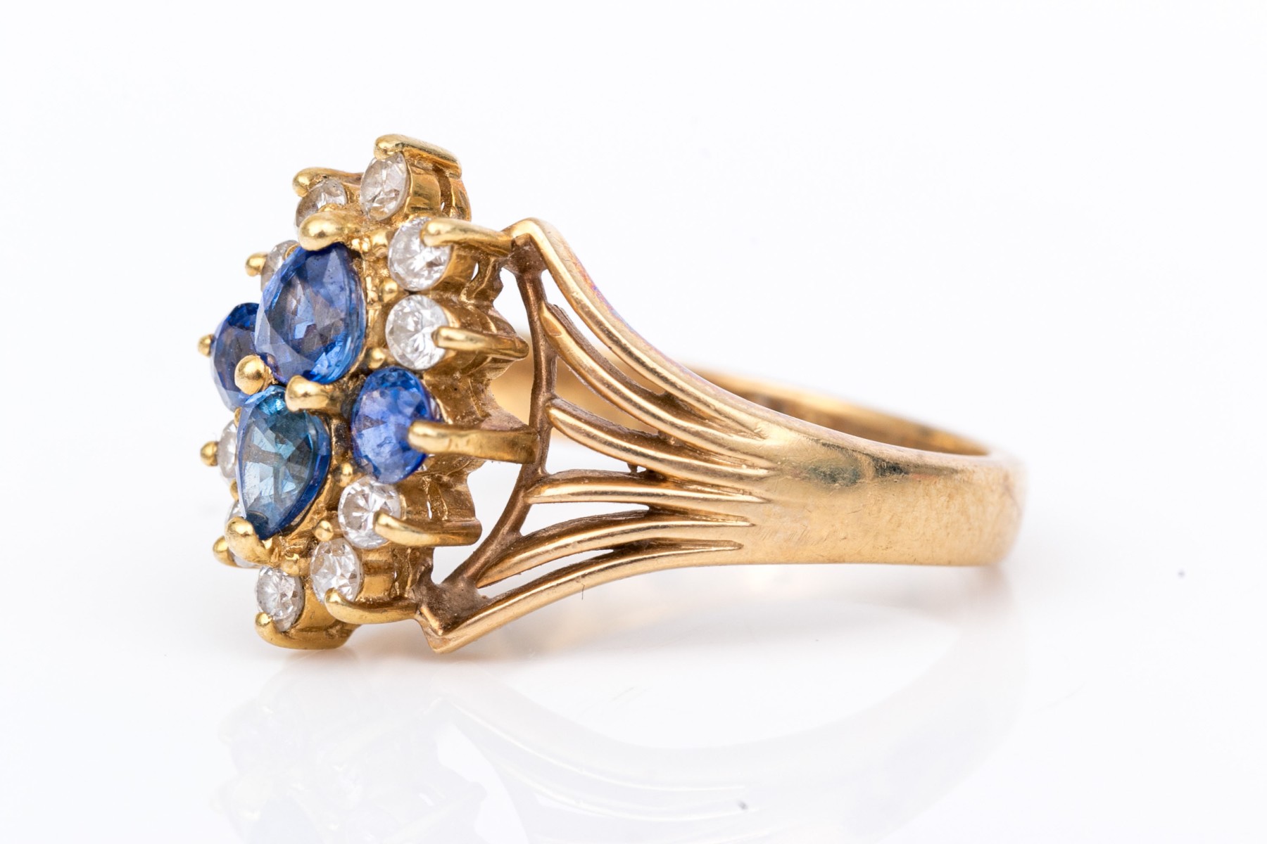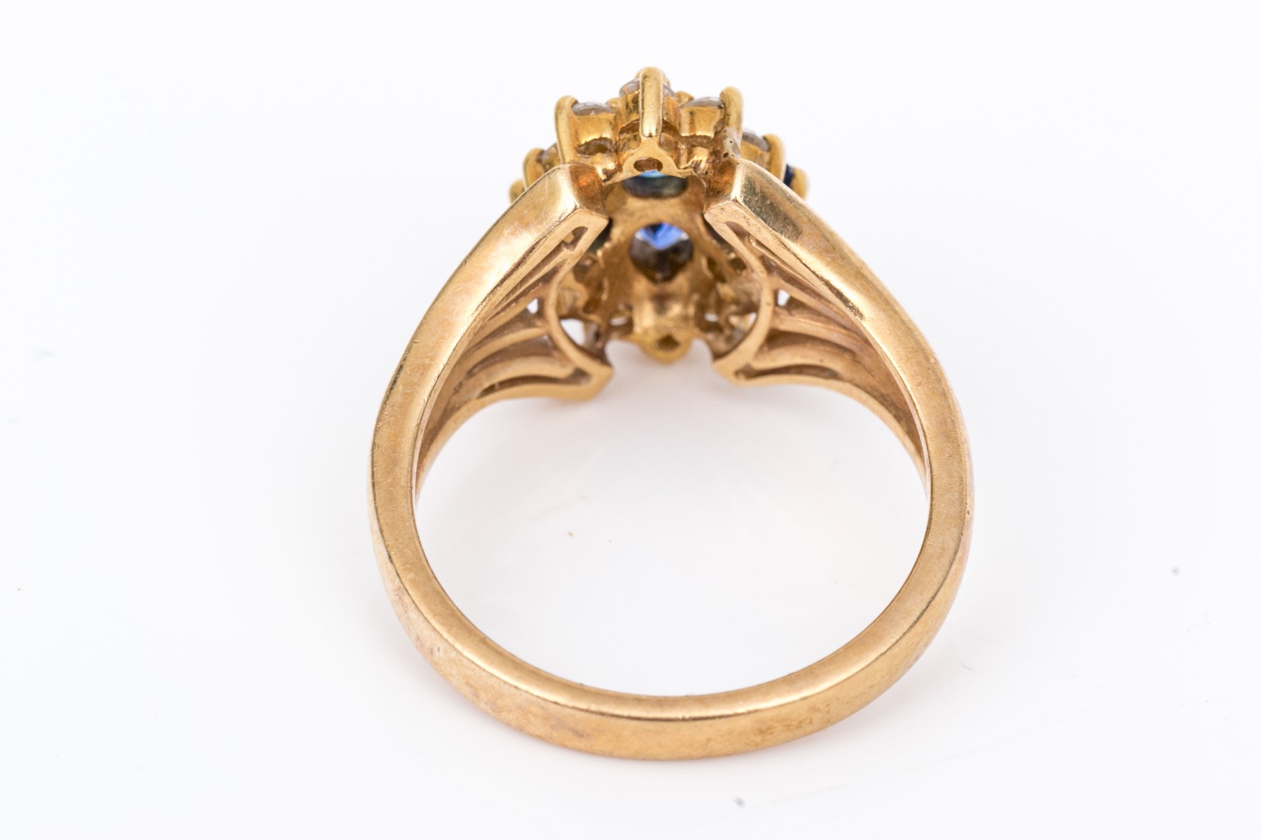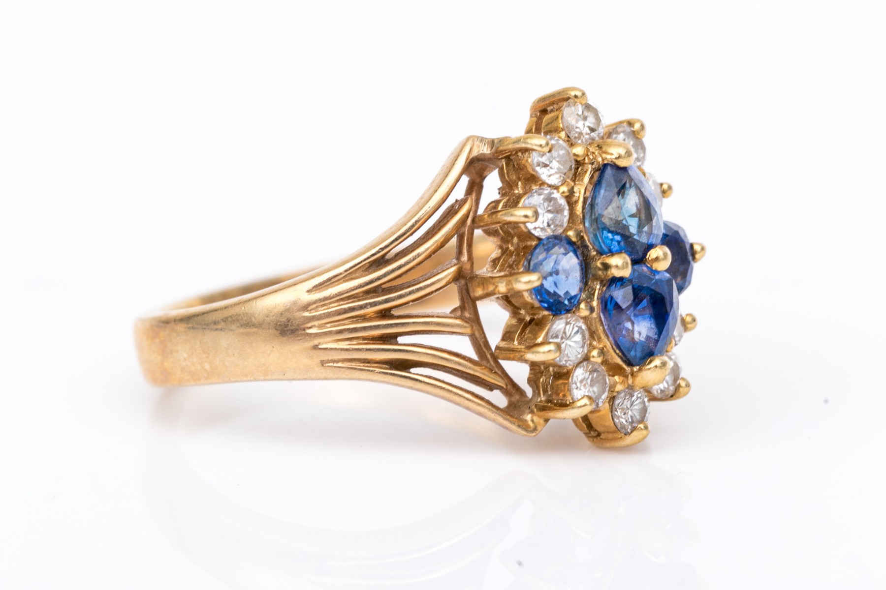 14k yellow gold vintage sapphire and diamond cluster ring, app. 0.20 TCW, size 7