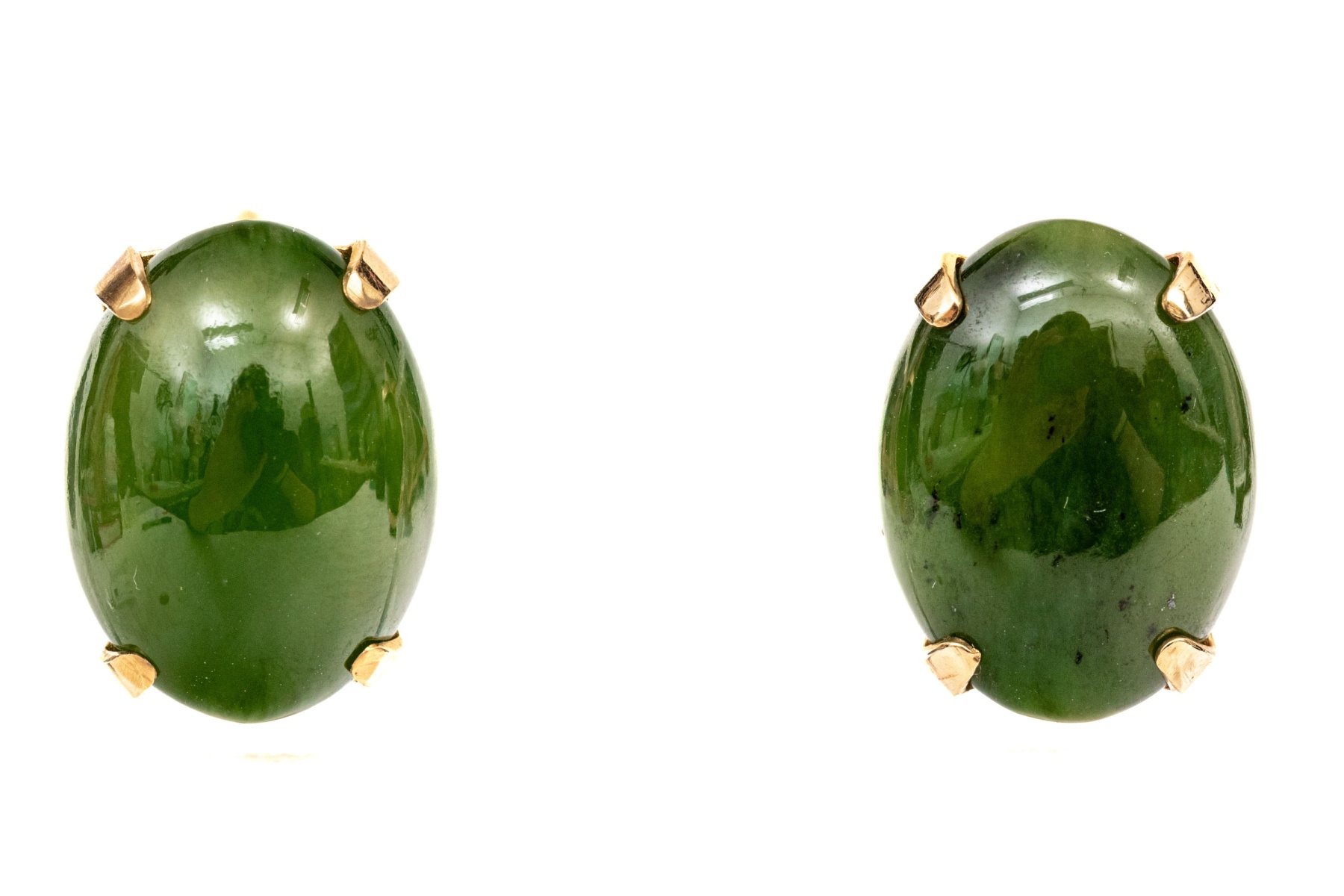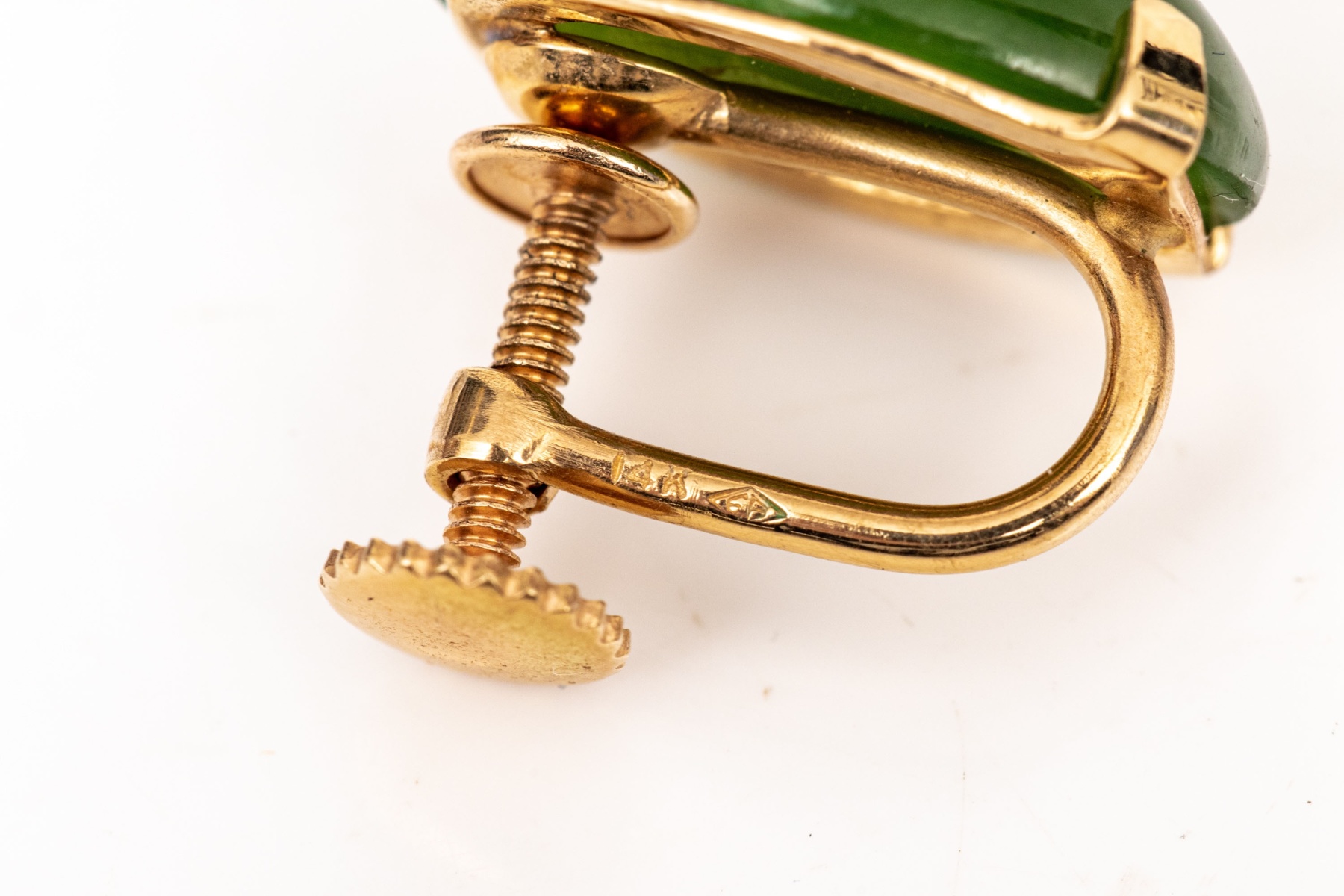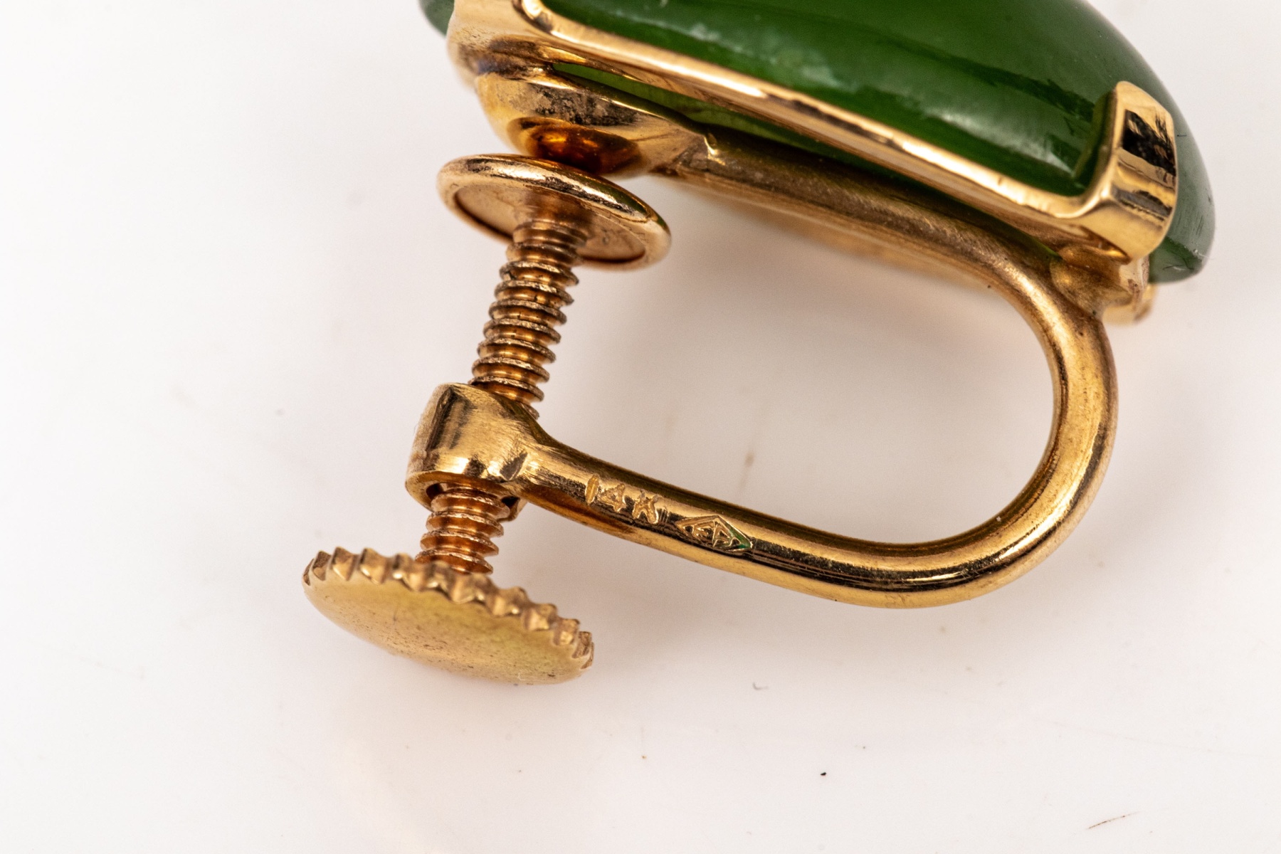 14k yellow gold vintage simple oval green nephrite jade screwback style earrings, no posts