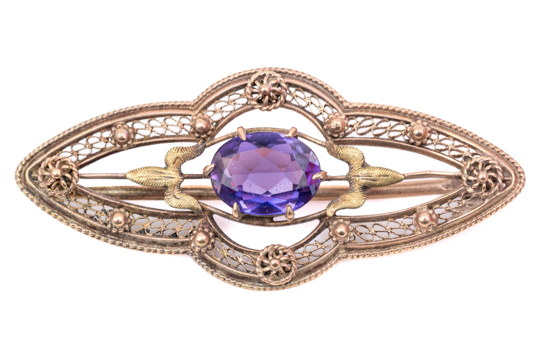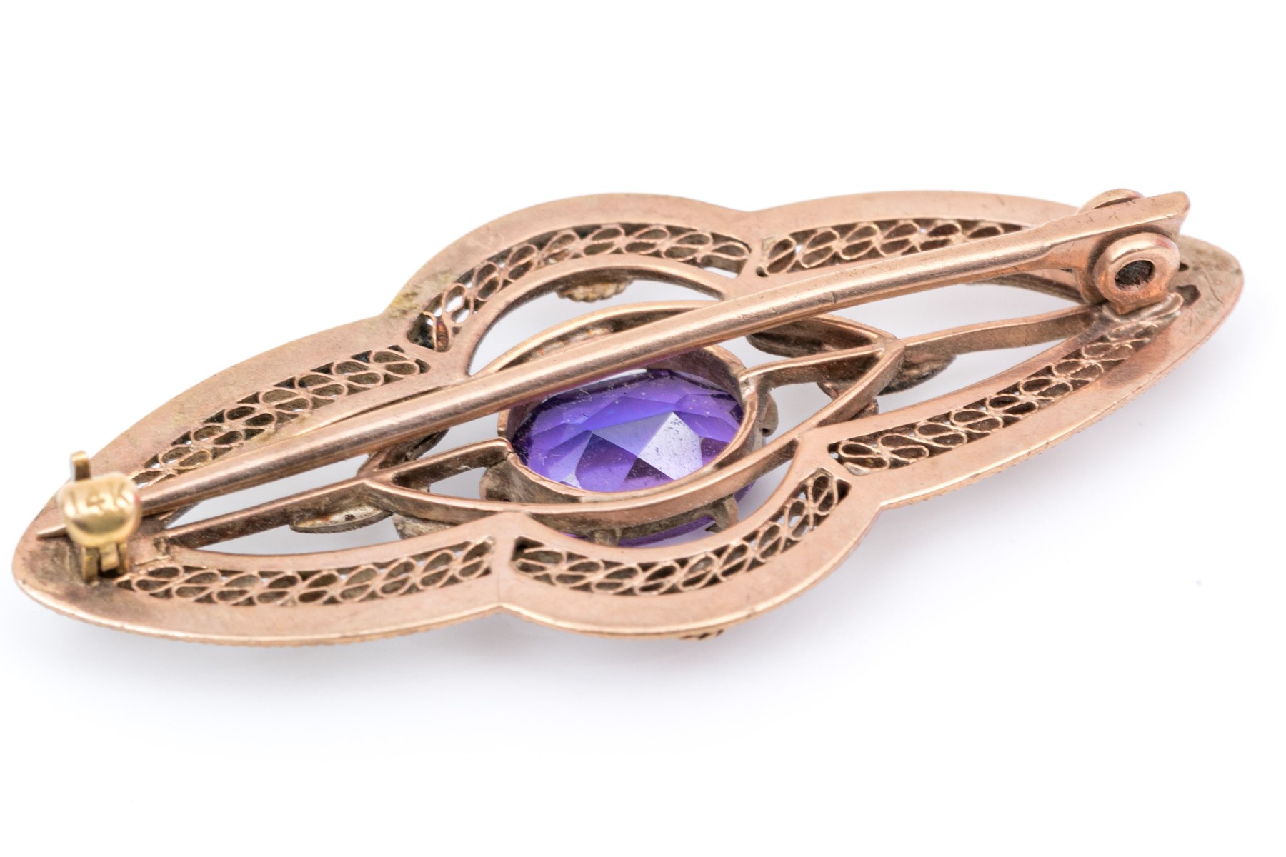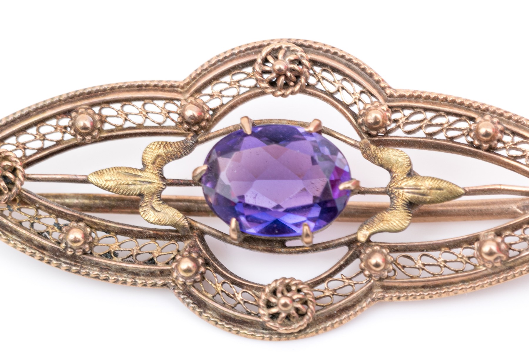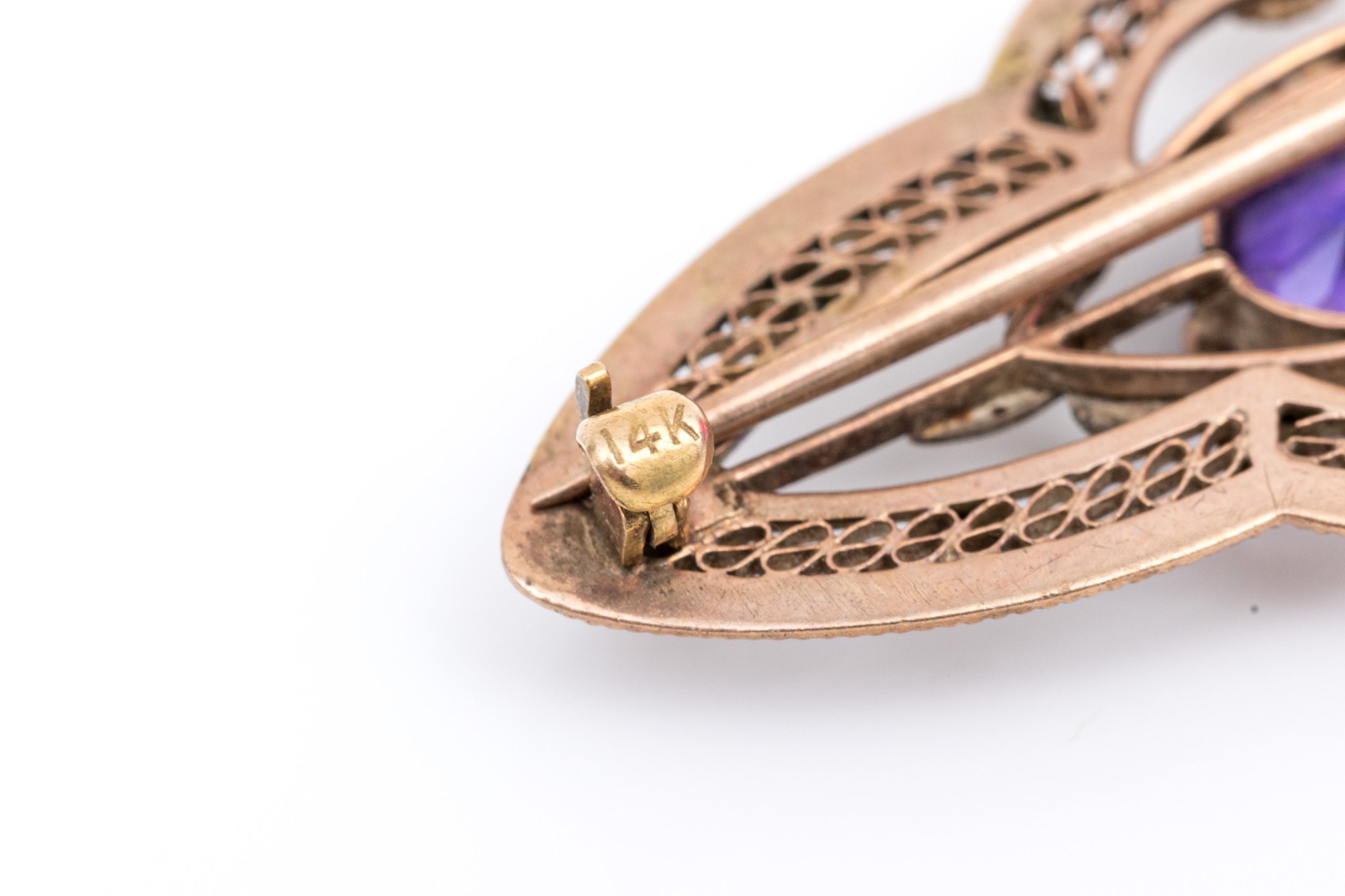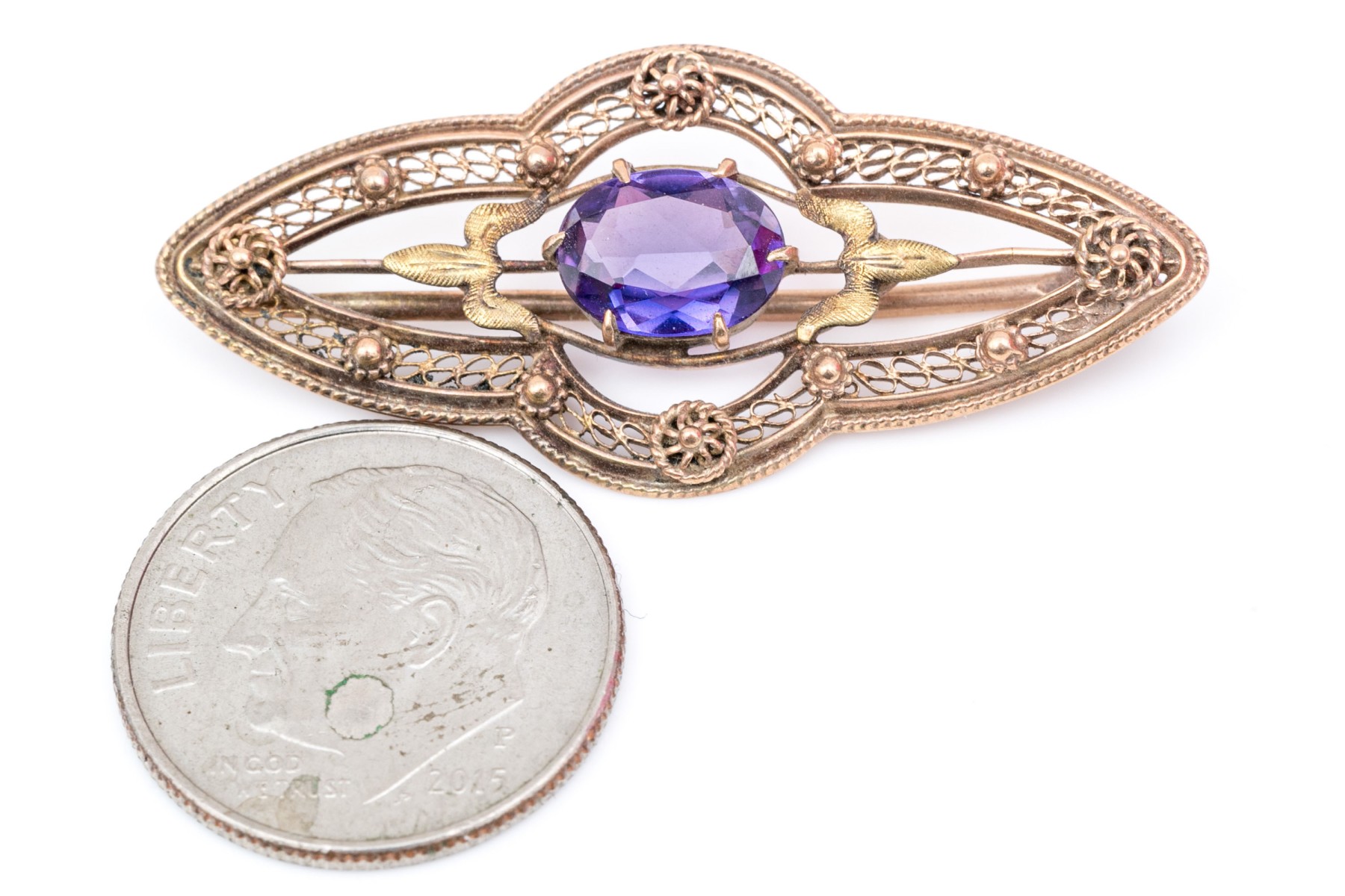 14k yellow gold vintage synthetic purple sapphire filigree scatter pin
