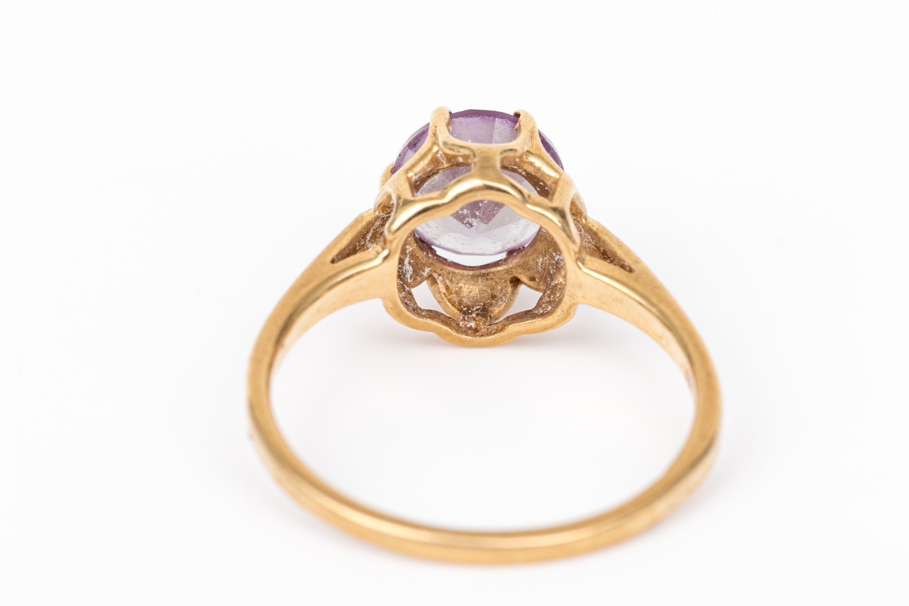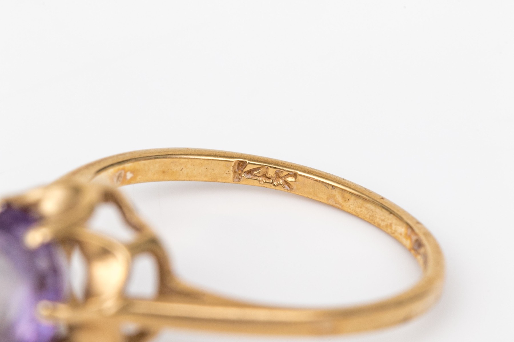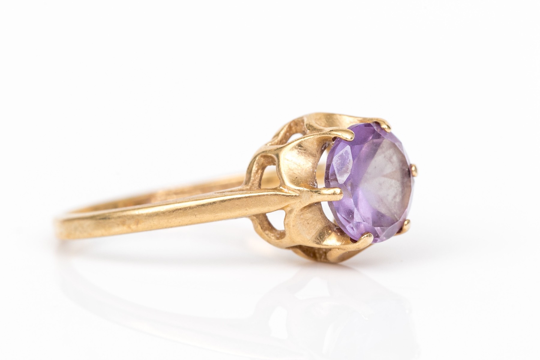 14k yellow gold vintage synthetic purple sapphire solitaire ring, size 6.25