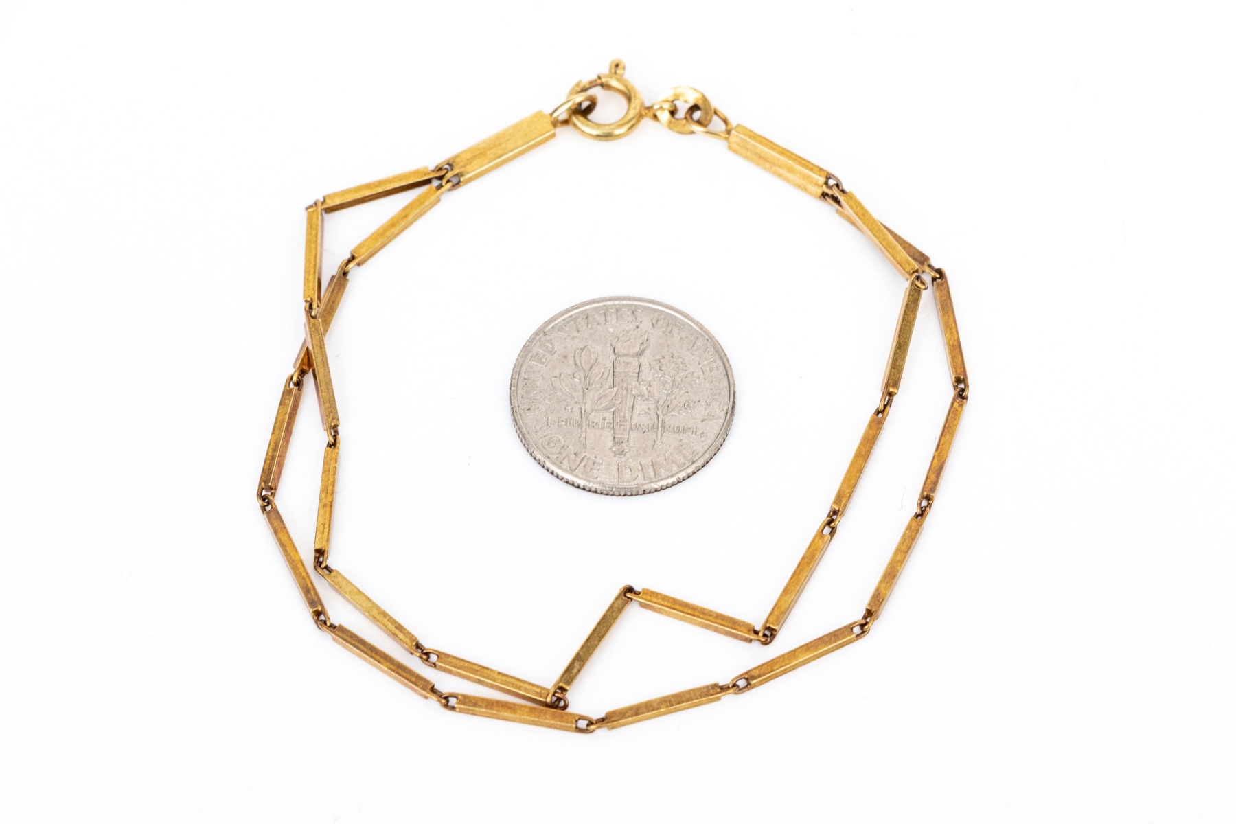 14k yellow gold vintage two row elongated watch style link bracelet, finished with a spring ring style clasp
