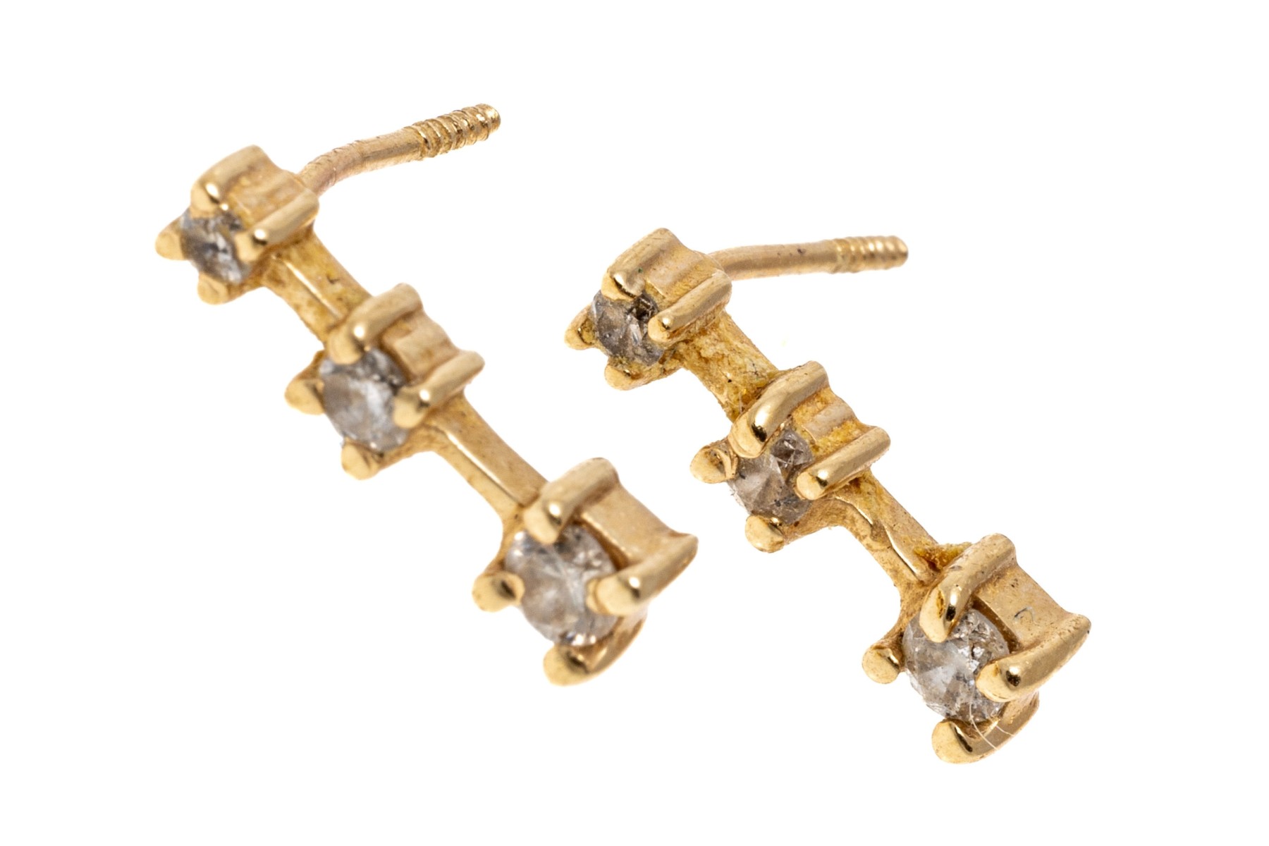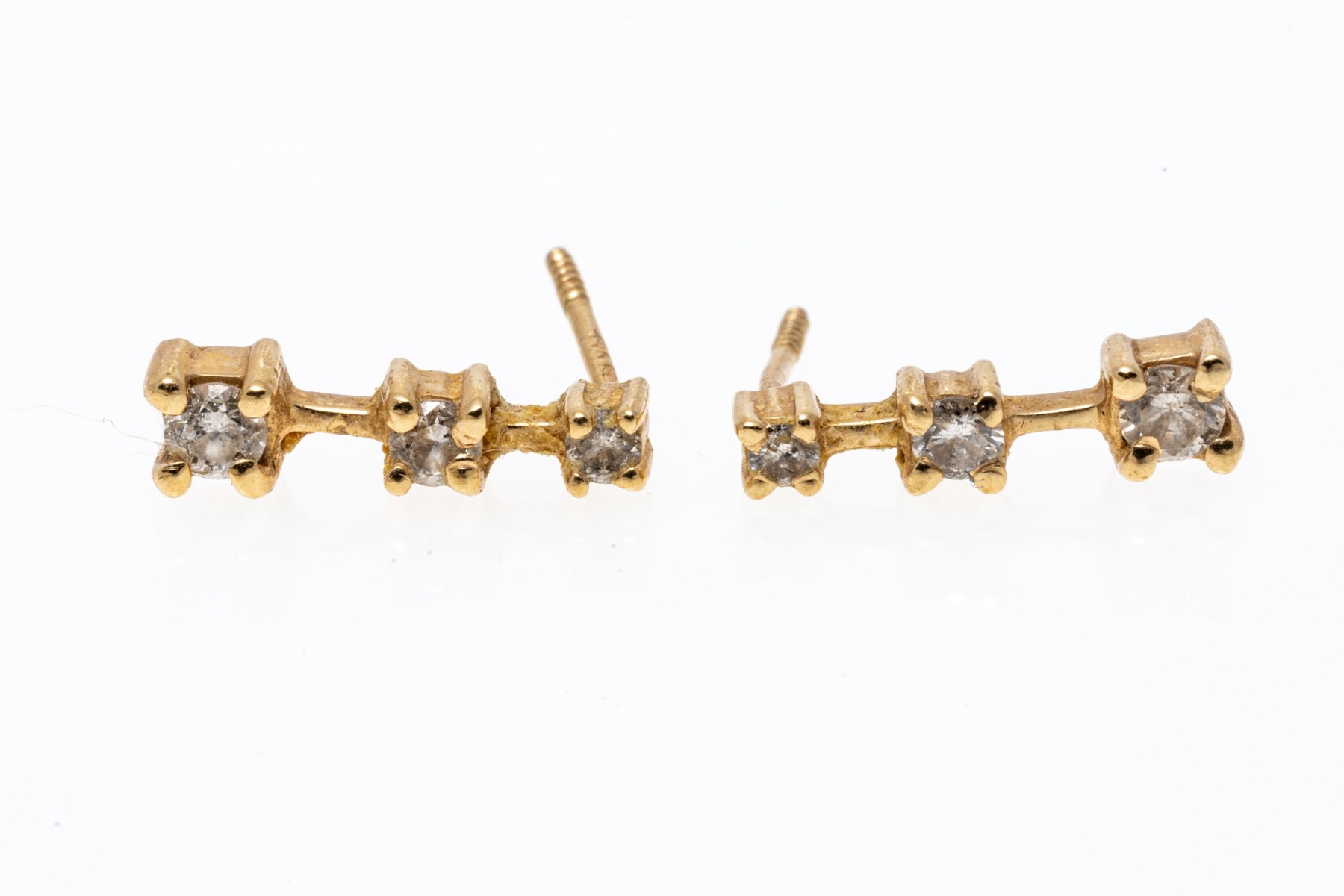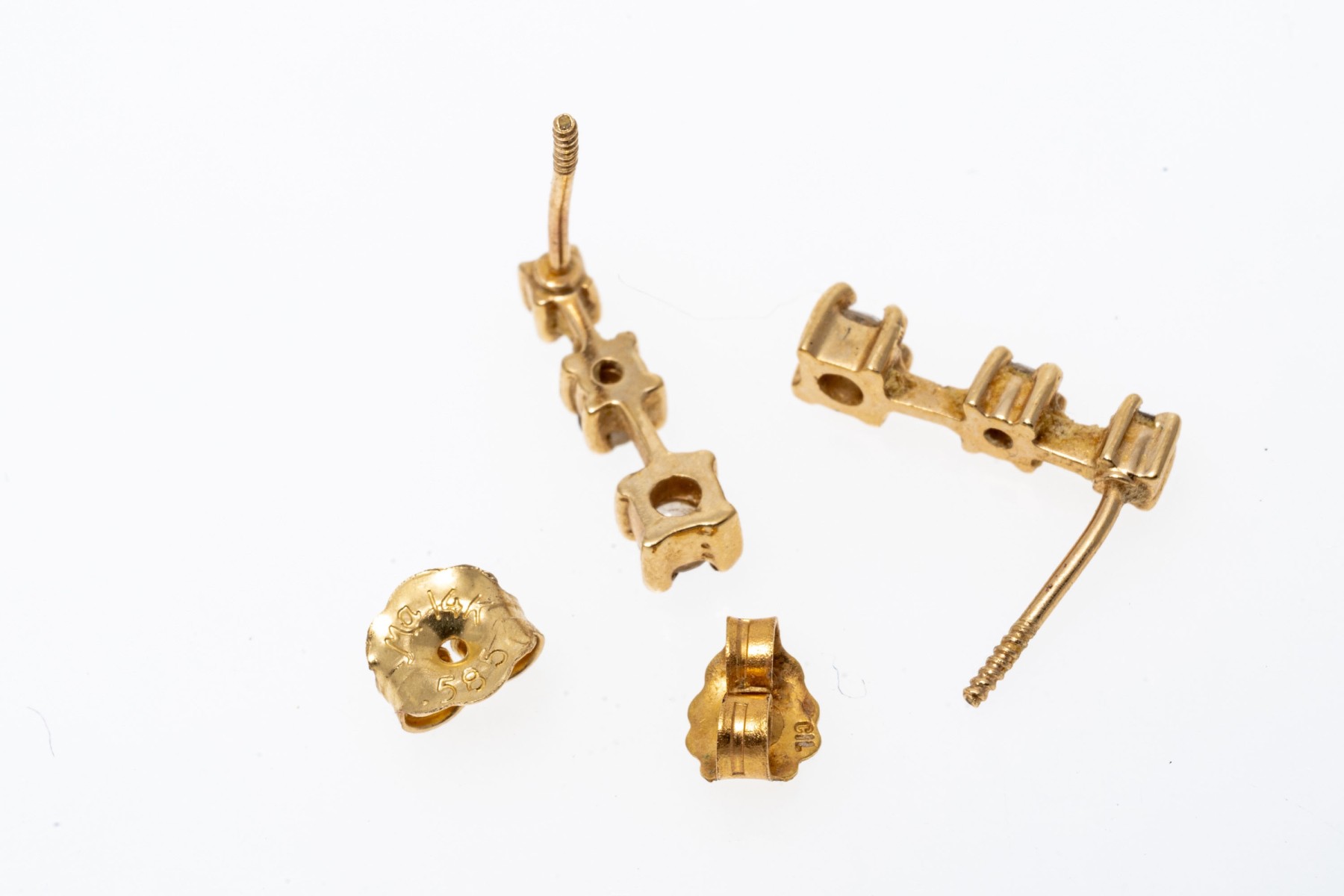 14k yellow gold white sapphire stacked pendant earrings, finished with posts and clutch style backs