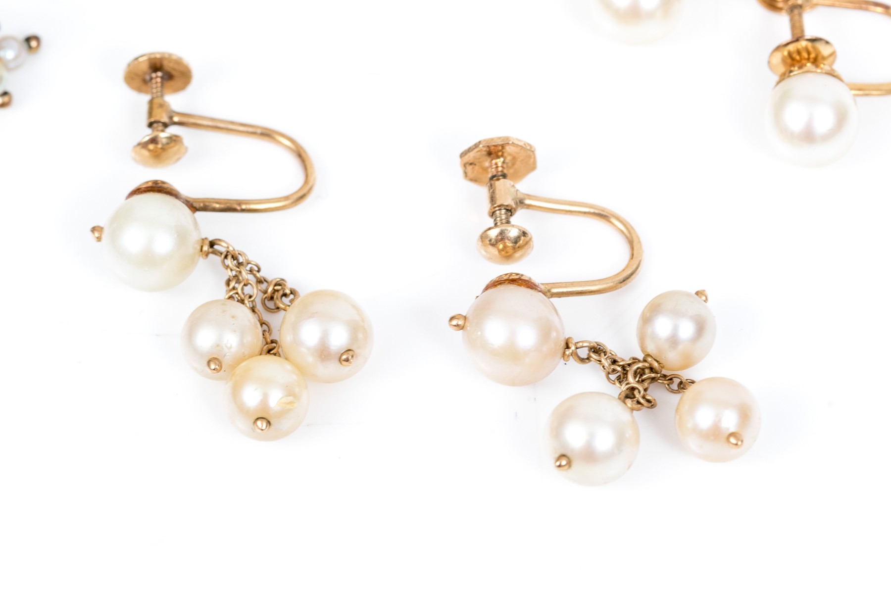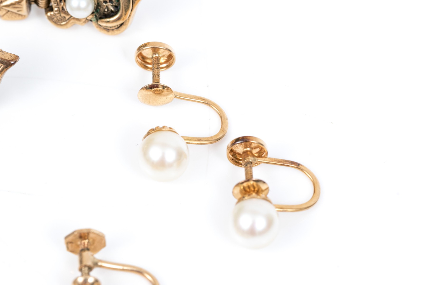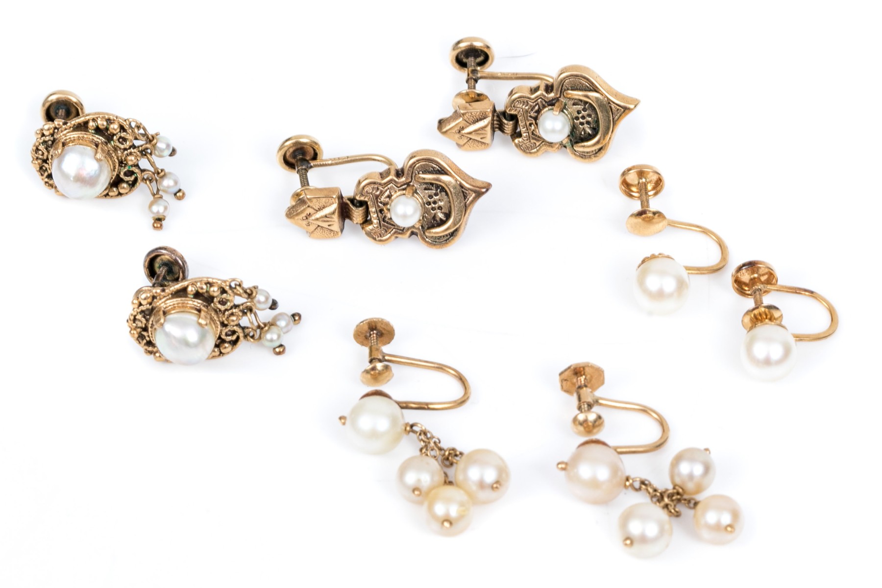 14k yellow vintage lot of cultured pearl and screw back earrings, assorted styles