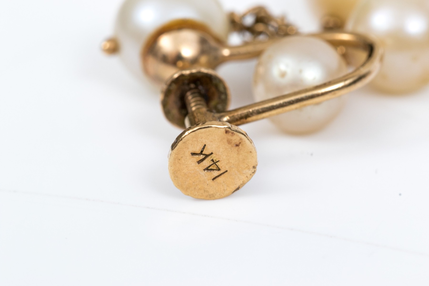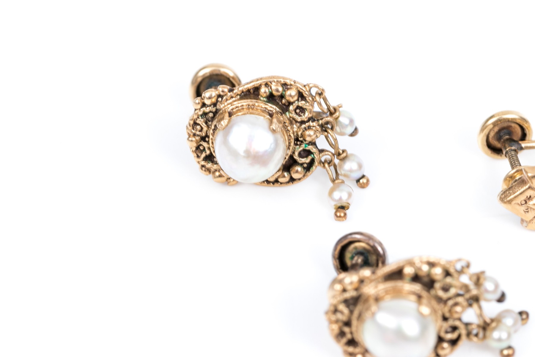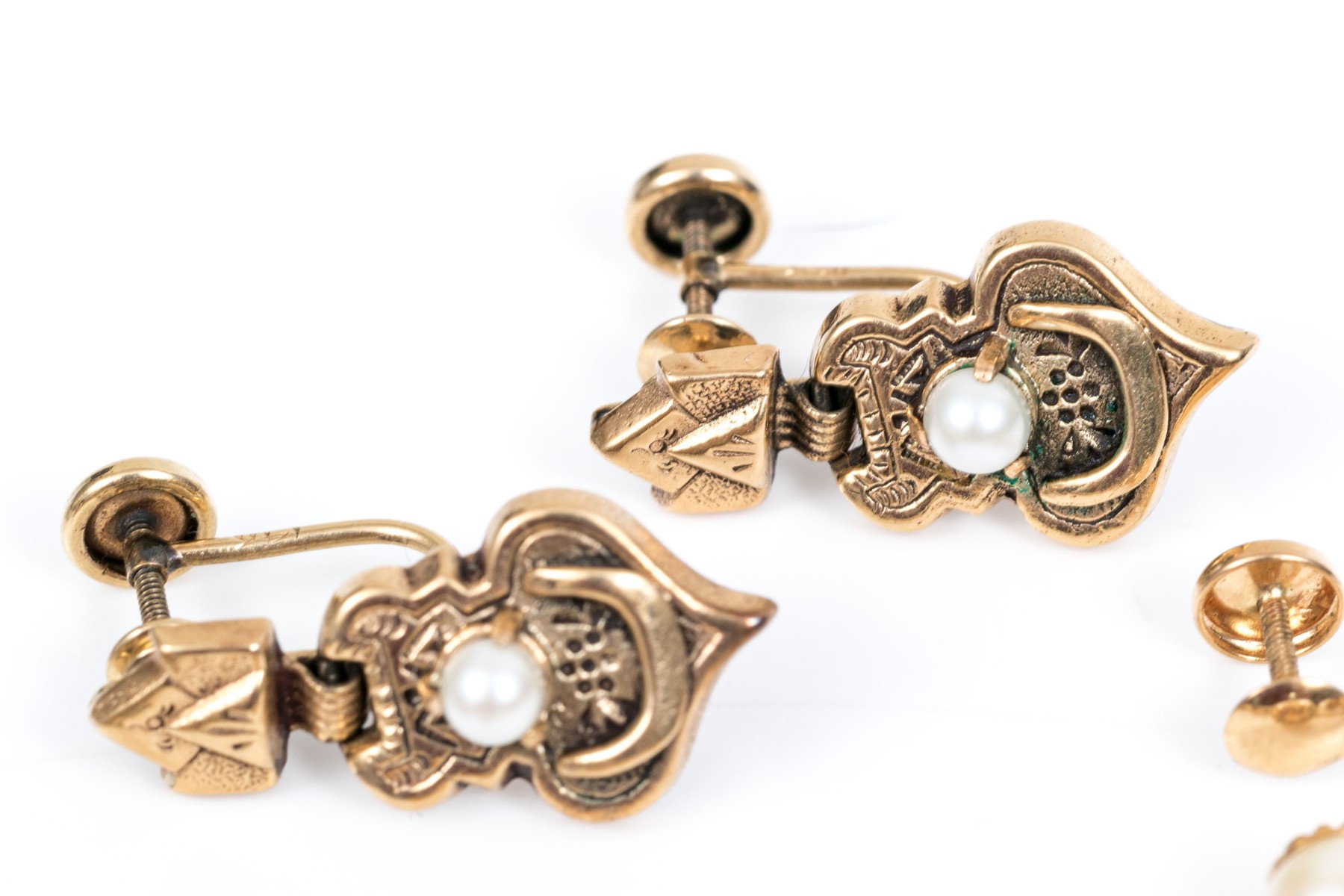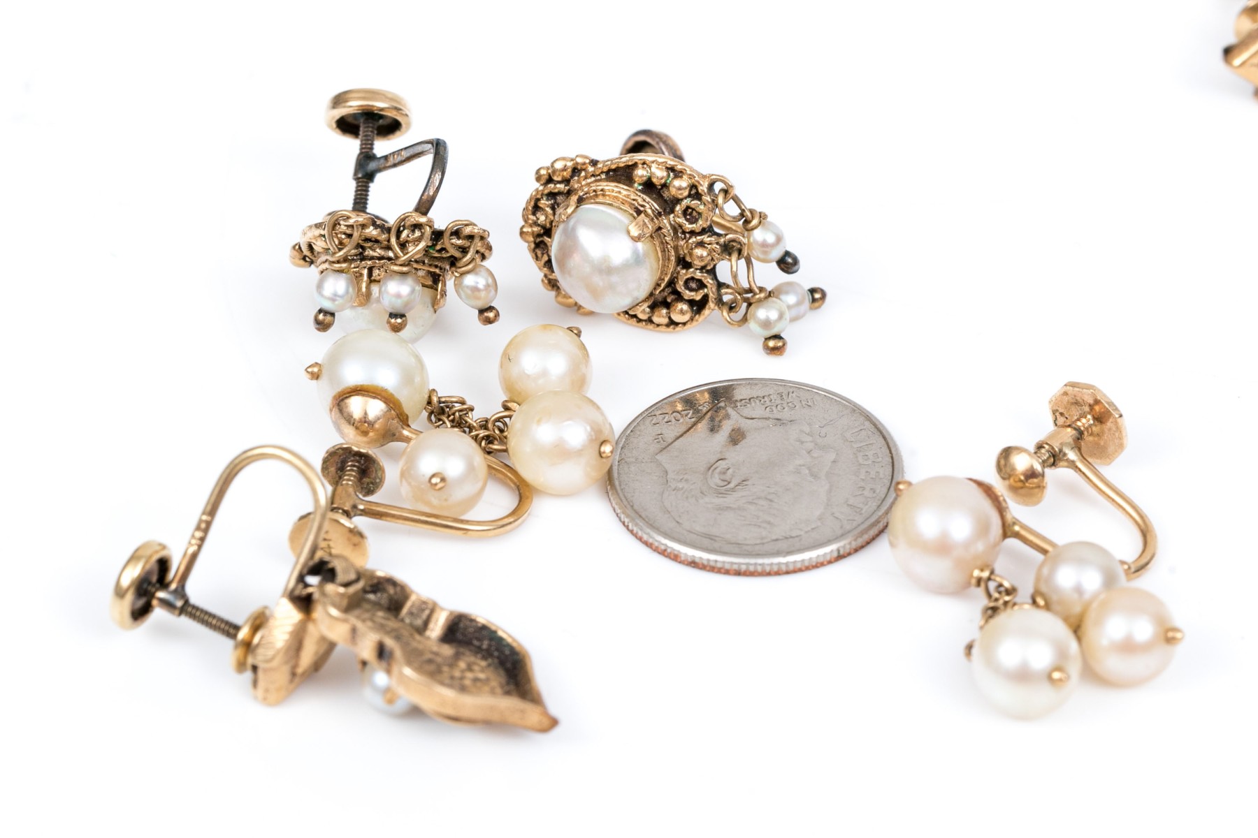 14k yellow vintage lot of cultured pearl and screw back earrings, assorted styles