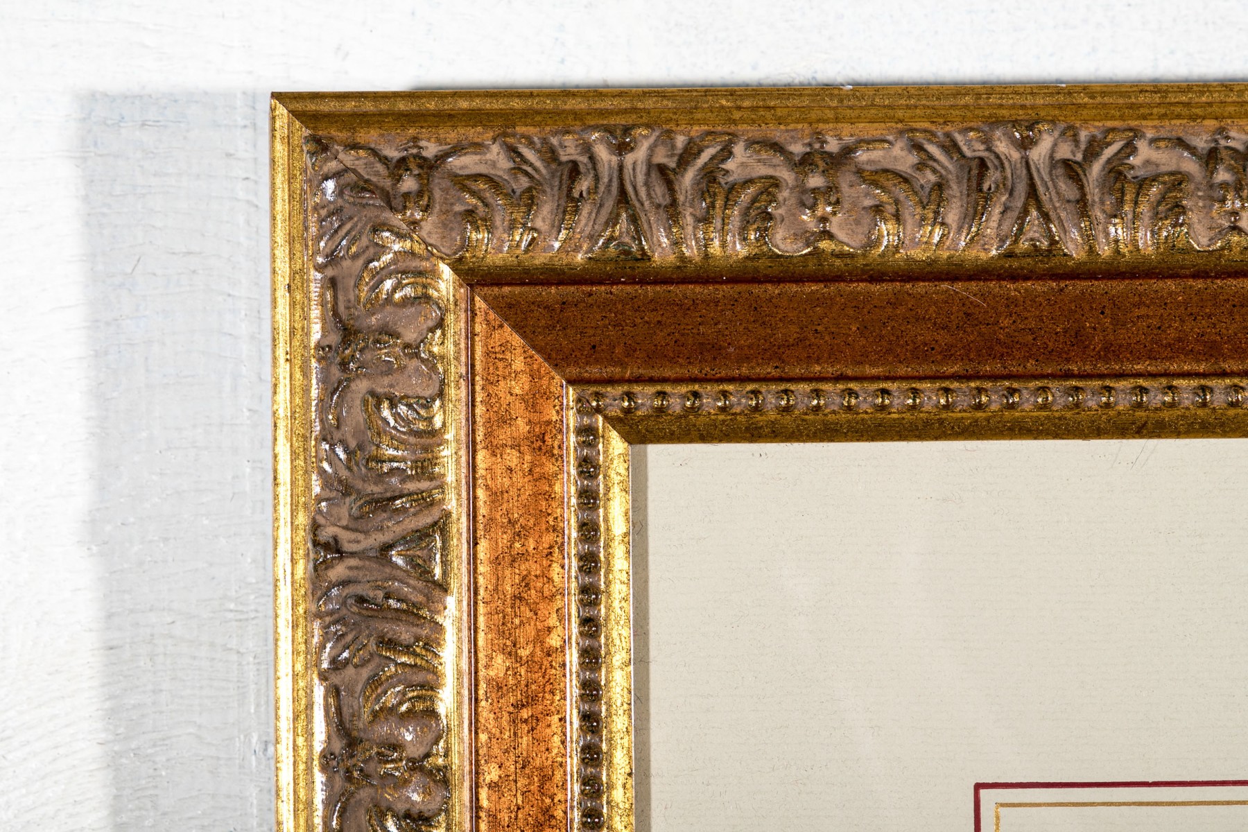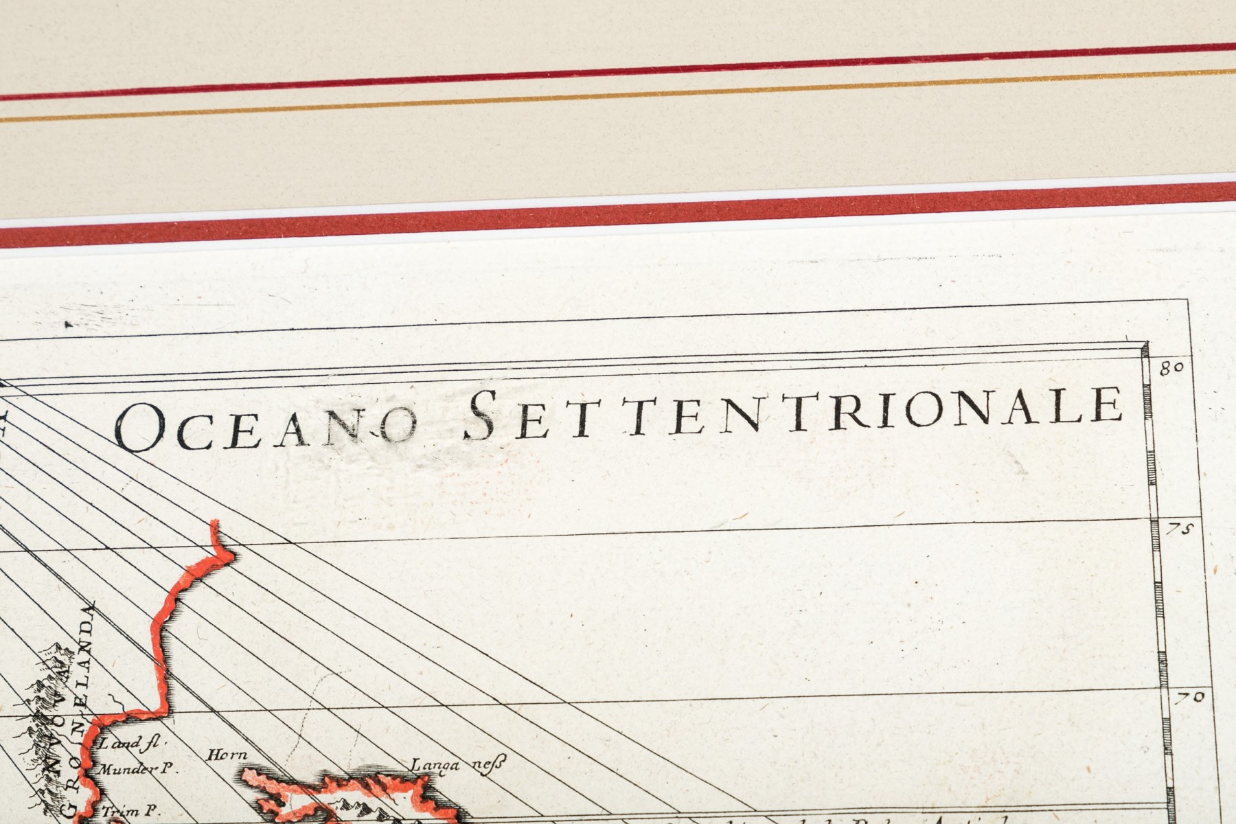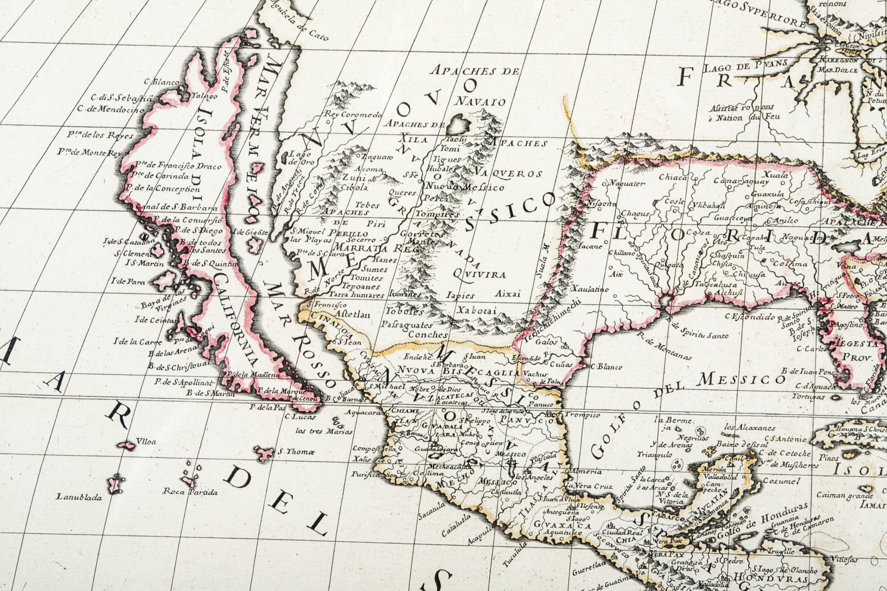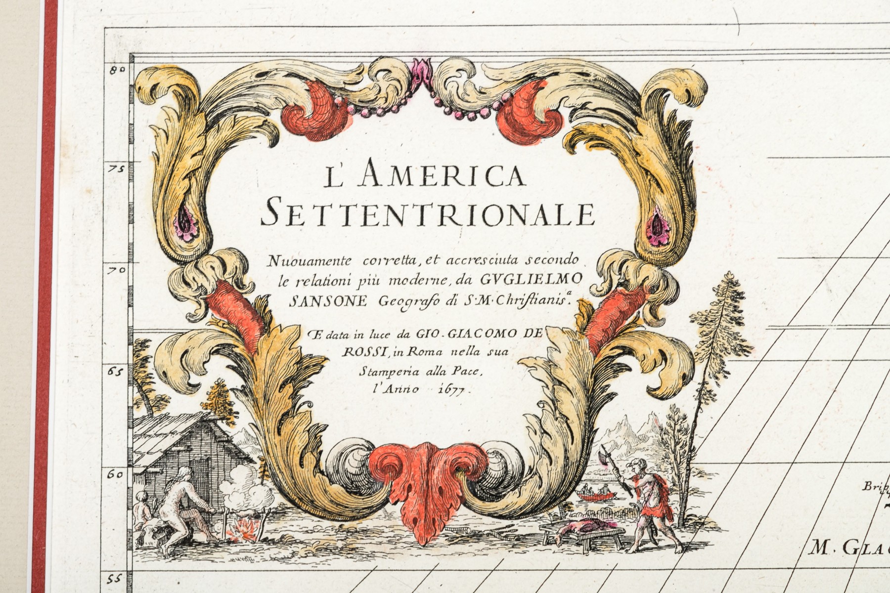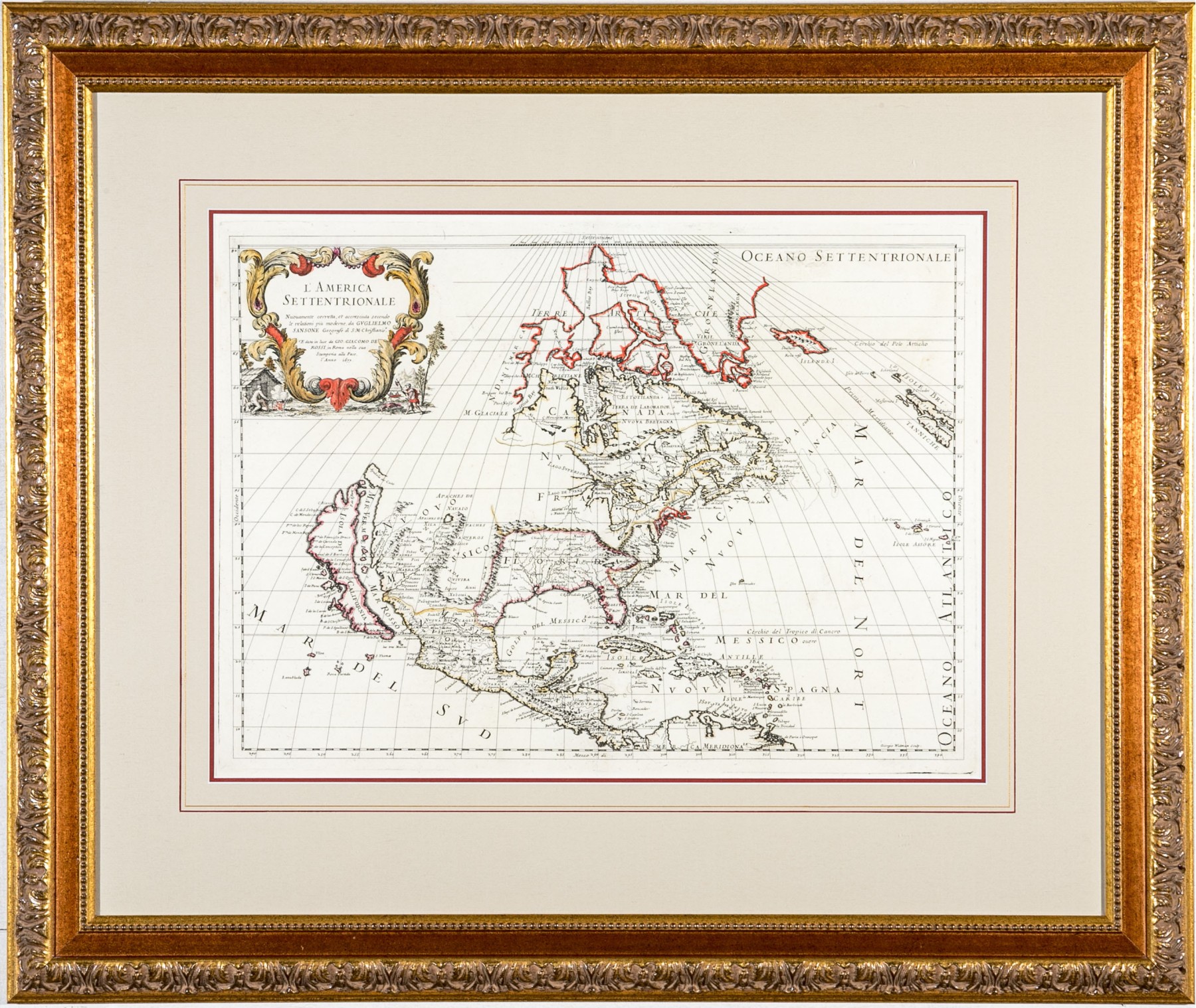 Certificate of Authenticity on verso. The map is the Italian version of Nicolas Sanson's map of North America (France, 1600-1667). With a fold down the center as expected. Beautifully matted in a wood and gilt frame with an acanthus leaf surround with glass.