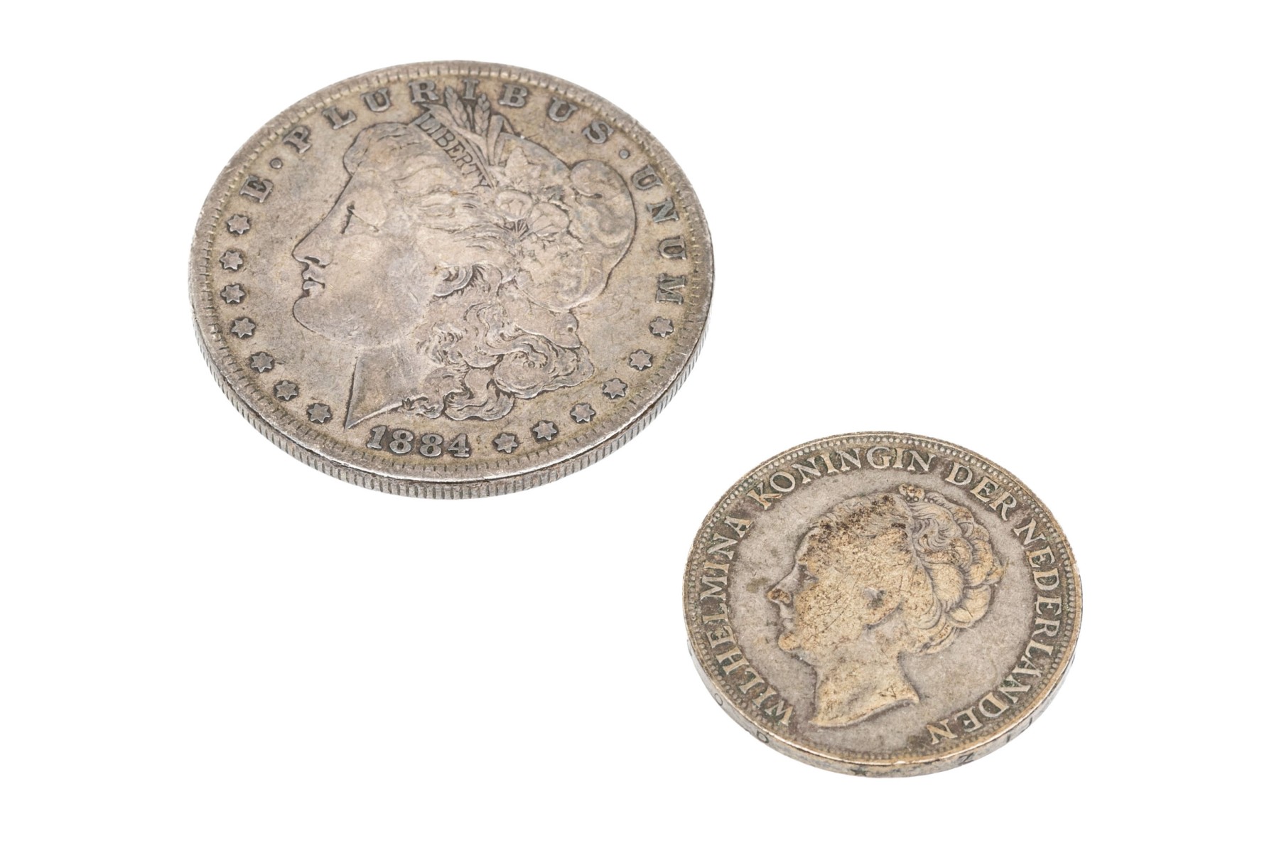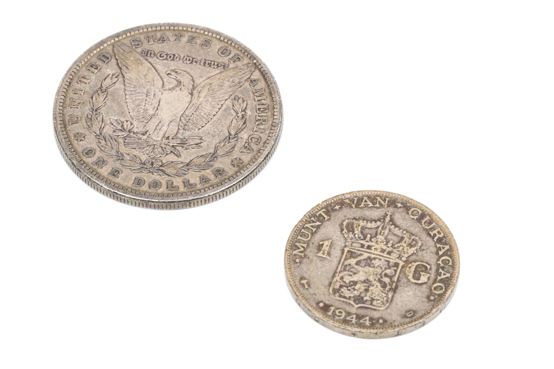 1884 Morgan Silver Dollar. 1944 1 Gulden Netherland coin.