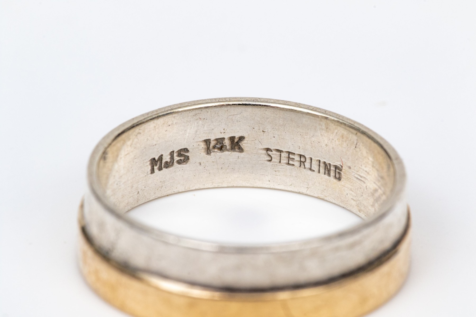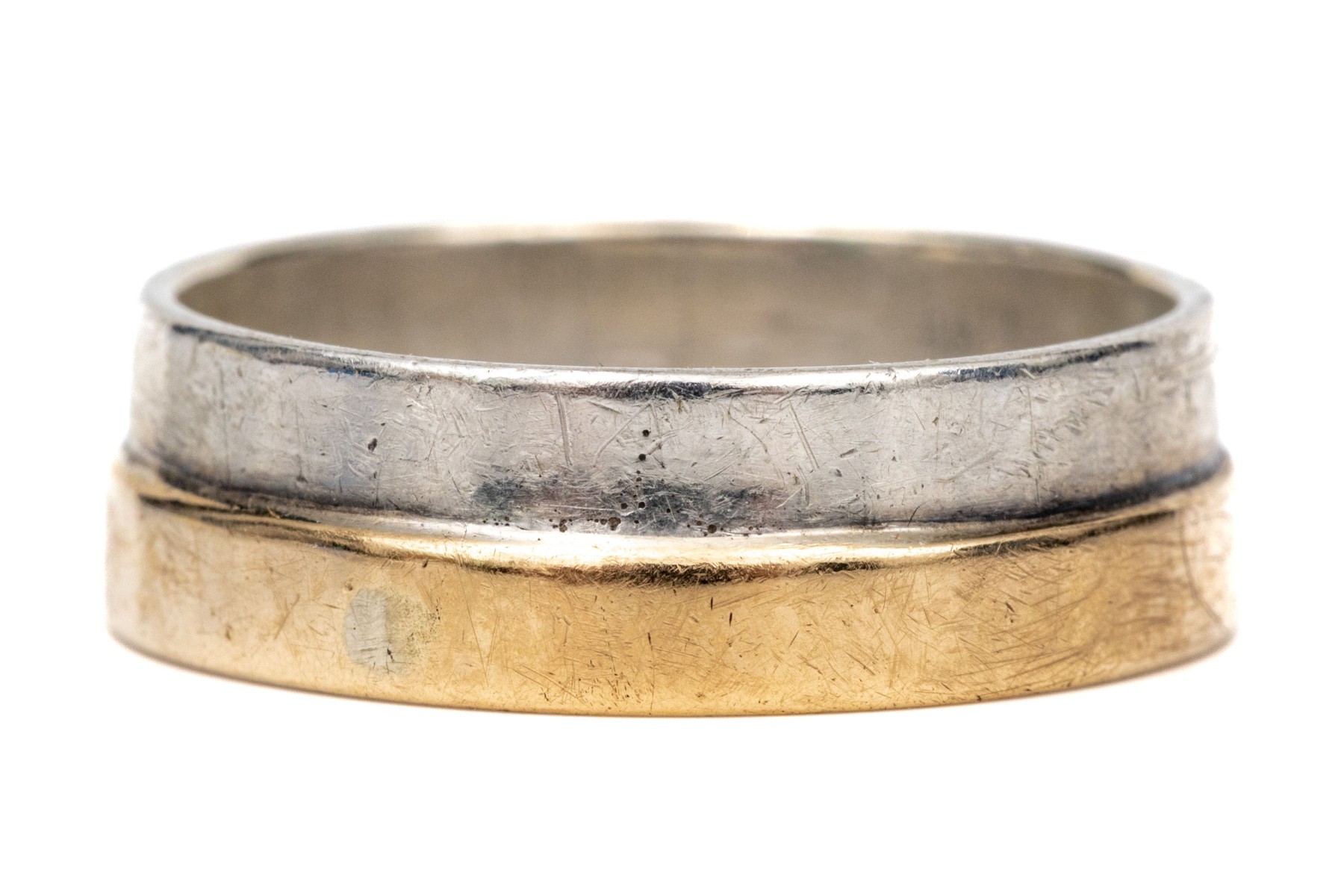 18k and sterling silver contemporary ridged 6mm band style ring, size 7.5