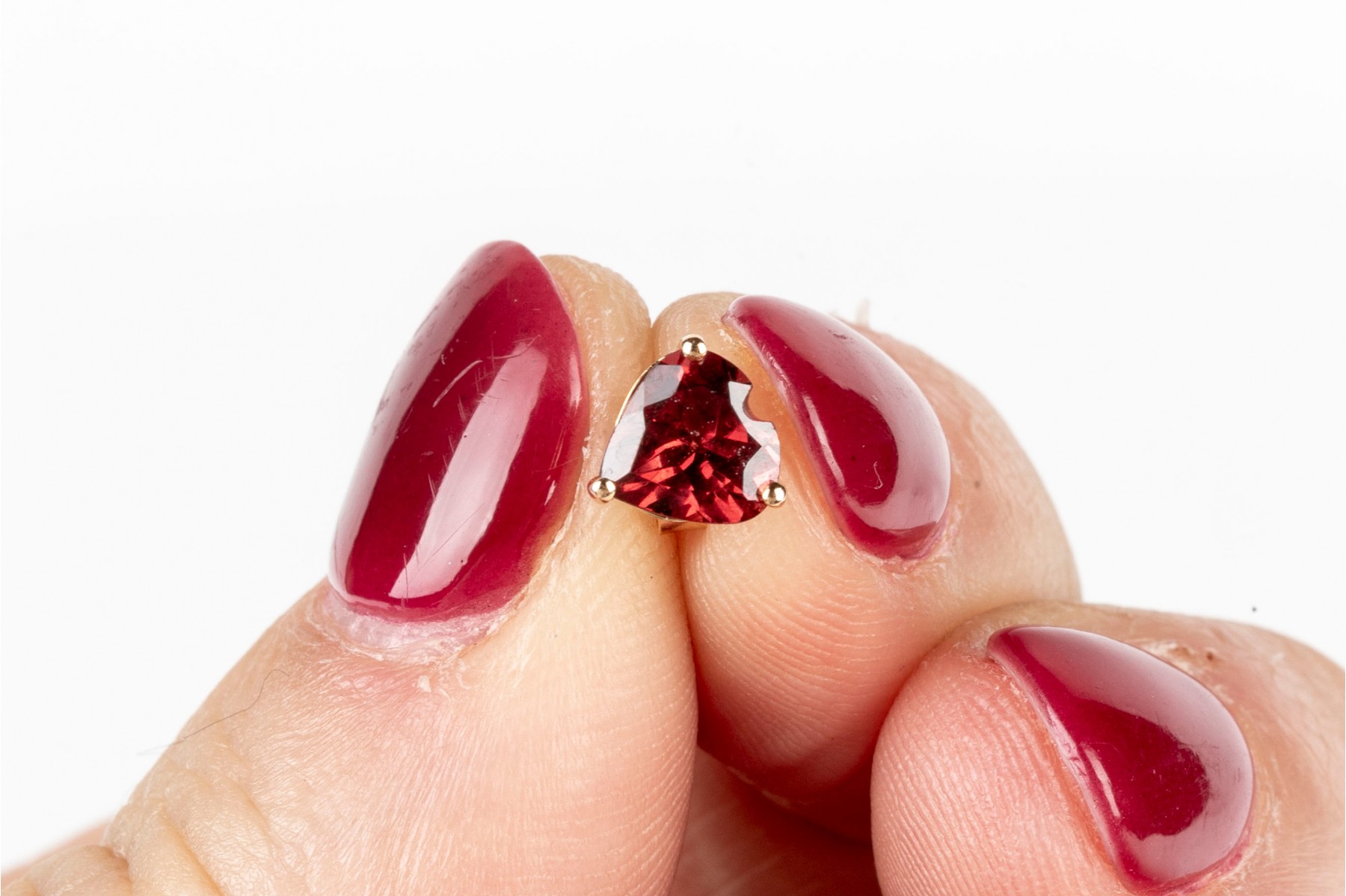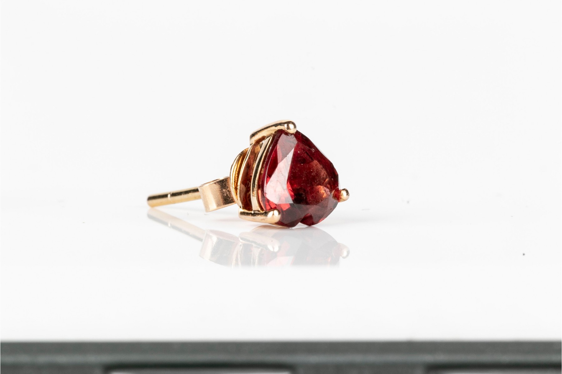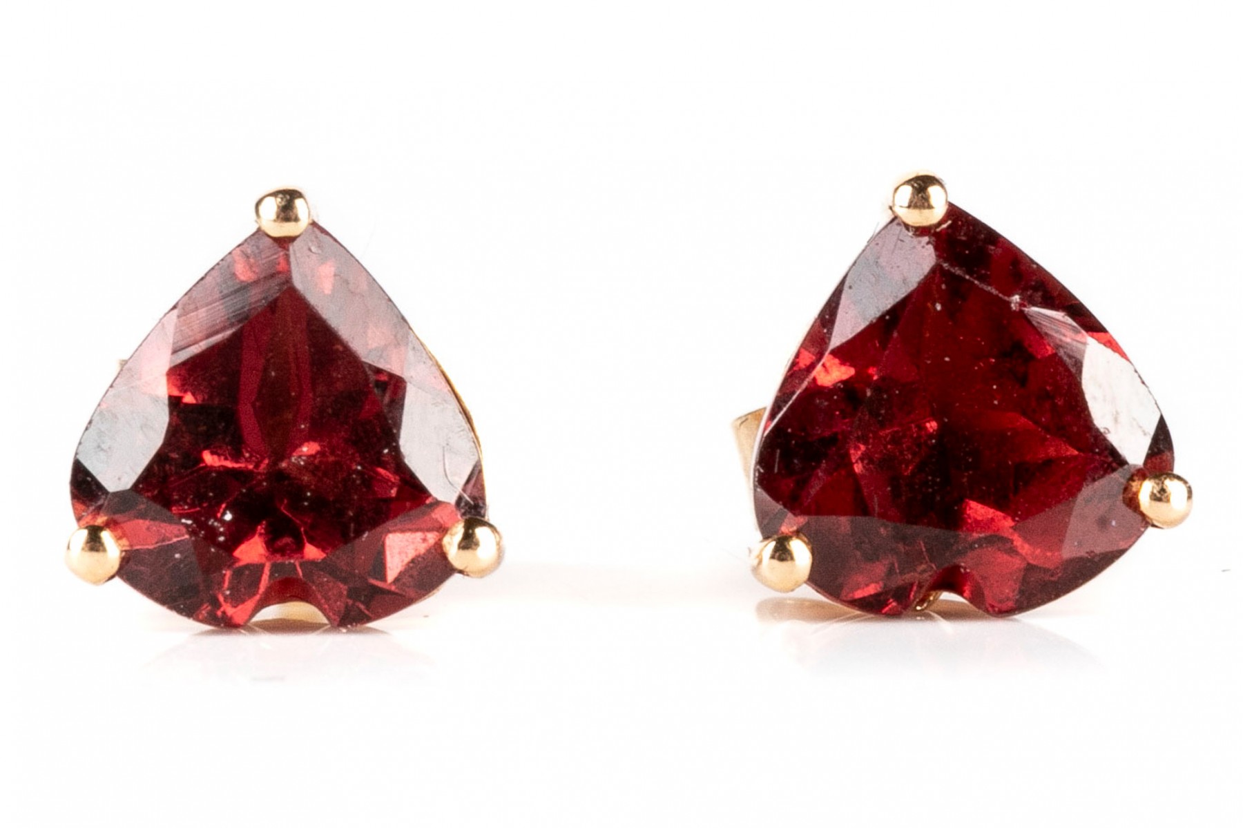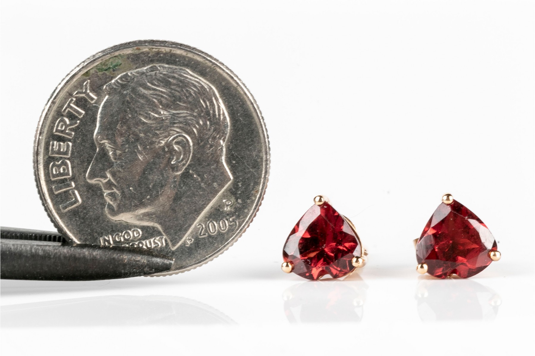 18k rose gold pretty heart shaped garnet stud earrings, approximately 1.24 TCW, prong set and finished with post and clutch style backs