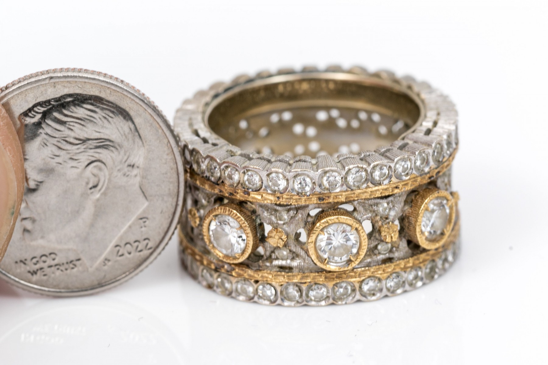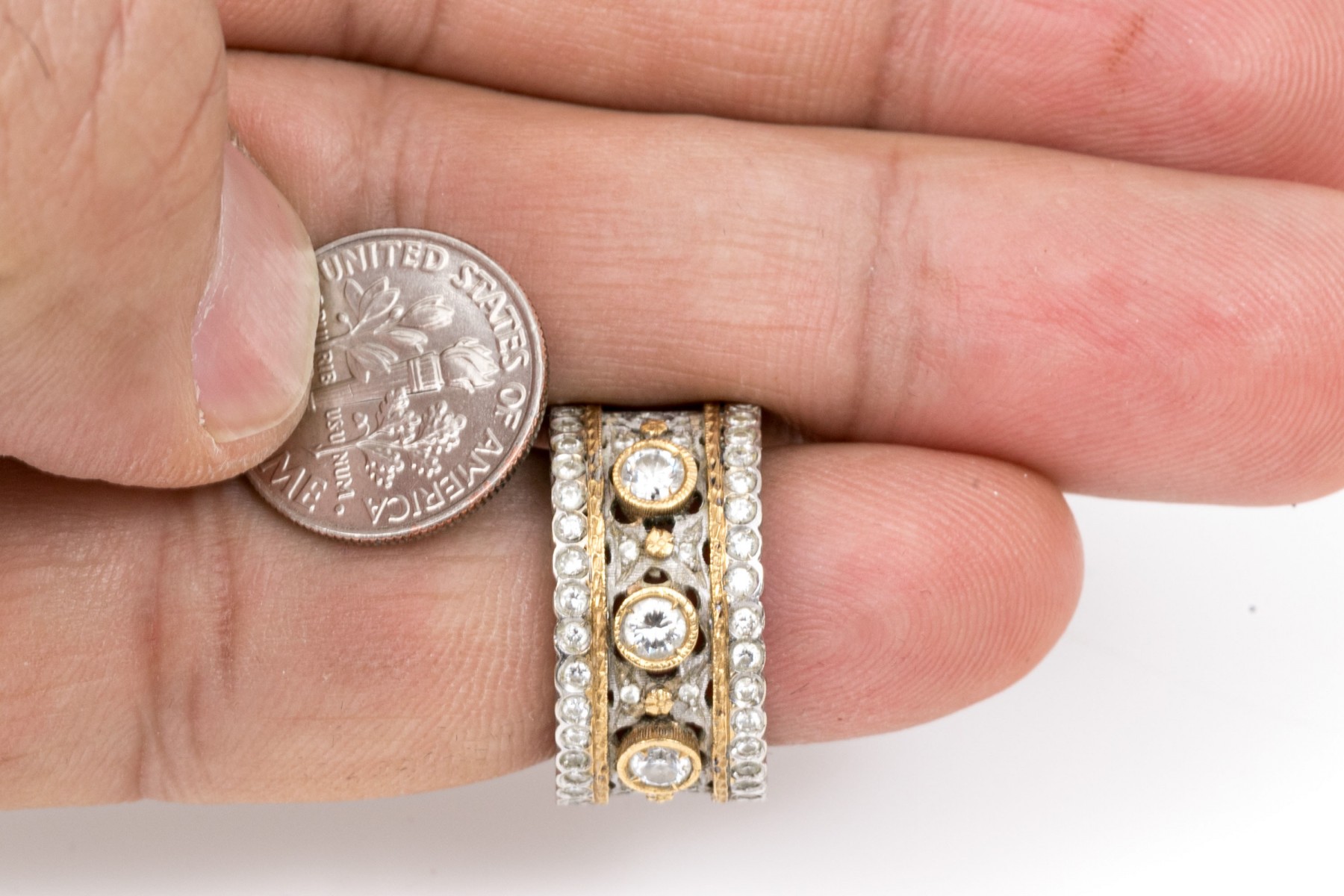 18K White Gold And Diamond Wide Elegant Band Ring, Size 5.25 #293317. Black Rock Galleries provides high end estate liquidation services through online estate auctions and a 50,000 sq ft designer showroom. estate liquidator, estate sale, online auction, antiques, fine art, liquidation, clean outs, auction, consignment, interior design, fine jewelry, collectibles, appraisals, estate appraisals, estate services, decor, furniture, furniture consignment, antique center, consignment shop. We offer appraisal services and specialize in fine art, jewelry, antiques and decorative arts. Sell with us. Black Rock Galleries is the tri-state's largest estate liquidator serving New England and the greater New York City area. We are the trusted source for expert appraisals, auction services, estate sales, and consignments. Black Rock Galleries is the east coast's largest and most trusted estate liquidator, with locations in Connecticut, greater Boston, MA and Raleigh, NC, Fairfield, Southport, Apex, TX. We are the best source for expert appraisals, auction services, estate sales and consignments. We have served thousands of families and estates with compassion, professionalism and expertise. BRG works with attorneys, executors, realtors and families to bring the greatest return on personal and estate property in the current market. Our unique combination of services make us the easy choice to get the job done in a timely and stress-free manner. We are with you from the initial consultation to the final clean out. Our house-built online auction software platform offers clients a dynamic approach to liquidating their personal property. This venue is most successful in bringing the best return with the least amount of disruption for our clients. See our services page for a complete description of this offering. 18K White Gold And Diamond Wide Elegant Band Ring, Size 5.25 #293317