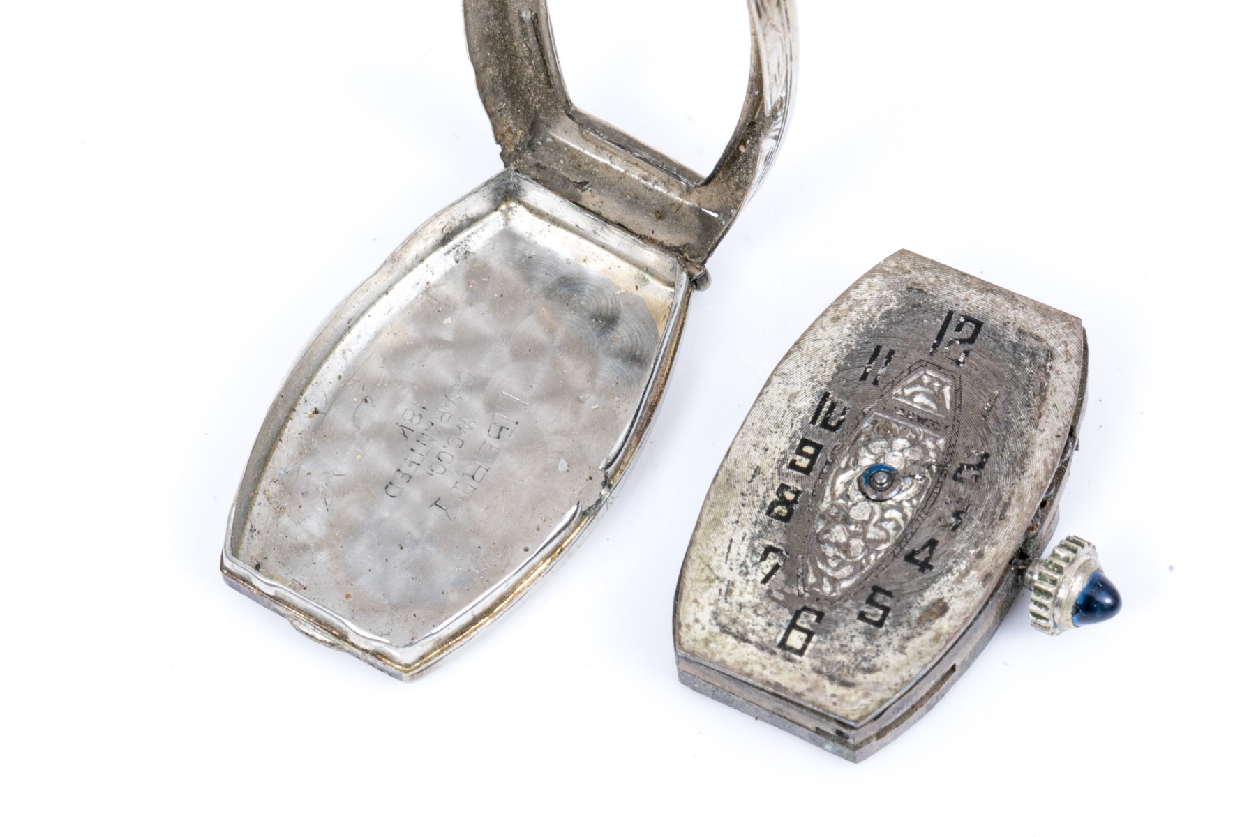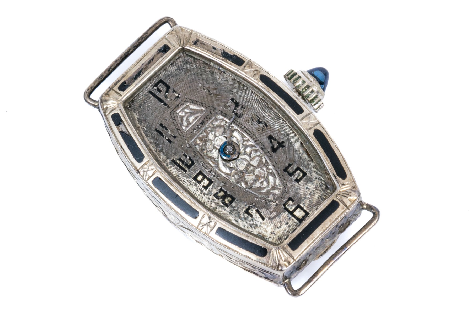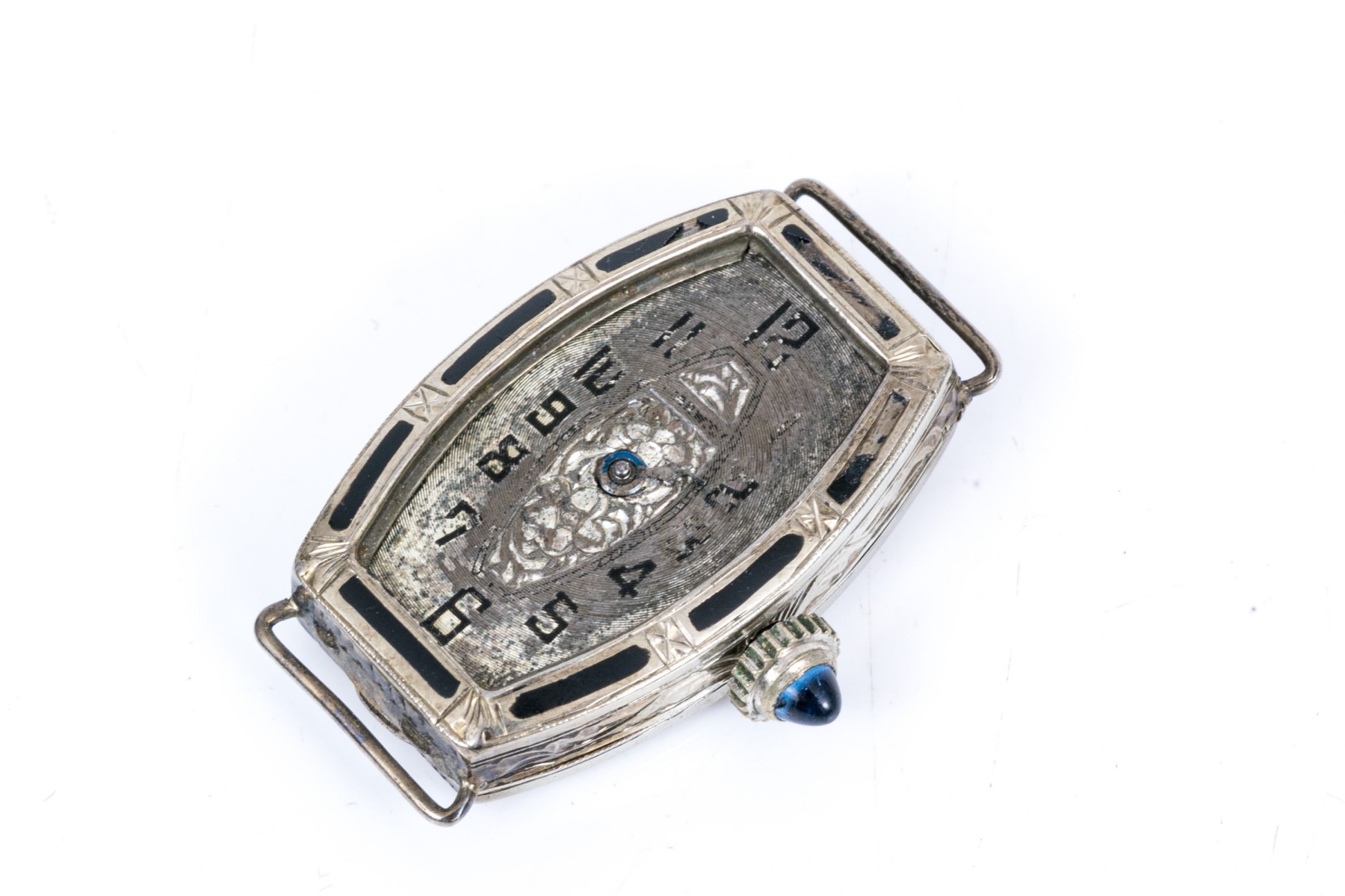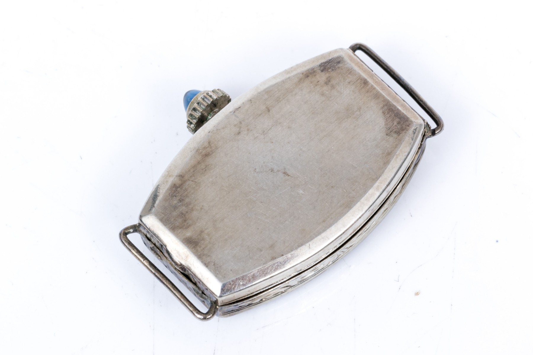18k white gold antique tonneau shaped watch case, as is condition