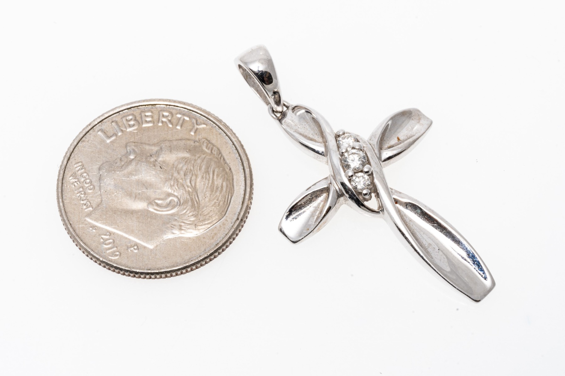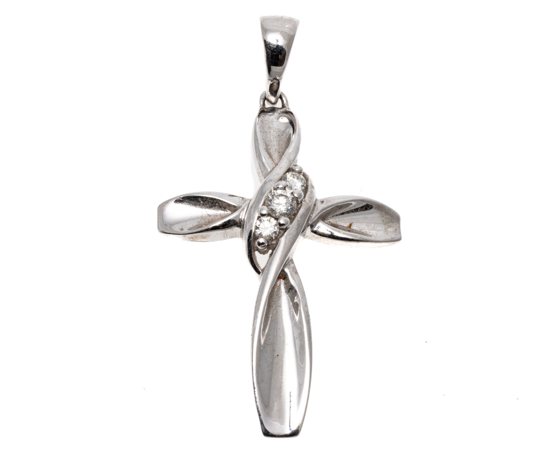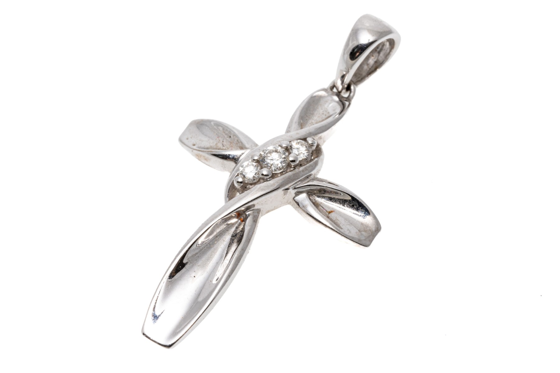 18k white gold contemporary diamond set cross, app. 0.07 TCW, prong set, finished with a solid bale