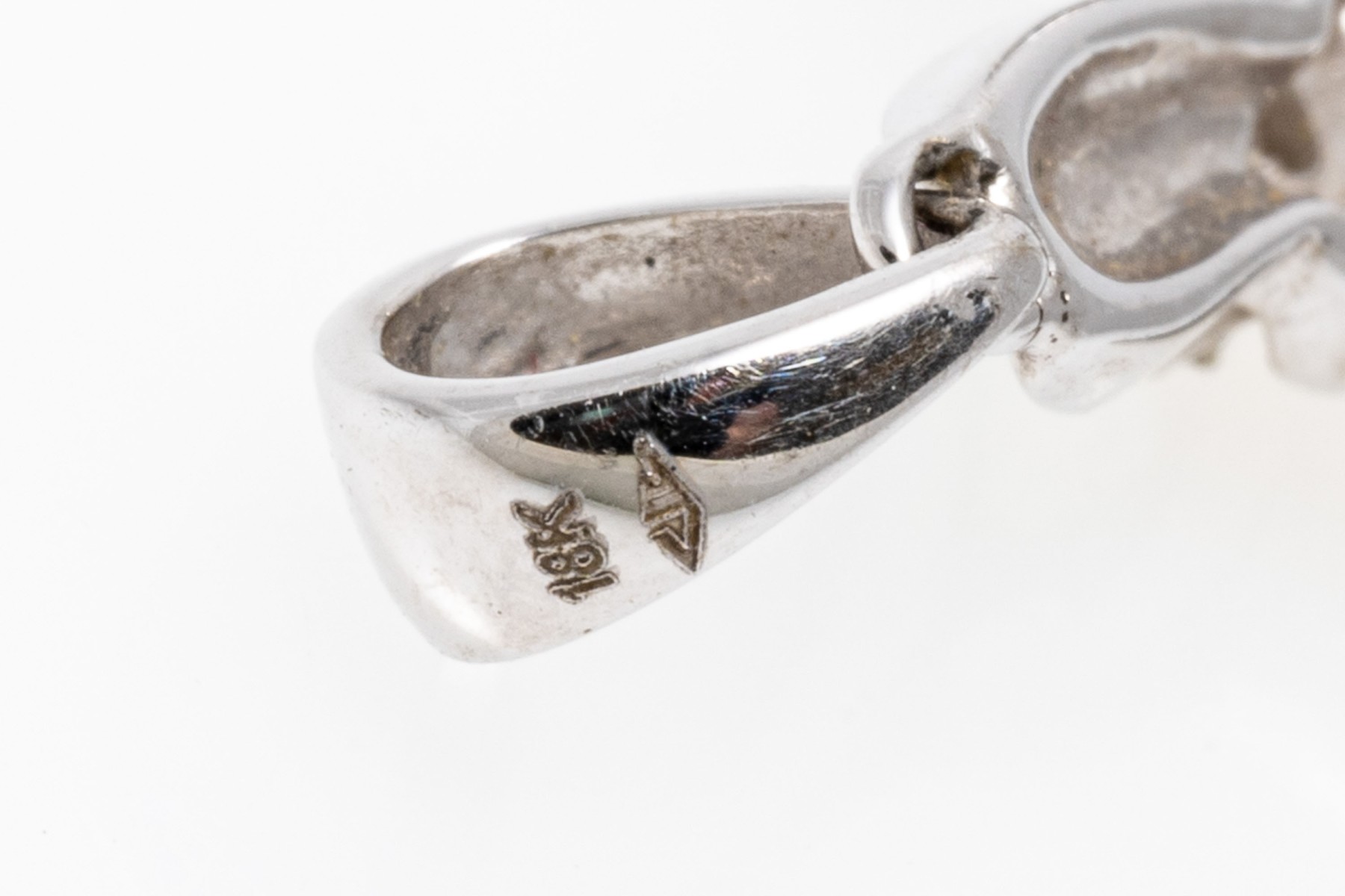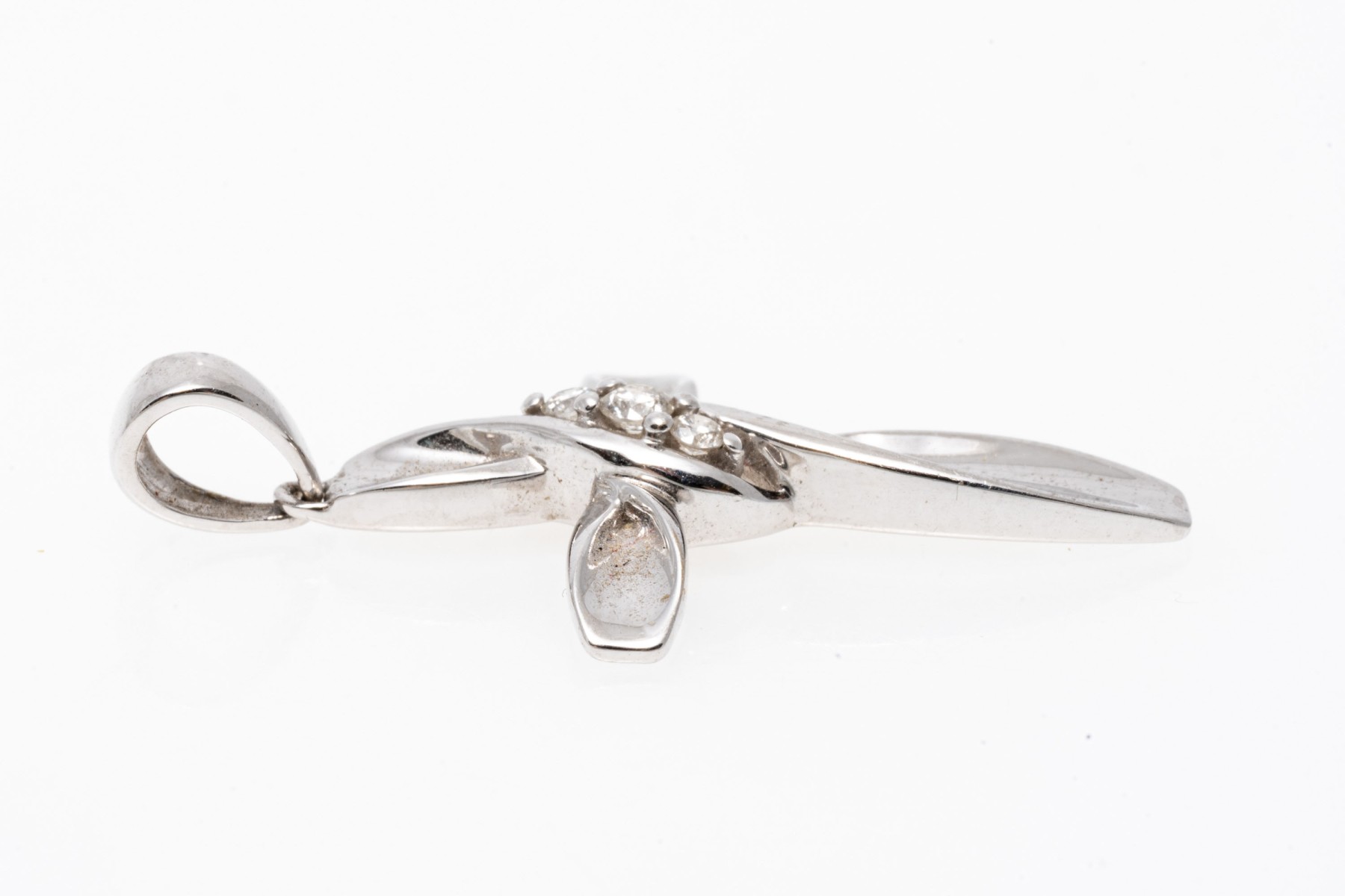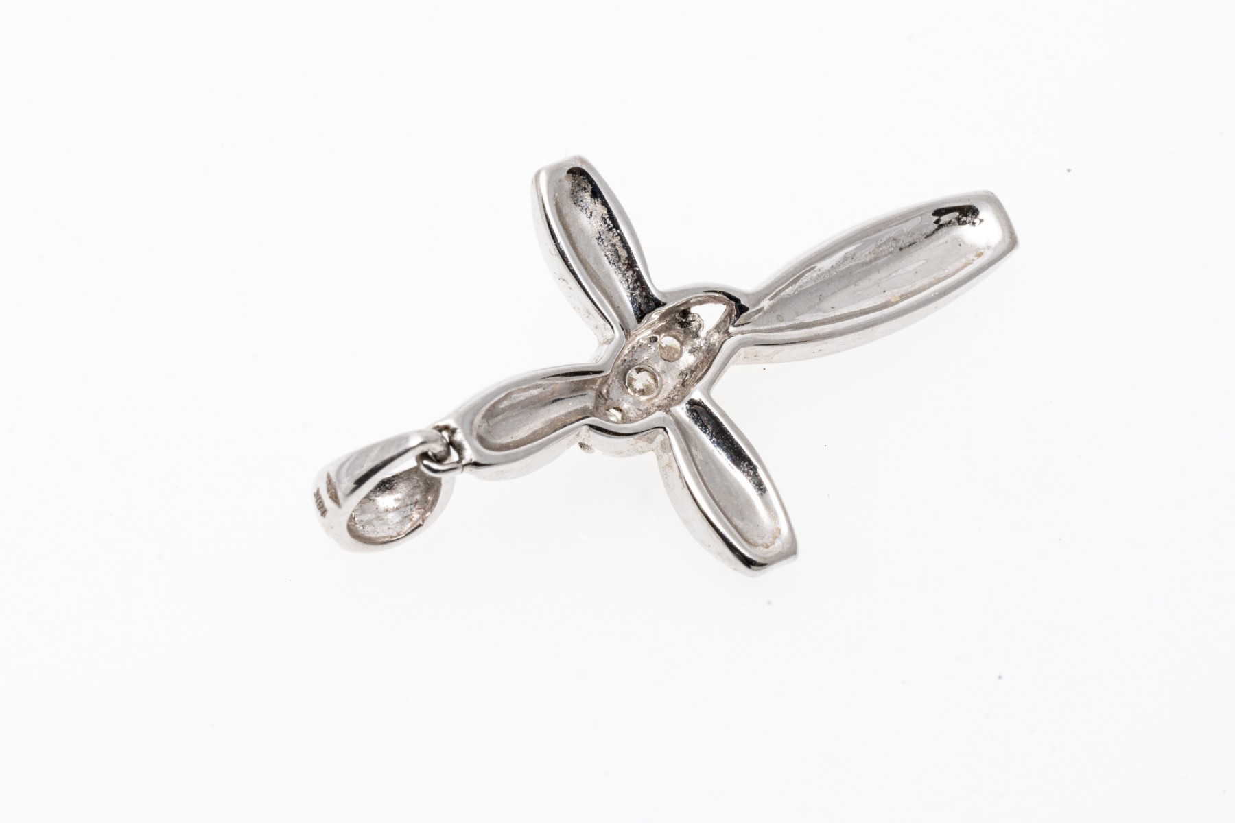 18k white gold contemporary diamond set cross, app. 0.07 TCW, prong set, finished with a solid bale