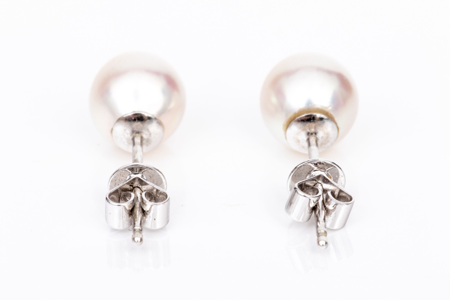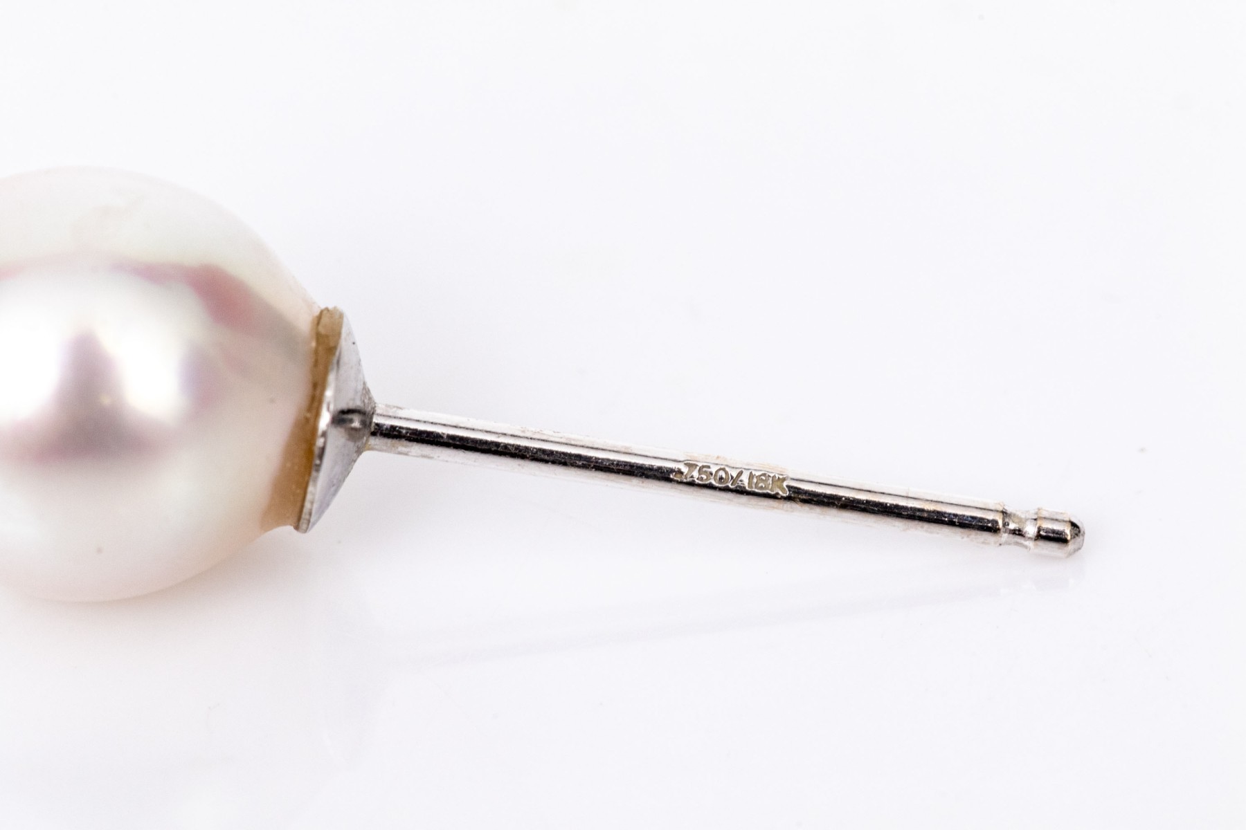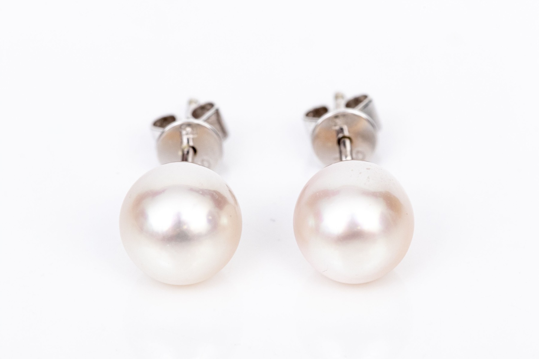 18k white gold lovely 7.5 mm cultured pearl earrings. These simple stud earrings have a nice lustre, and are finished with posts and clutch style backs