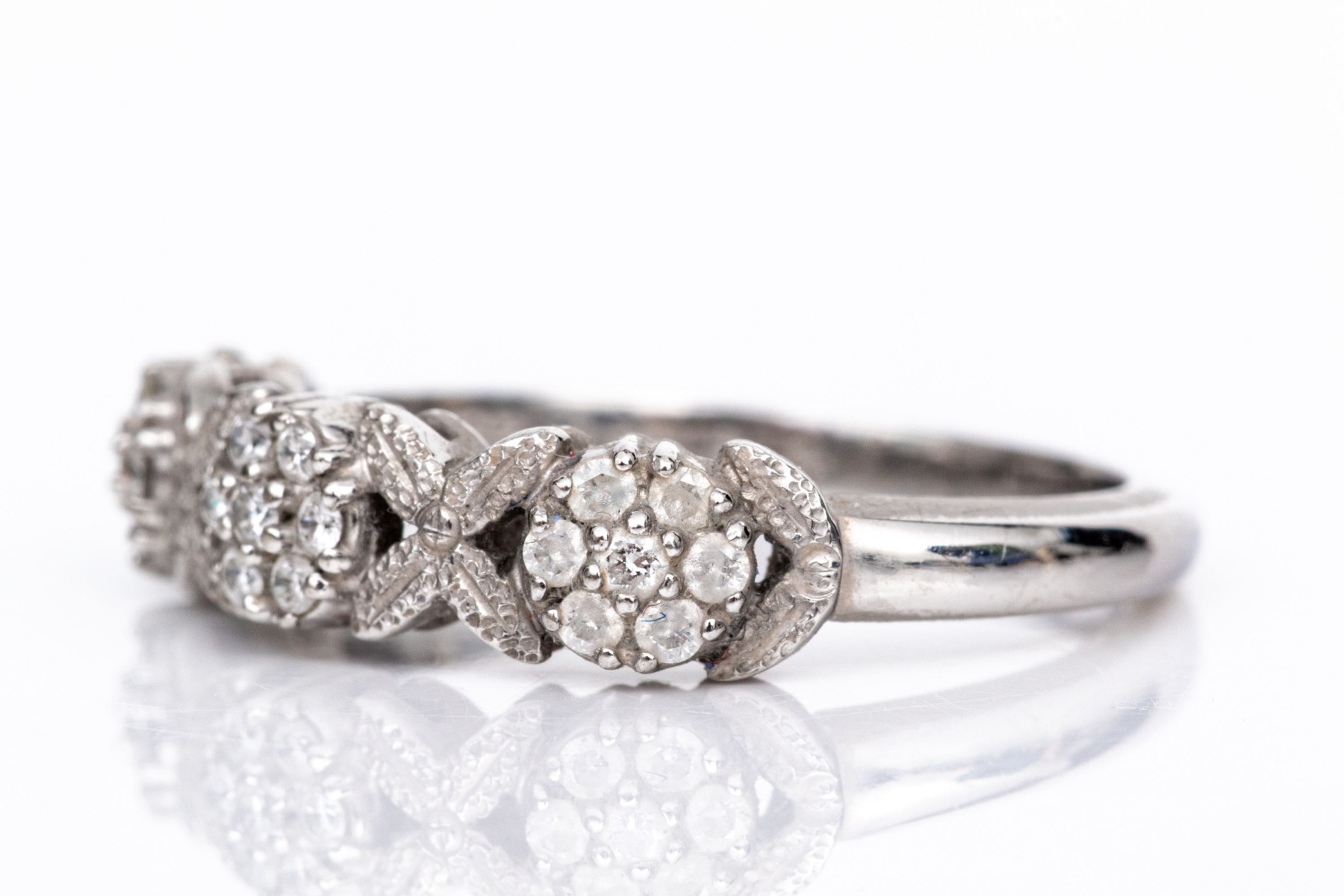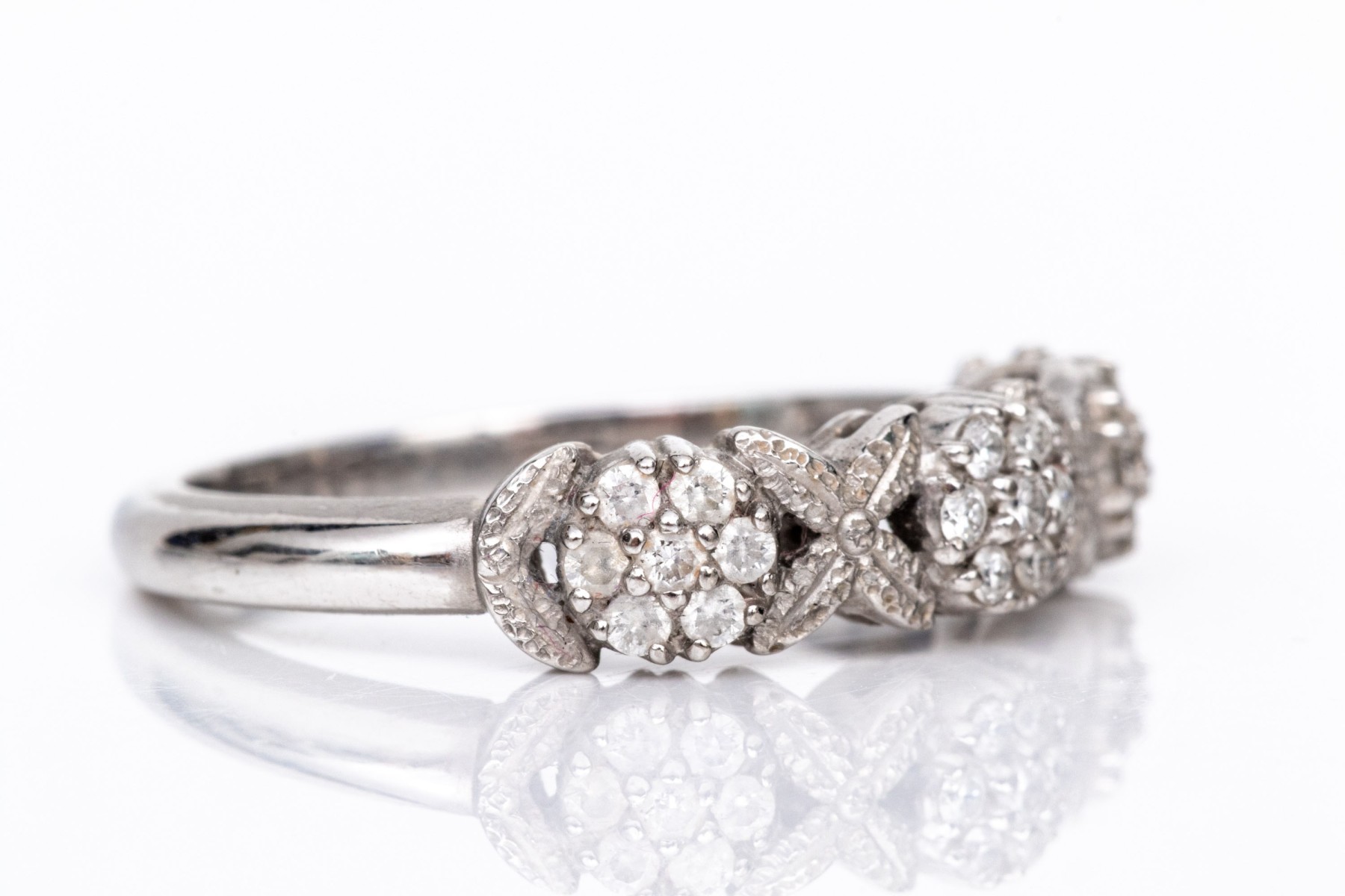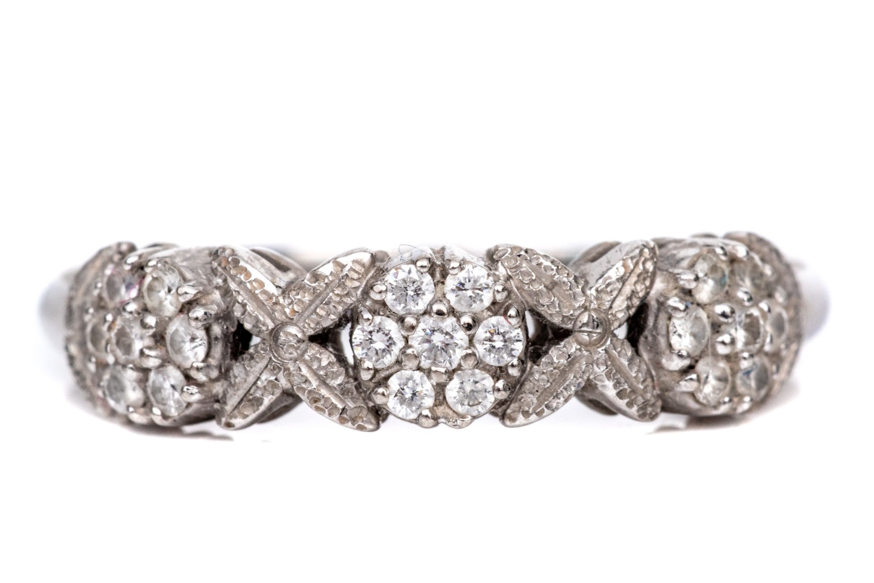 18k white gold pave diamond set "xo" patterned band ring, app. 0.21 TCW, size 6.75