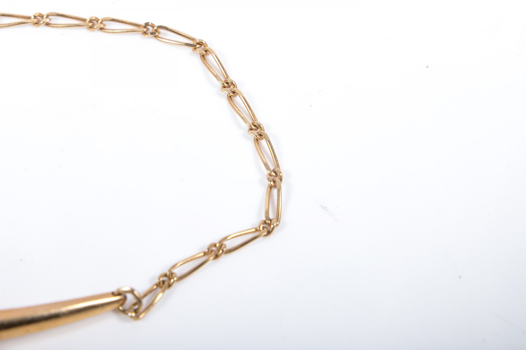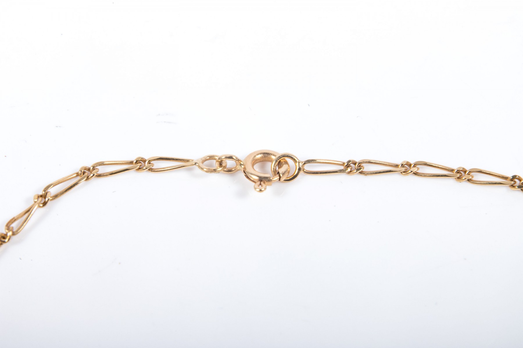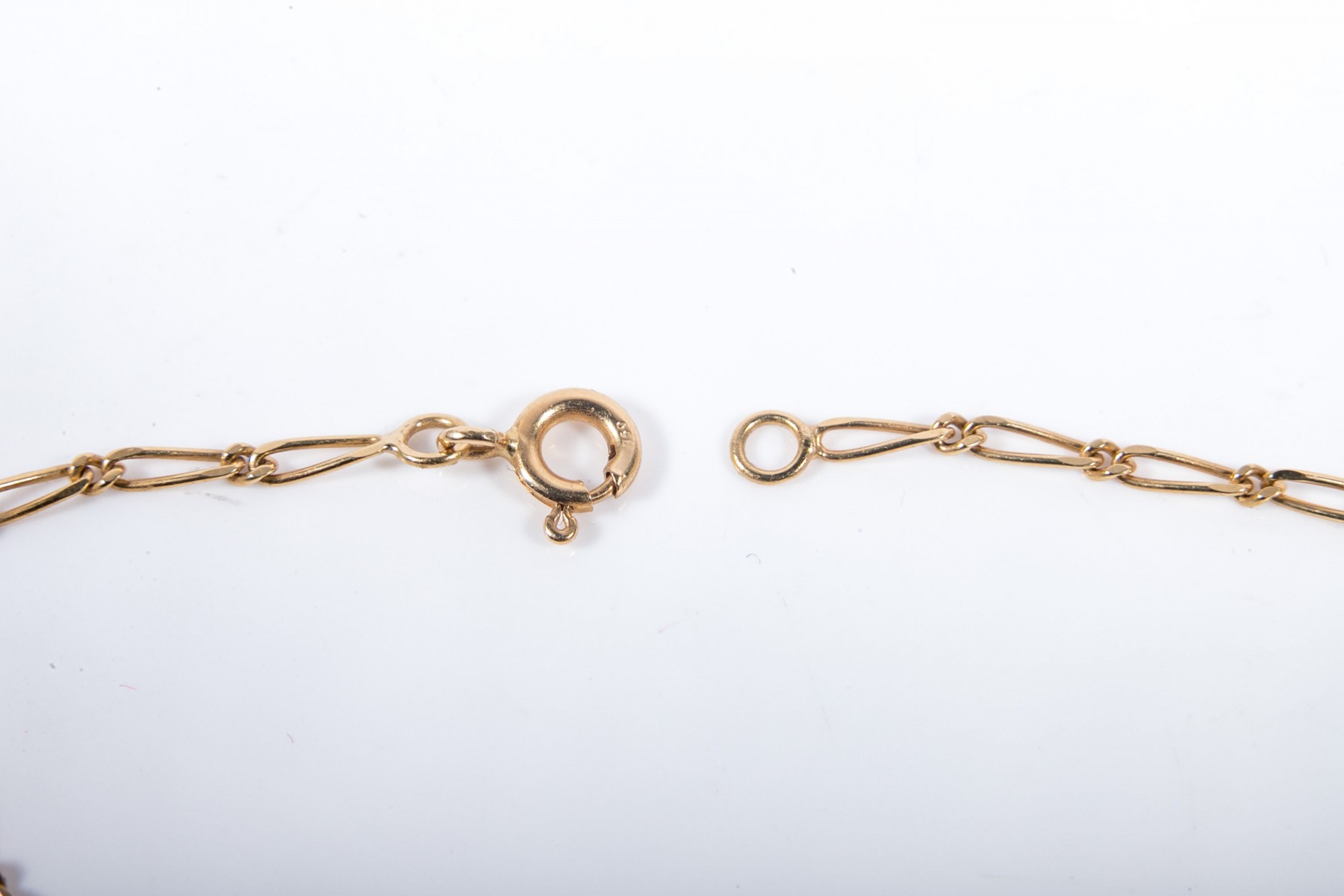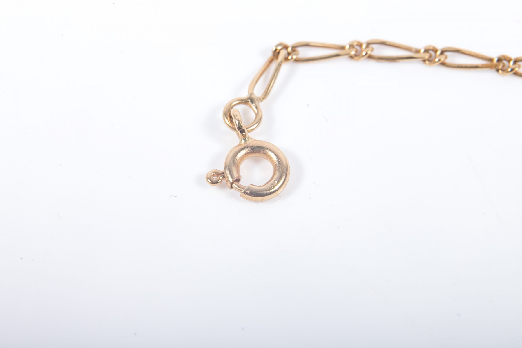 A beautiful yellow gold bracelet displaying a vibrant green emerald on a crescent focal piece, flanked by a curb chain alternating with elongated links for an elegant and visually striking appearance.