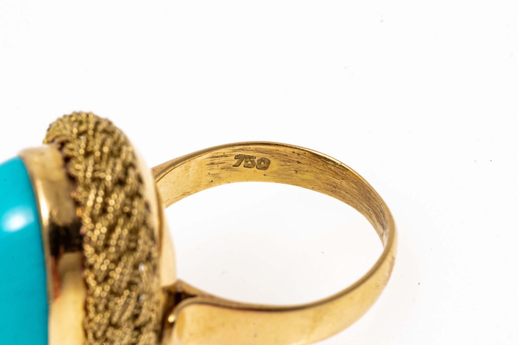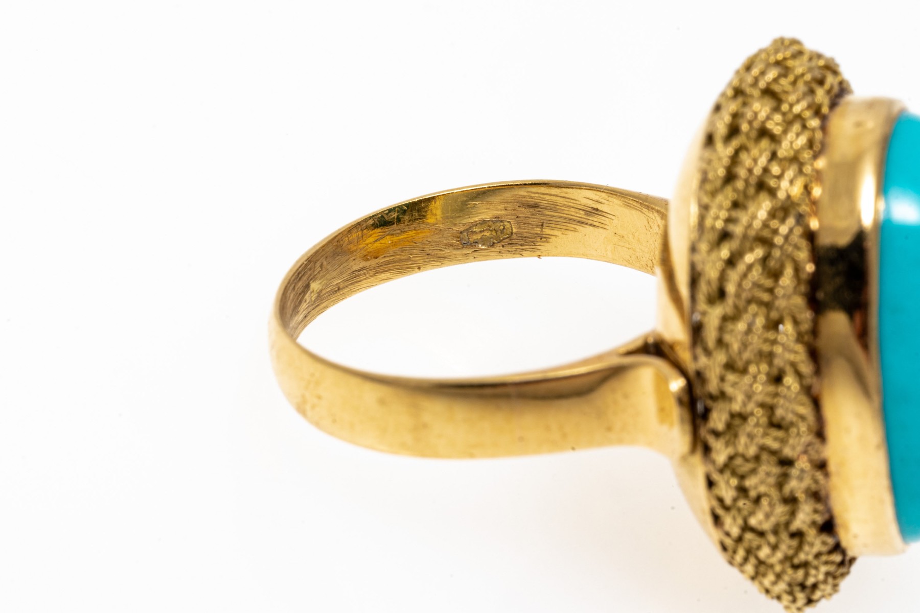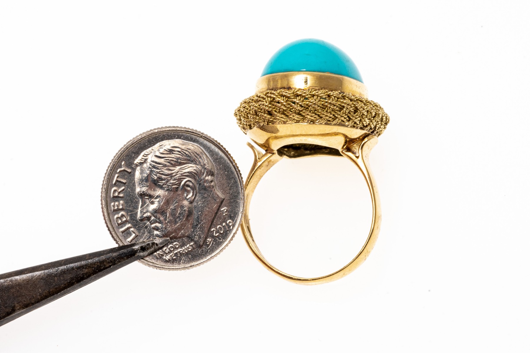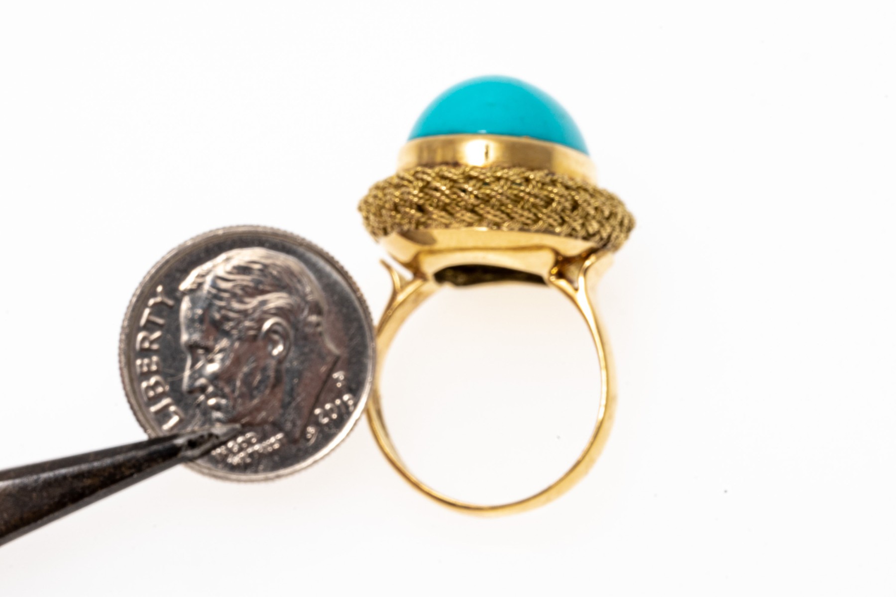 18k yellow gold beautiful vintage oval cabachon turquoise ring, braided edge, size 6