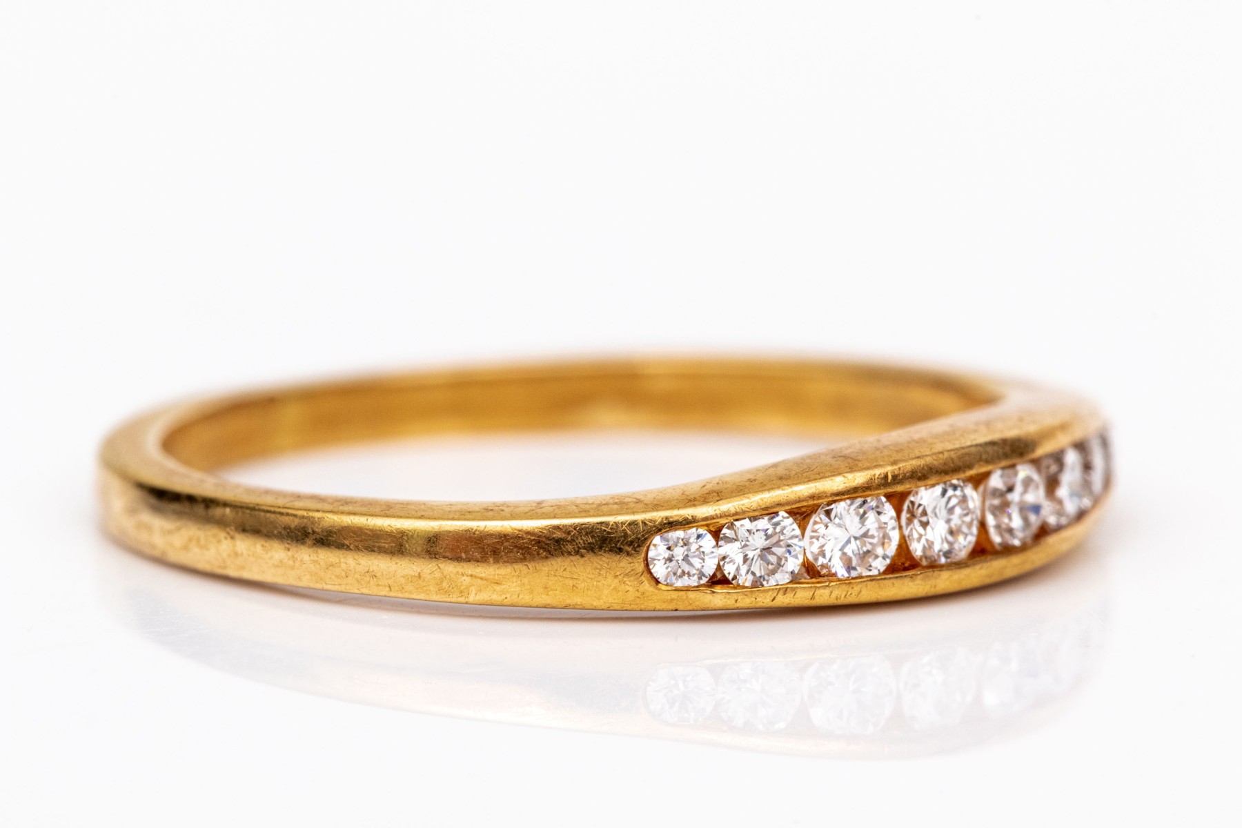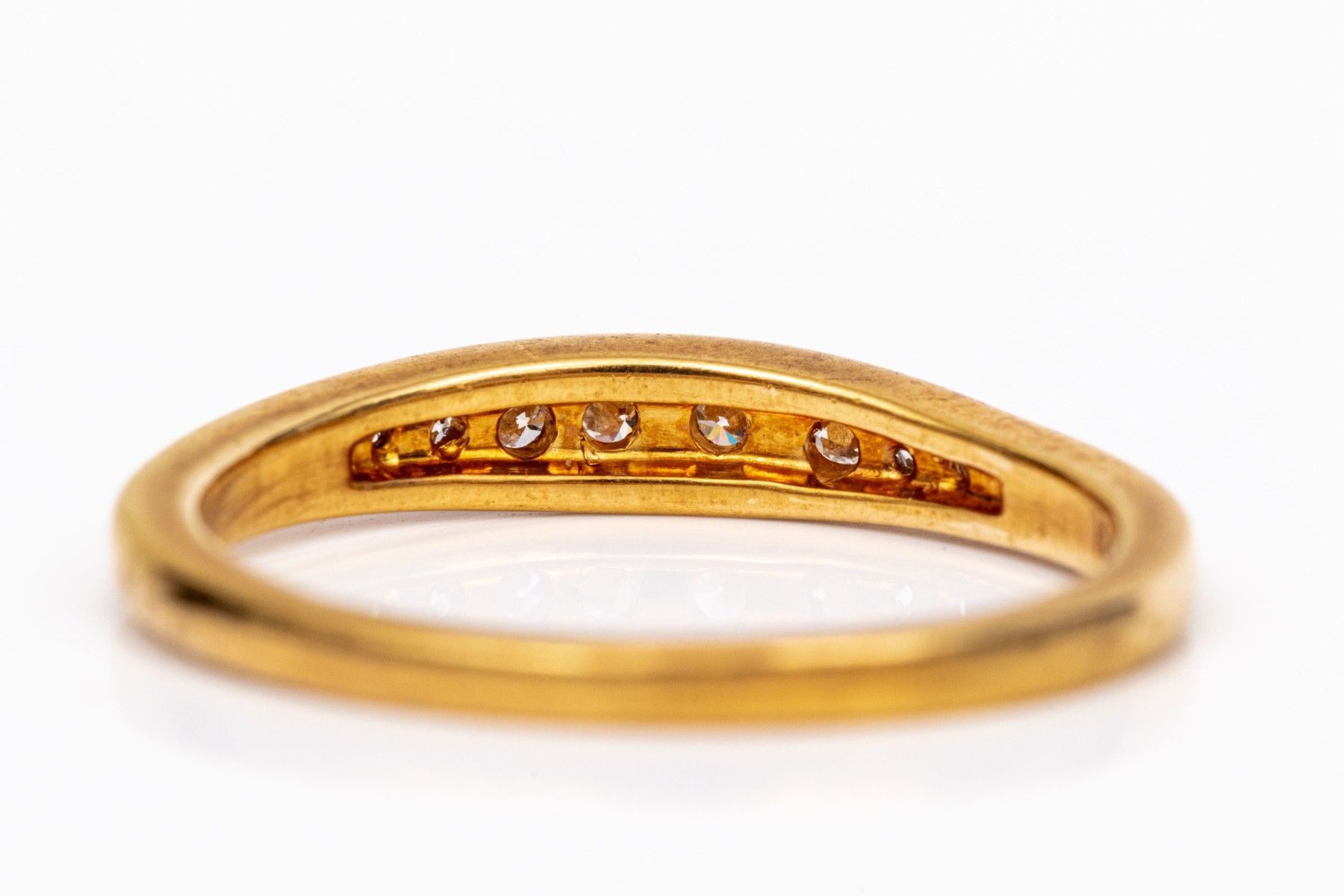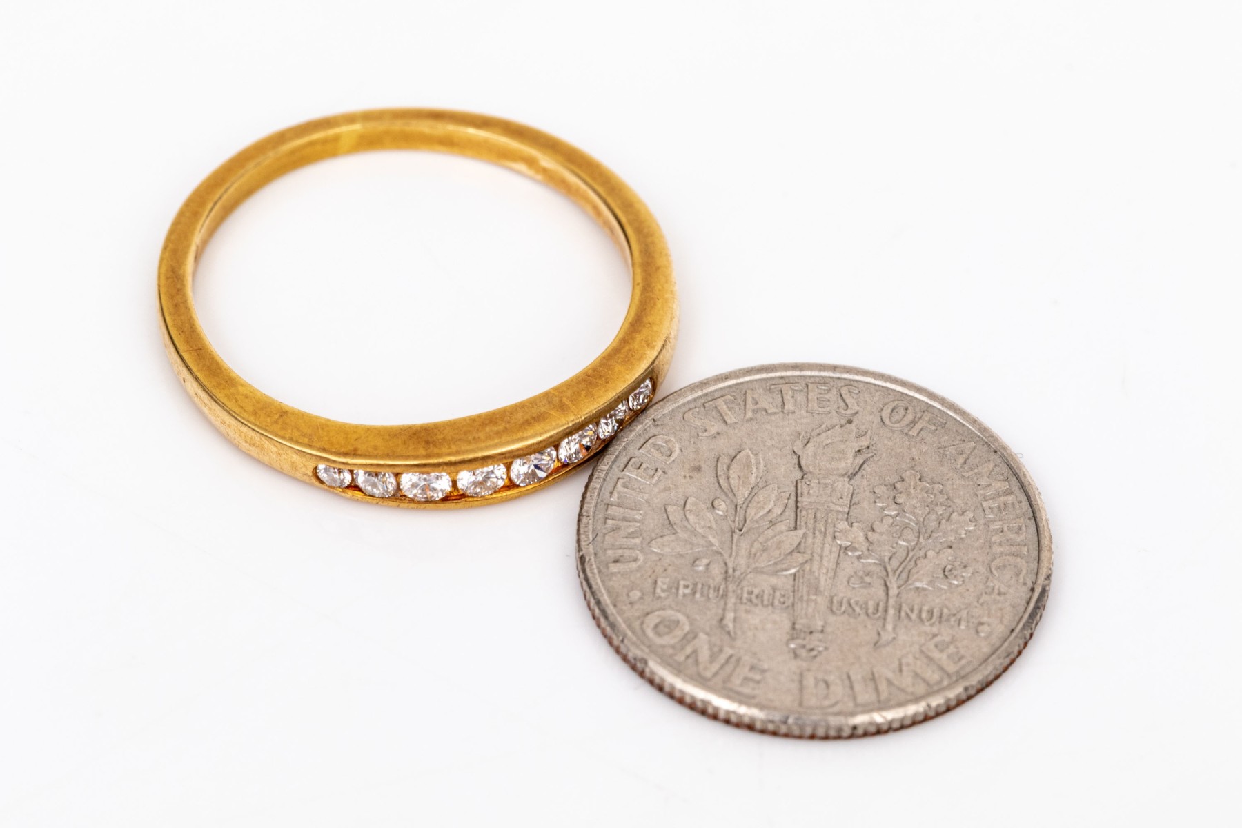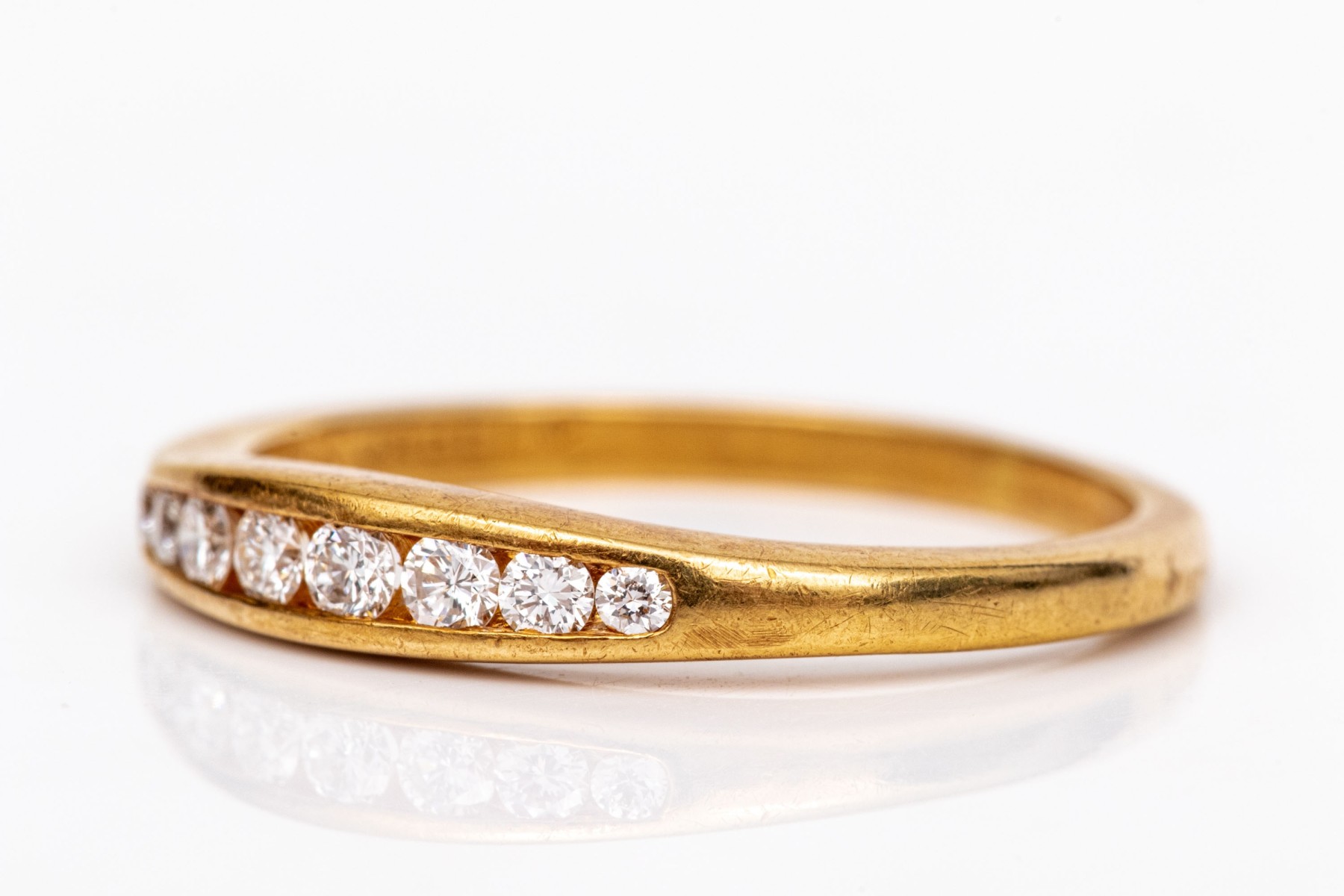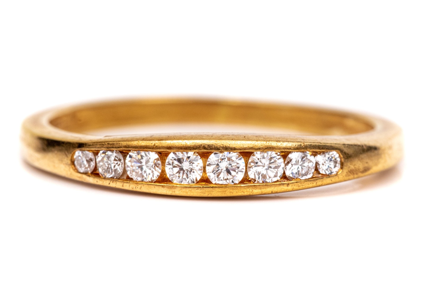 18k yellow gold classic channel set diamond band ring, app. 0.10 TCW, size 6