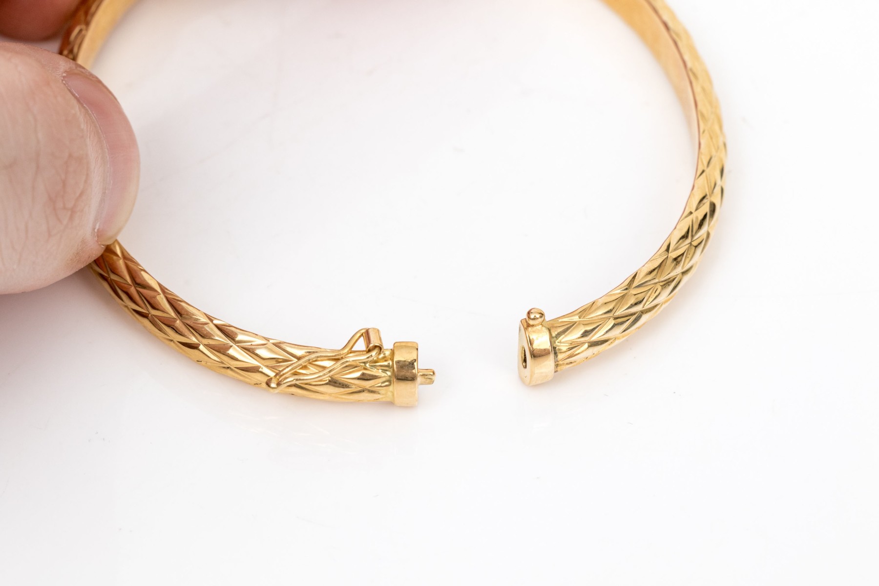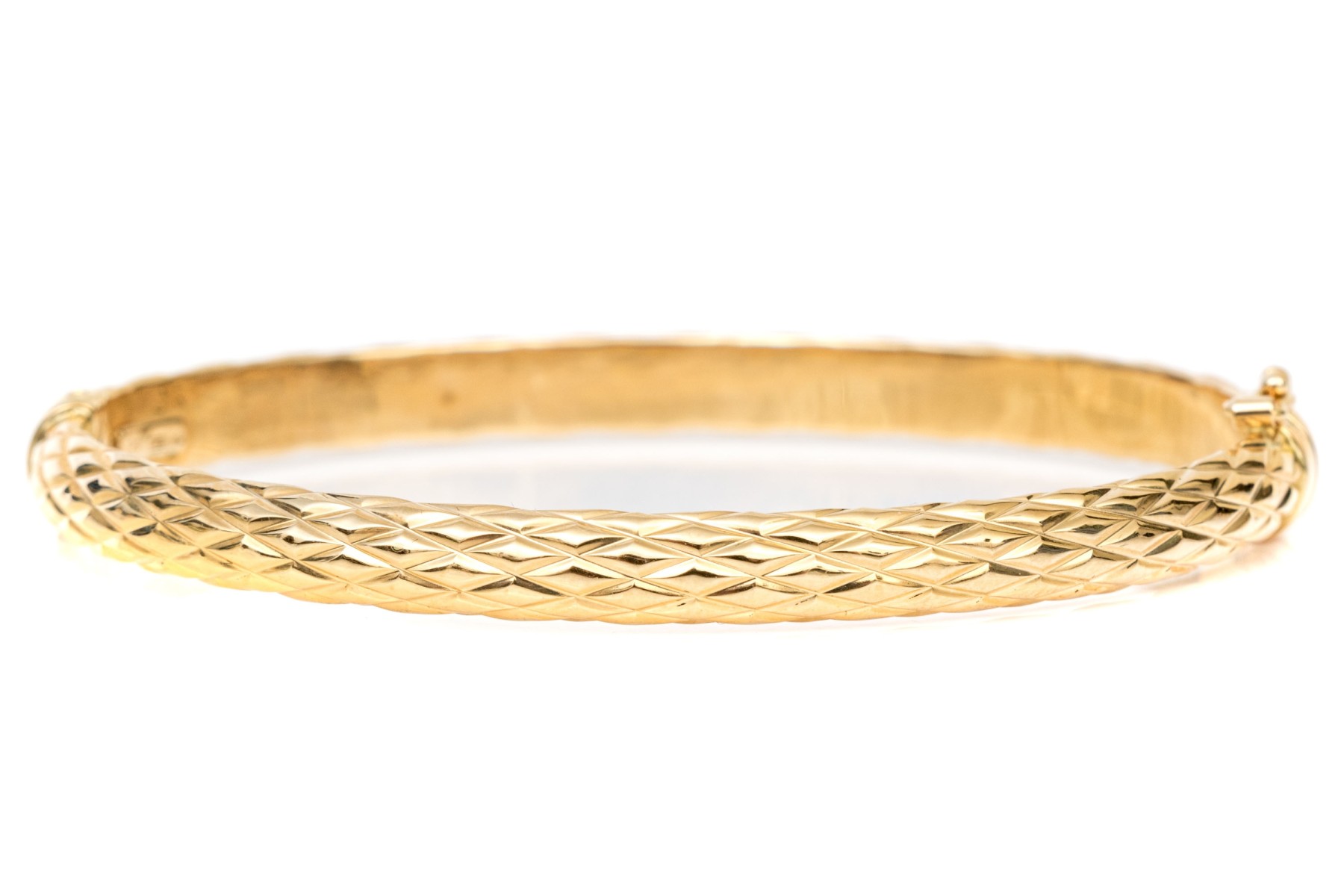 18k Yellow Gold Classic Quilted Hinged Bangle Bracelet, With Figured Eight Clasp #451787. Black Rock Galleries provides high end estate liquidation services through online estate auctions and a 50,000 sq ft designer showroom. estate liquidator, estate sale, online auction, antiques, fine art, liquidation, clean outs, auction, consignment, interior design, fine jewelry, collectibles, appraisals, estate appraisals, estate services, decor, furniture, furniture consignment, antique center, consignment shop. We offer appraisal services and specialize in fine art, jewelry, antiques and decorative arts. Sell with us. Black Rock Galleries is the tri-state's largest estate liquidator serving New England and the greater New York City area. We are the trusted source for expert appraisals, auction services, estate sales, and consignments. Black Rock Galleries is the east coast's largest and most trusted estate liquidator, with locations in Connecticut, greater Boston, MA and Raleigh, NC, Fairfield, Southport, Apex, TX. We are the best source for expert appraisals, auction services, estate sales and consignments. We have served thousands of families and estates with compassion, professionalism and expertise. BRG works with attorneys, executors, realtors and families to bring the greatest return on personal and estate property in the current market. Our unique combination of services make us the easy choice to get the job done in a timely and stress-free manner. We are with you from the initial consultation to the final clean out. Our house-built online auction software platform offers clients a dynamic approach to liquidating their personal property. This venue is most successful in bringing the best return with the least amount of disruption for our clients. See our services page for a complete description of this offering. 18k Yellow Gold Classic Quilted Hinged Bangle Bracelet, With Figured Eight Clasp #451787