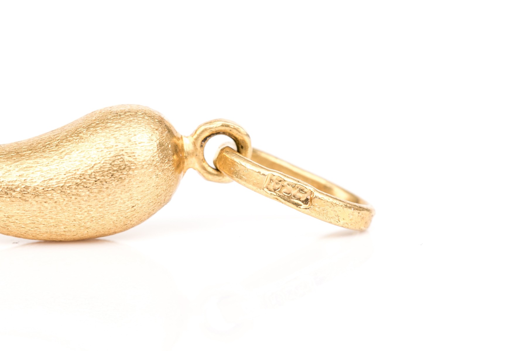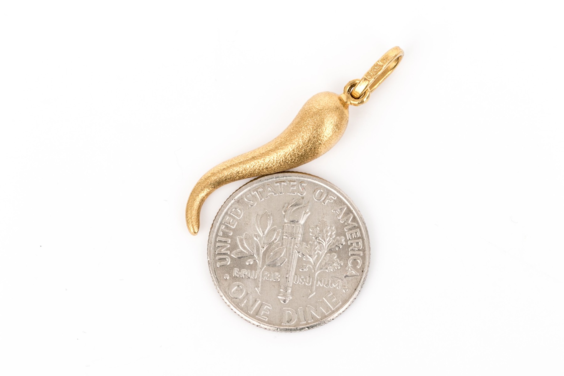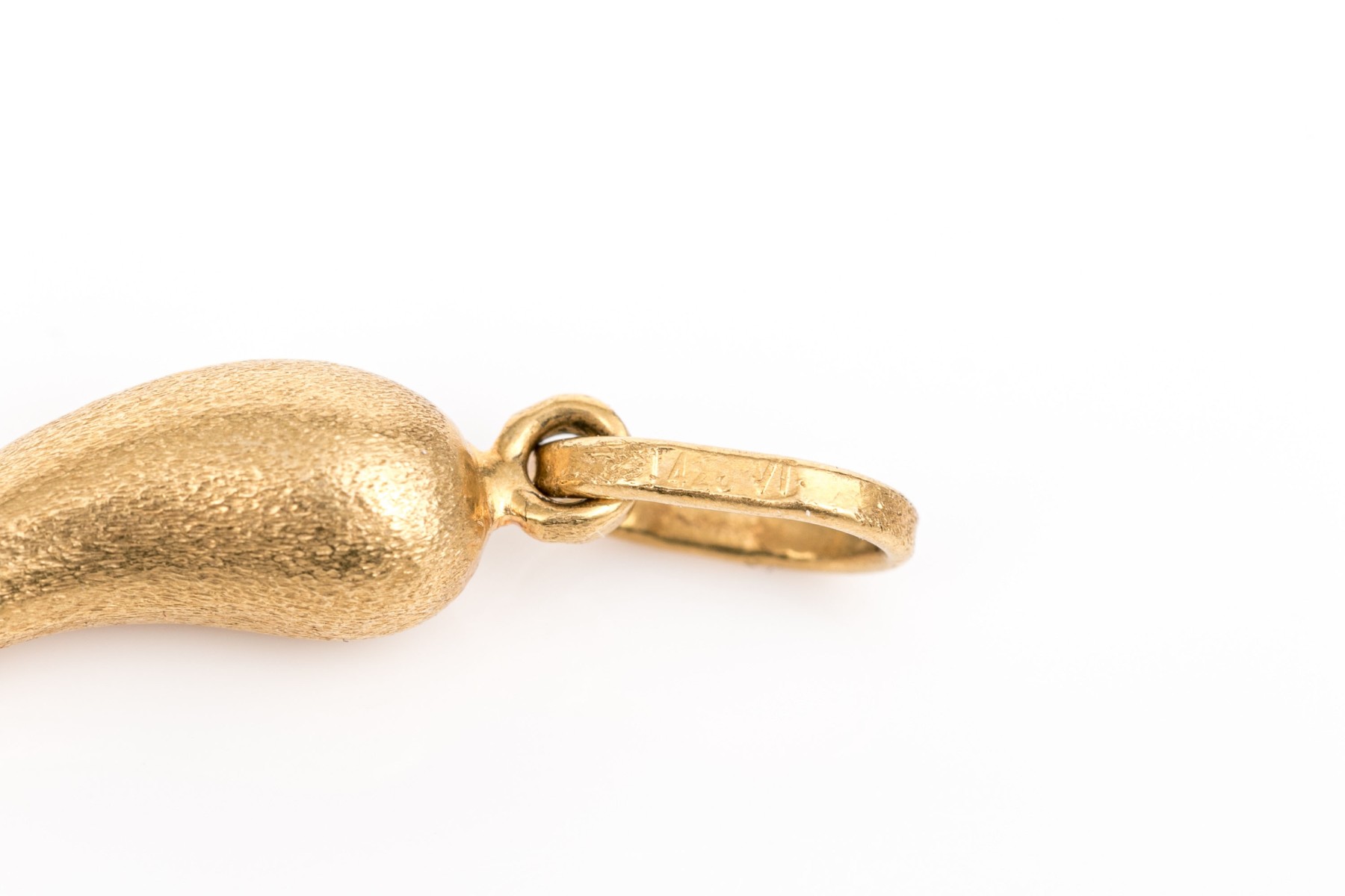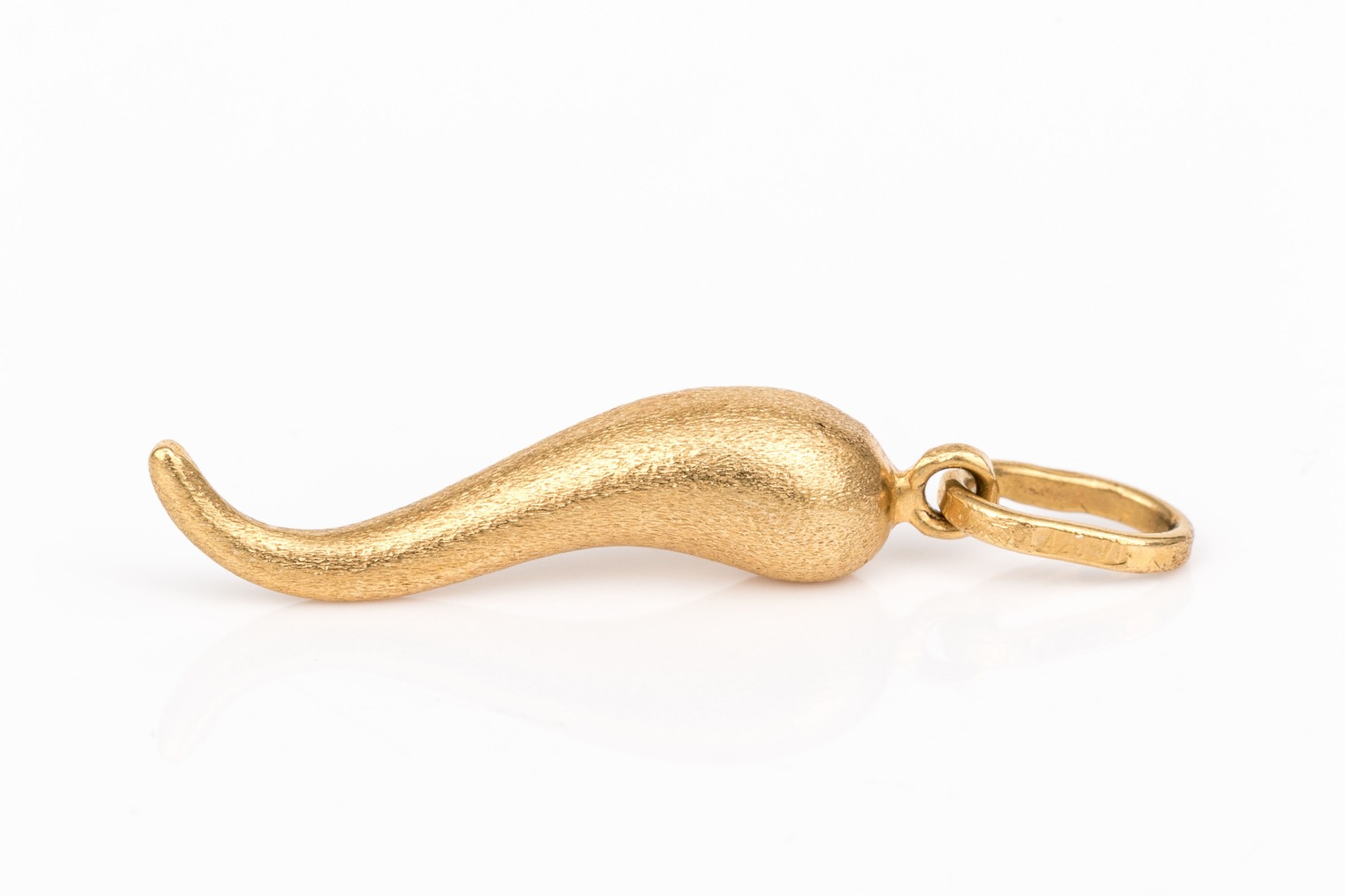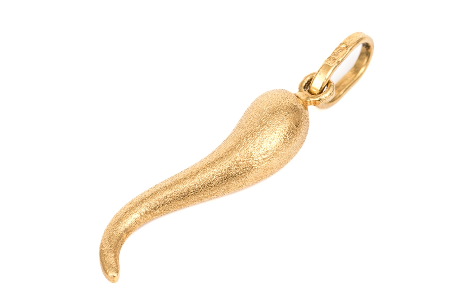 18k yellow gold cornicello pendant, brushed finish, decorated with a solid bale