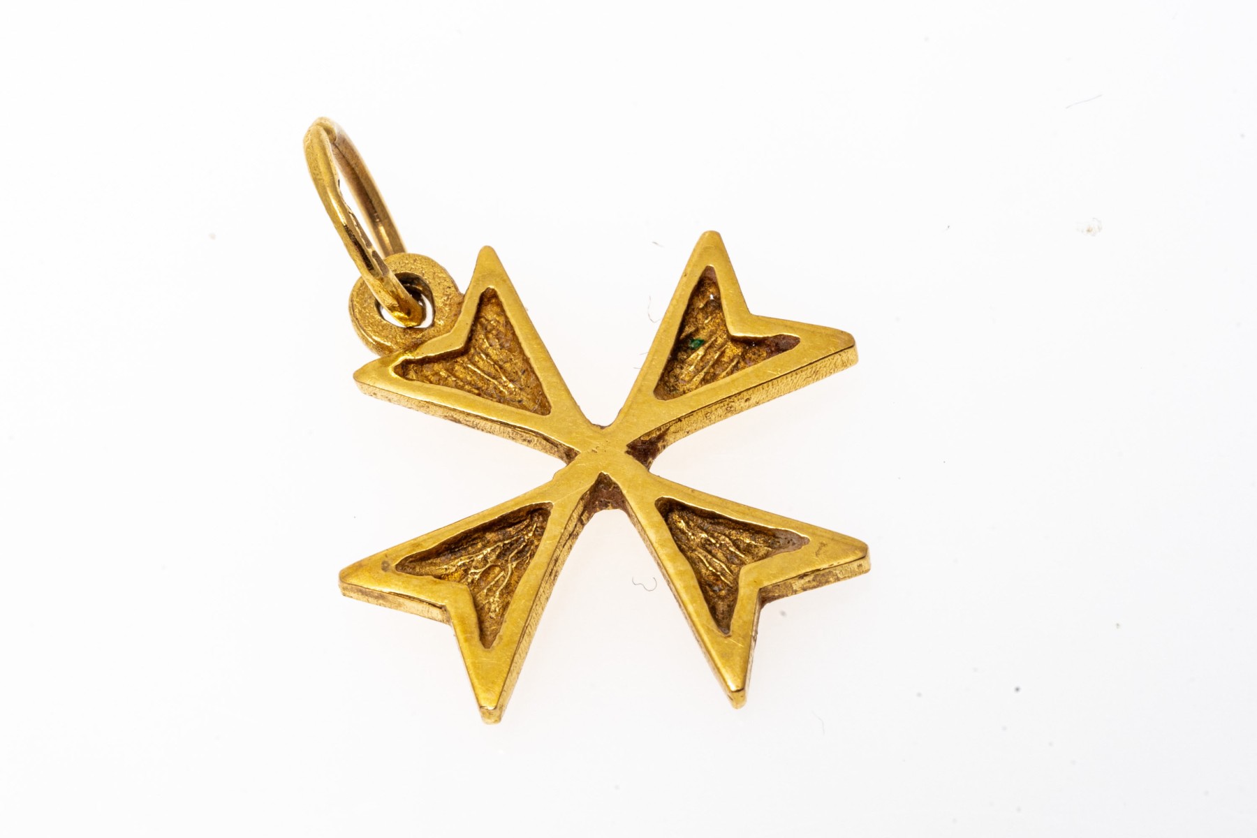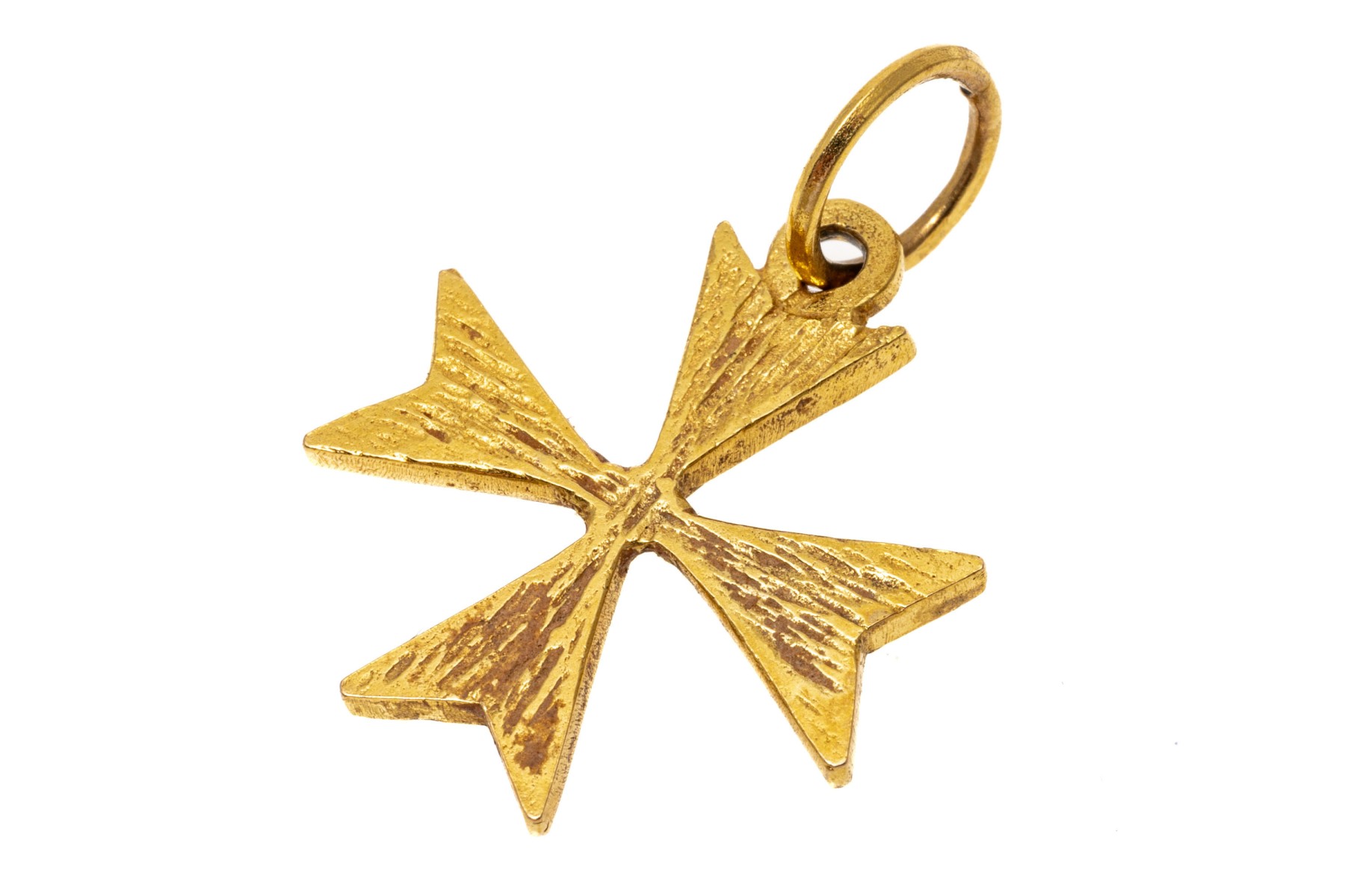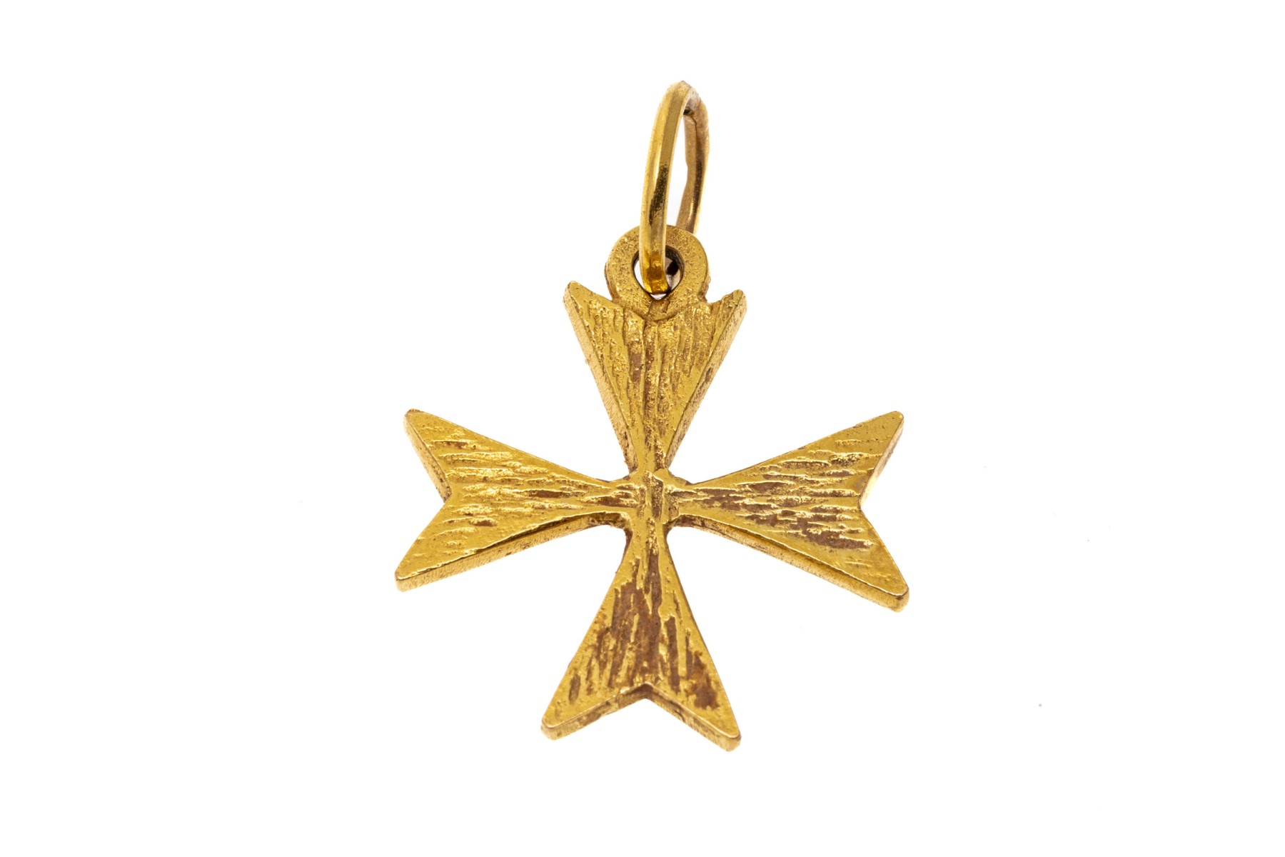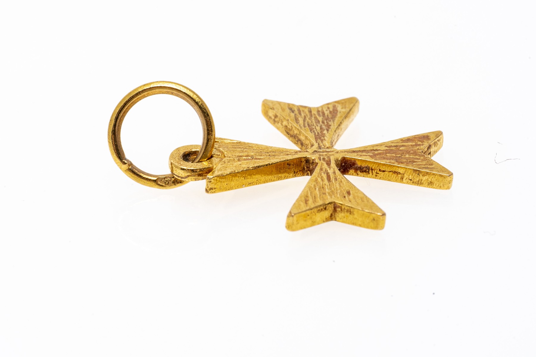 18k yellow gold handsome Maltese cross, finished with a jump ring style bale
