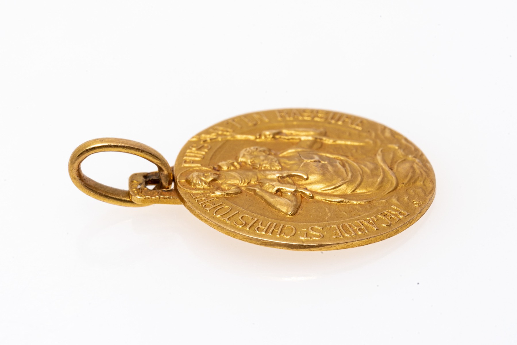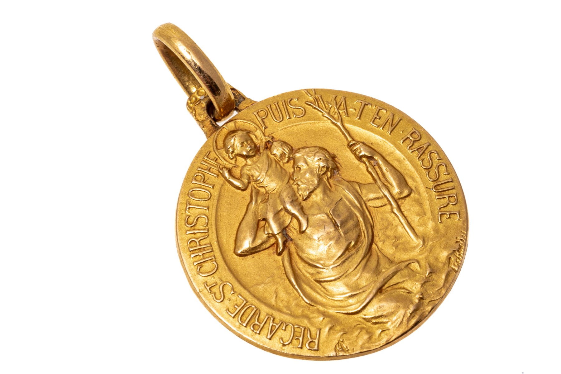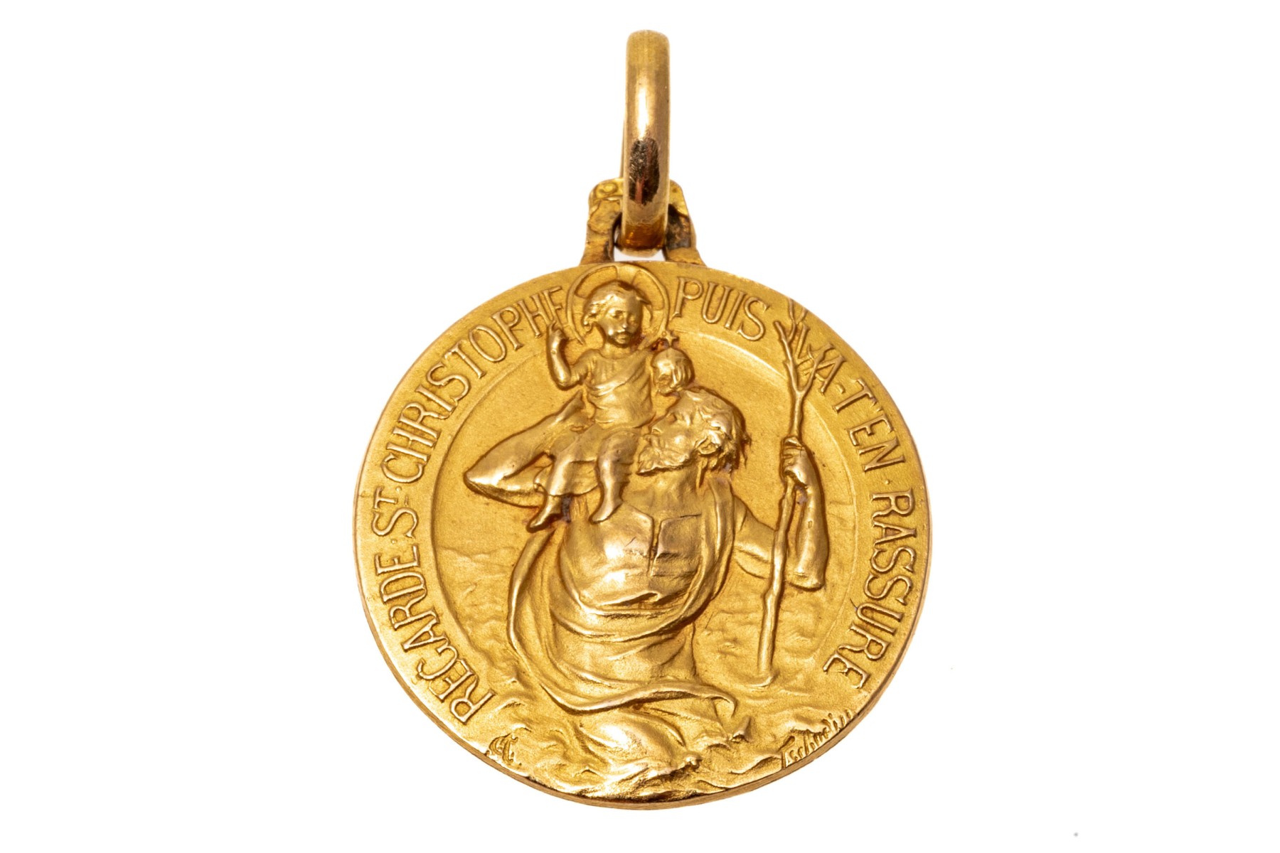 18k yellow gold handsome St. Christopher medal, finished with a jump ring style bale