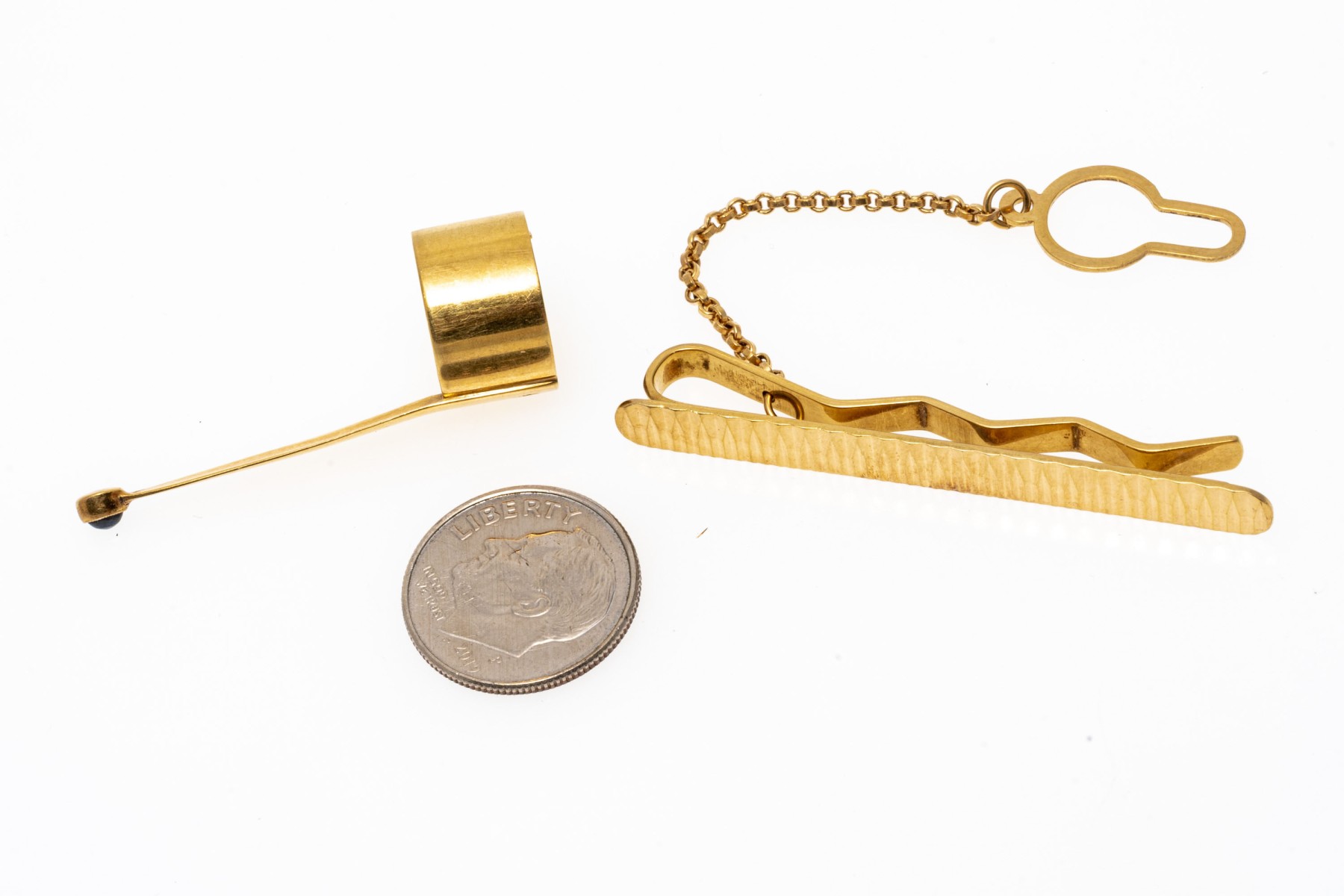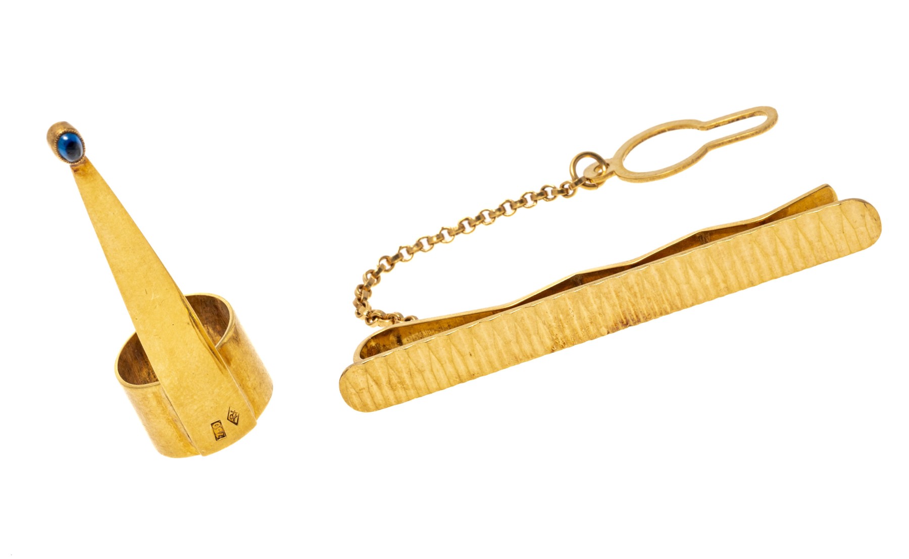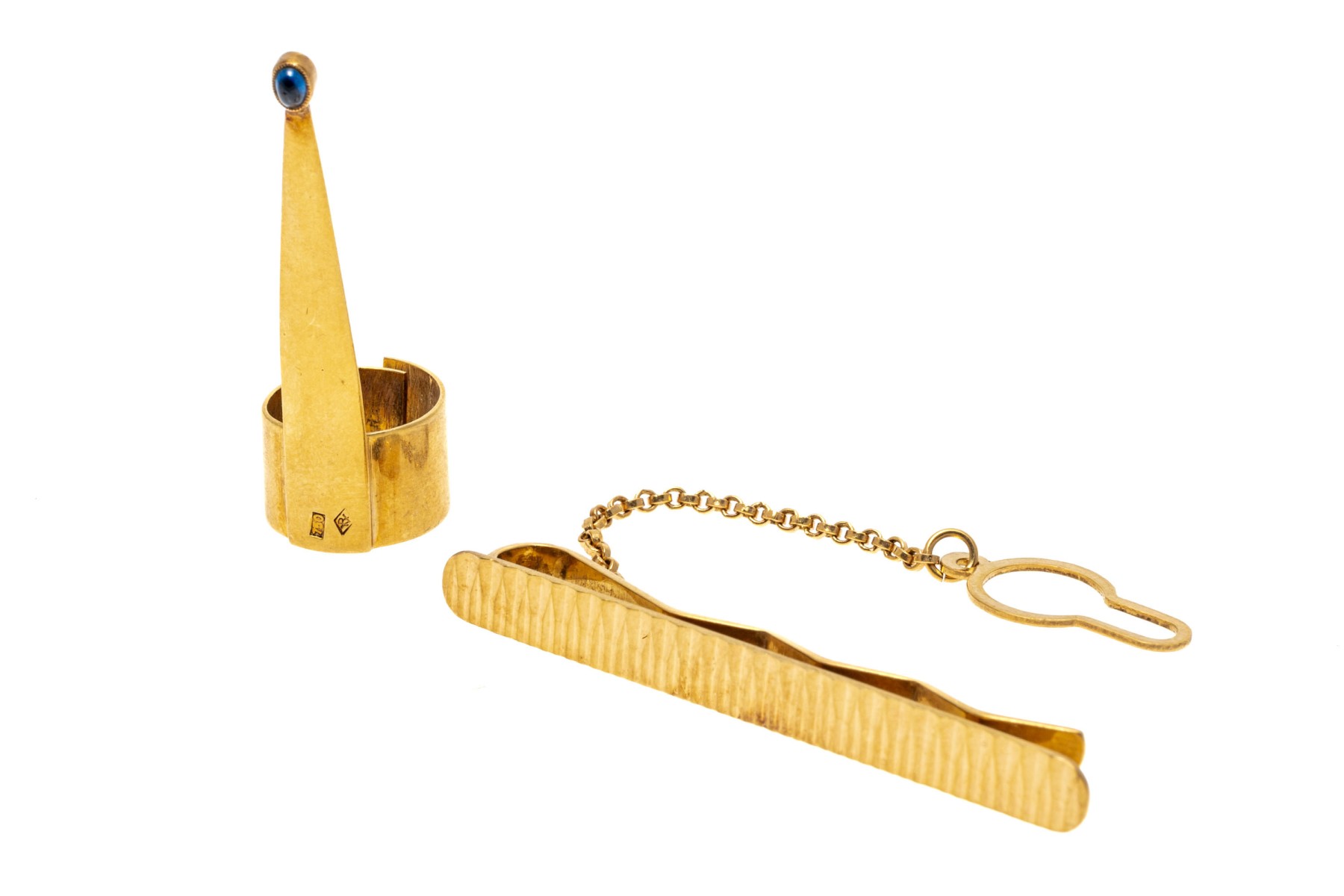 Lot of 18K yellow gold. Pen clip and tie clip.