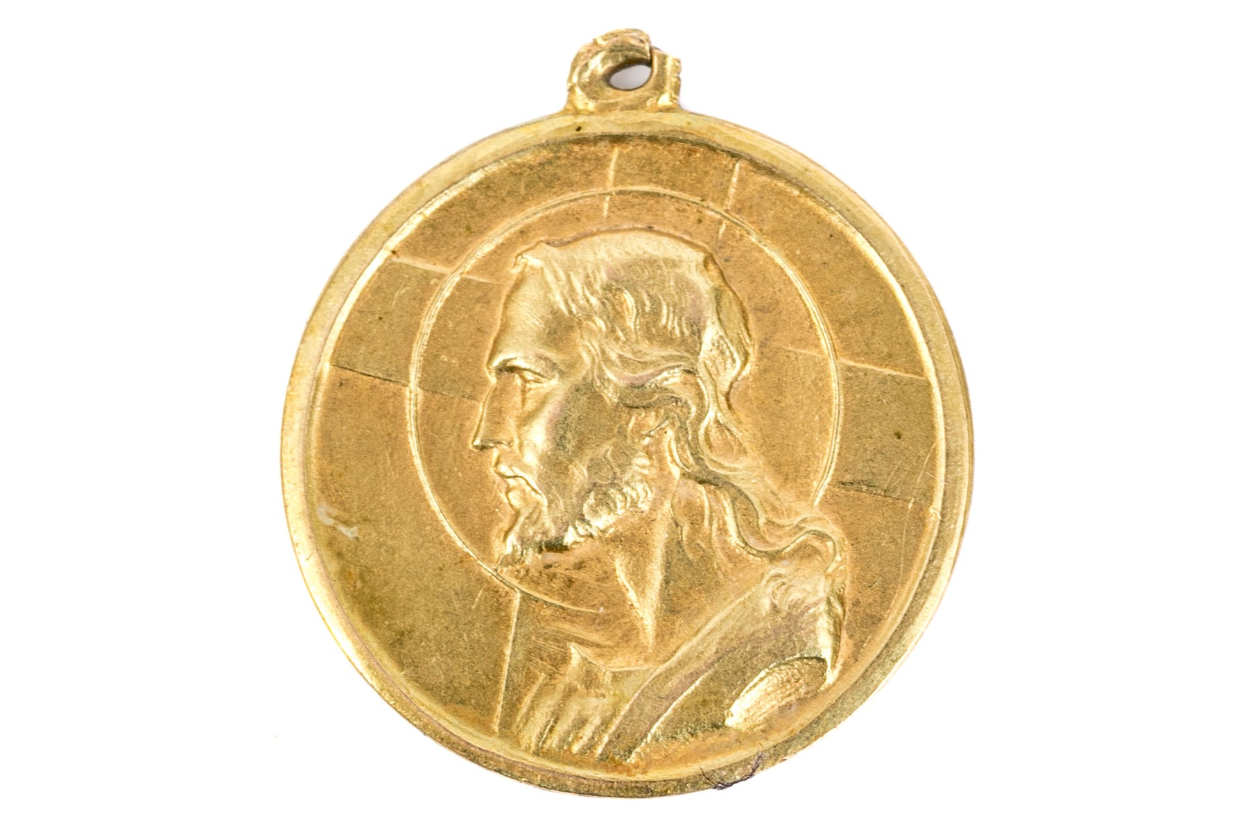 18k yellow gold striking Christ's head God protects faith and hope medal