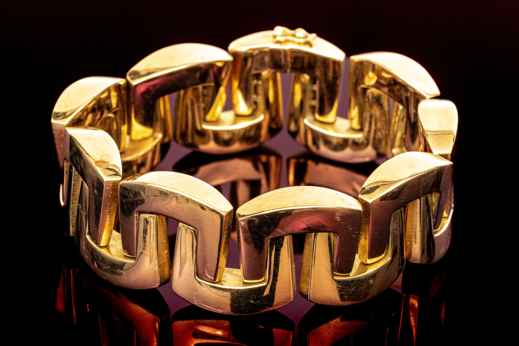 18k Yellow Gold Striking Chunky Opposing "C" Patterned Link Bracelet #448894. Black Rock Galleries provides high end estate liquidation services through online estate auctions and a 50,000 sq ft designer showroom. estate liquidator, estate sale, online auction, antiques, fine art, liquidation, clean outs, auction, consignment, interior design, fine jewelry, collectibles, appraisals, estate appraisals, estate services, decor, furniture, furniture consignment, antique center, consignment shop. We offer appraisal services and specialize in fine art, jewelry, antiques and decorative arts. Sell with us. Black Rock Galleries is the tri-state's largest estate liquidator serving New England and the greater New York City area. We are the trusted source for expert appraisals, auction services, estate sales, and consignments. Black Rock Galleries is the east coast's largest and most trusted estate liquidator, with locations in Connecticut, greater Boston, MA and Raleigh, NC, Fairfield, Southport, Apex, TX. We are the best source for expert appraisals, auction services, estate sales and consignments. We have served thousands of families and estates with compassion, professionalism and expertise. BRG works with attorneys, executors, realtors and families to bring the greatest return on personal and estate property in the current market. Our unique combination of services make us the easy choice to get the job done in a timely and stress-free manner. We are with you from the initial consultation to the final clean out. Our house-built online auction software platform offers clients a dynamic approach to liquidating their personal property. This venue is most successful in bringing the best return with the least amount of disruption for our clients. See our services page for a complete description of this offering. 18k Yellow Gold Striking Chunky Opposing "C" Patterned Link Bracelet #448894